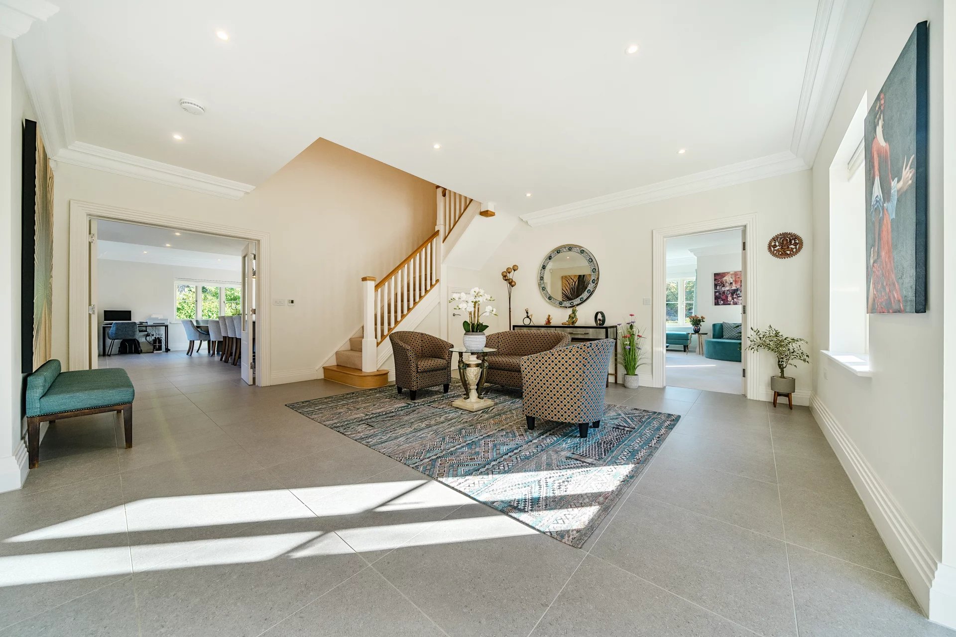Elegant four-bedroom, four-bathroom Berkeley Home in a peaceful Ascot cul-de-sac, offering luxury living and access to private woodland. The ground floor features underfloor heating, a stunning Charles Yorke kitchen with Siemens appliances and island, and bright triple-aspect living and family rooms opening to the landscaped garden. The principal bedroom includes two dressing rooms and a luxurious en suite, with two further en suites plus a family bathroom. Outside are a double garage, large driveway, and south-facing balcony. Located in Brompton Gardens near Swinley Forest and top schools, with Ascot and Martins Heron stations providing links to London Waterloo.