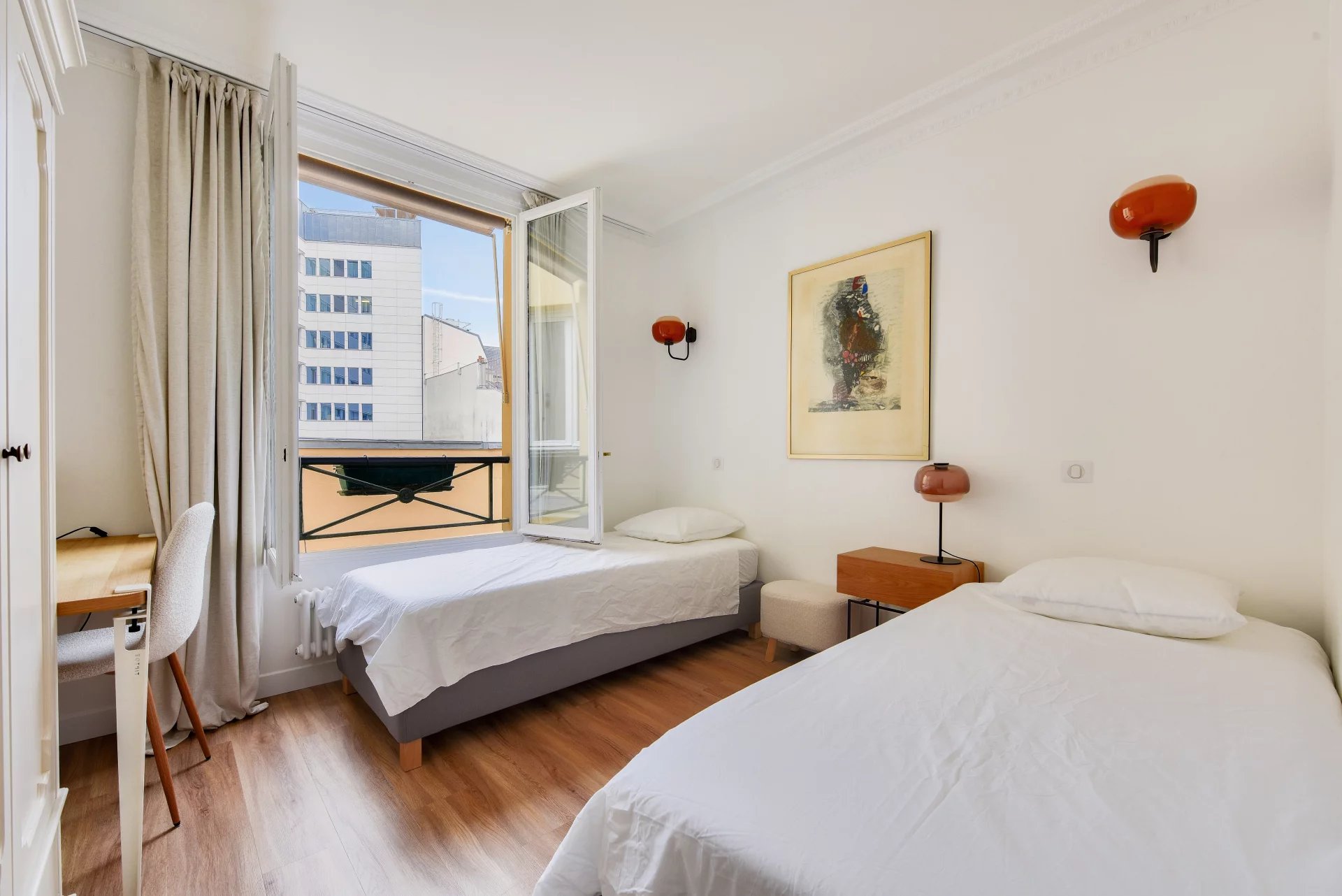 - Three bedrooms, two of which overlook the courtyard, and a spacious 22 m² bedroom,