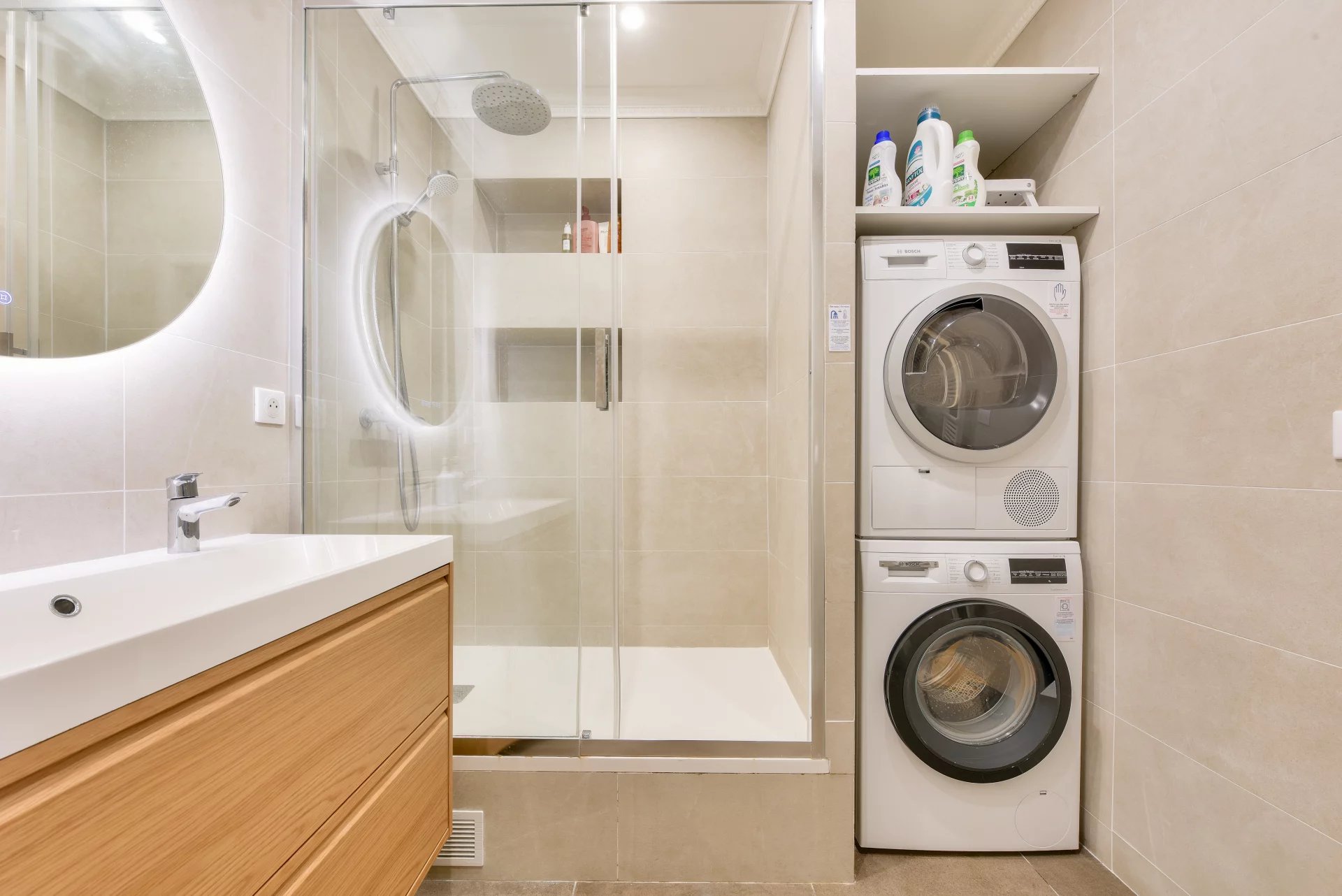 - A shower room with laundry area,