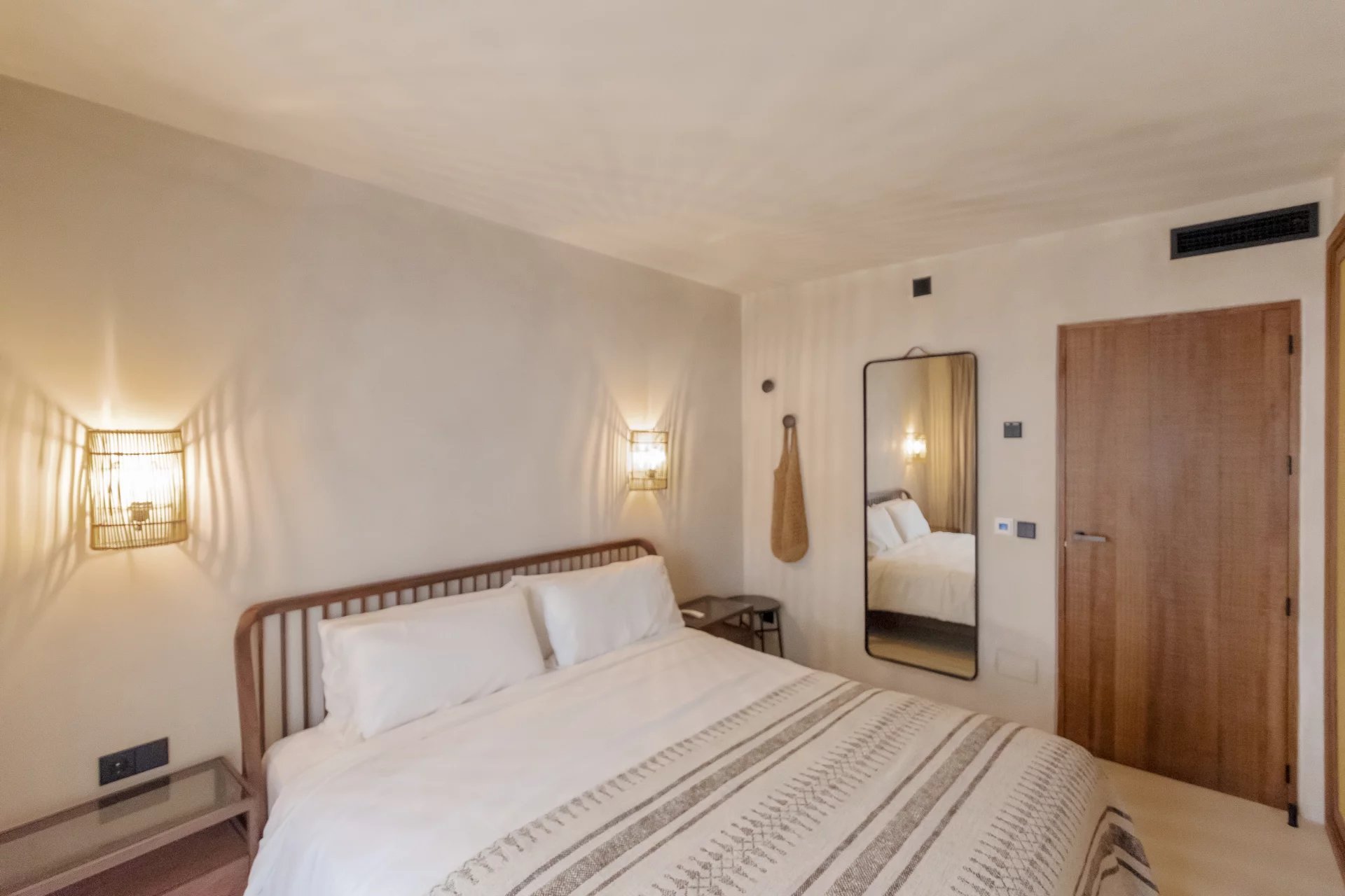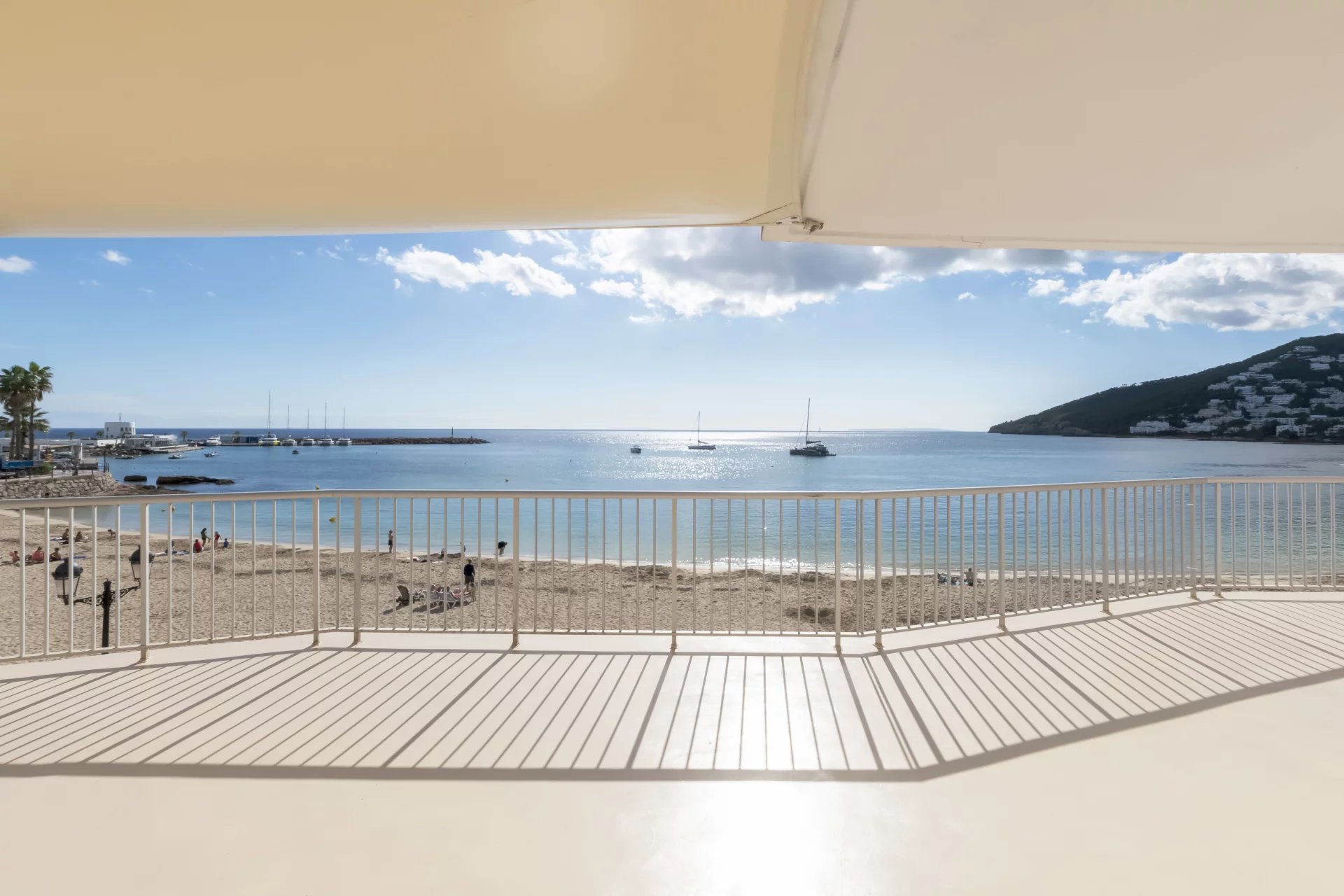 This elegant seafront apartment in Santa Eulalia embodies the essence of modern Mediterranean living.