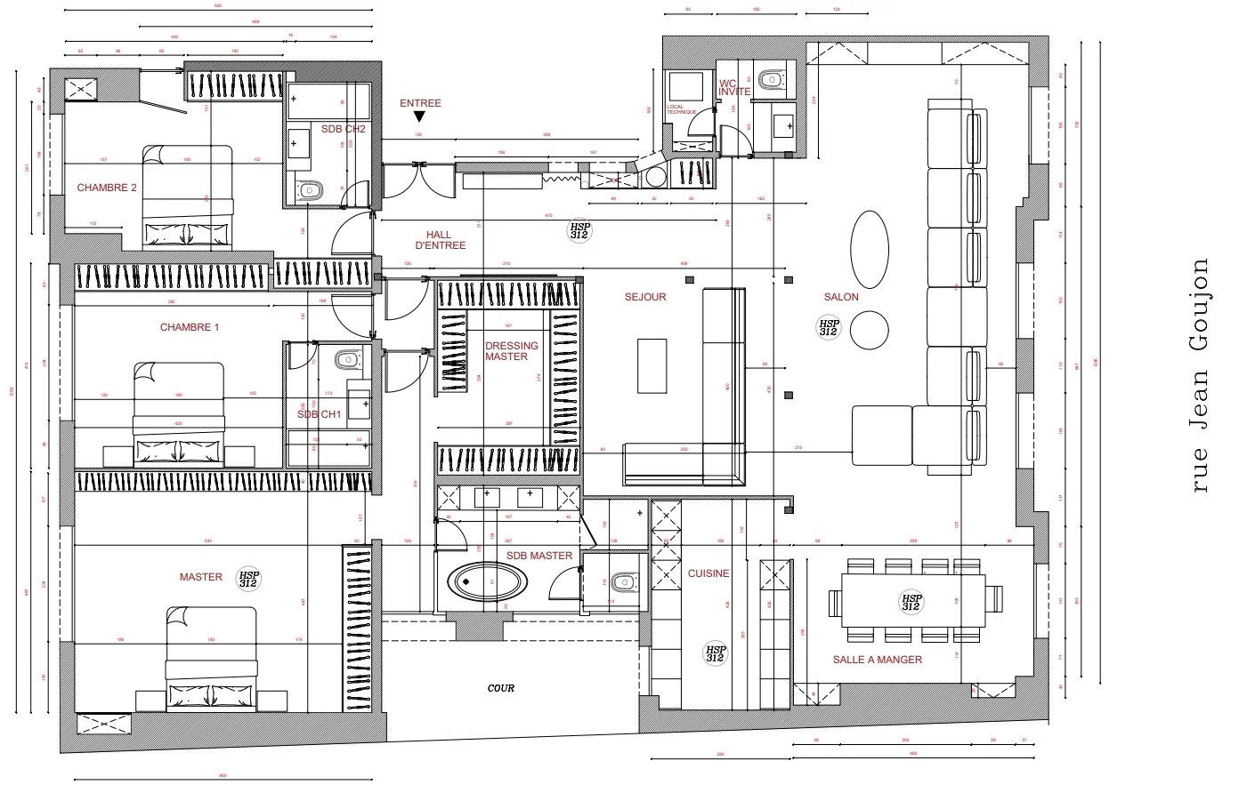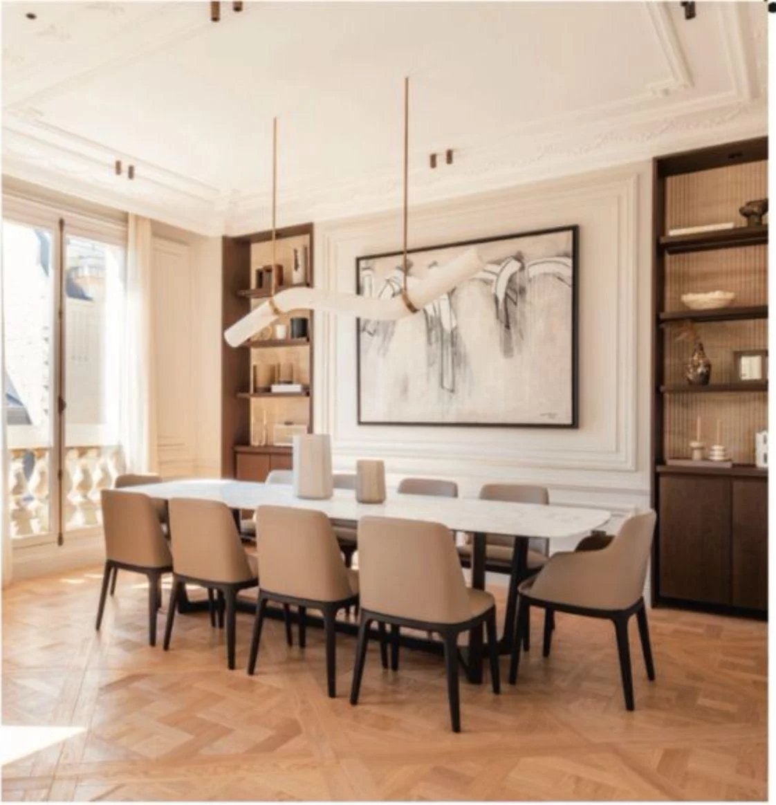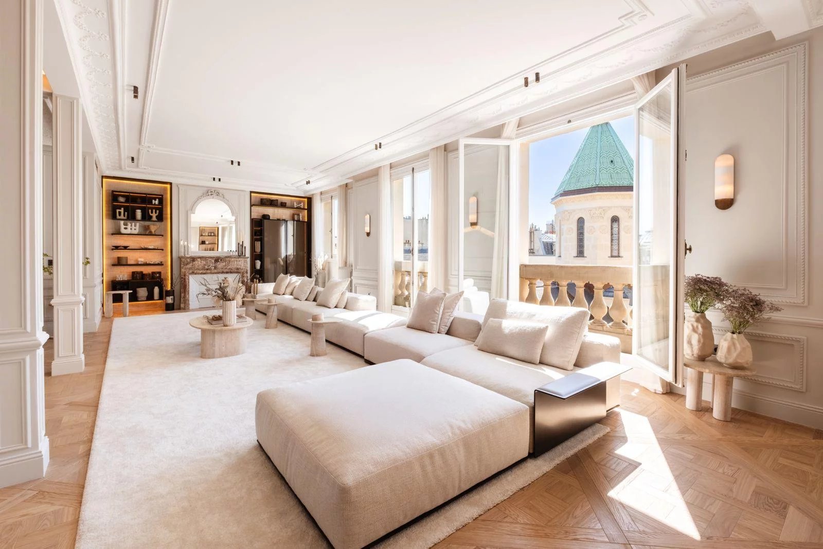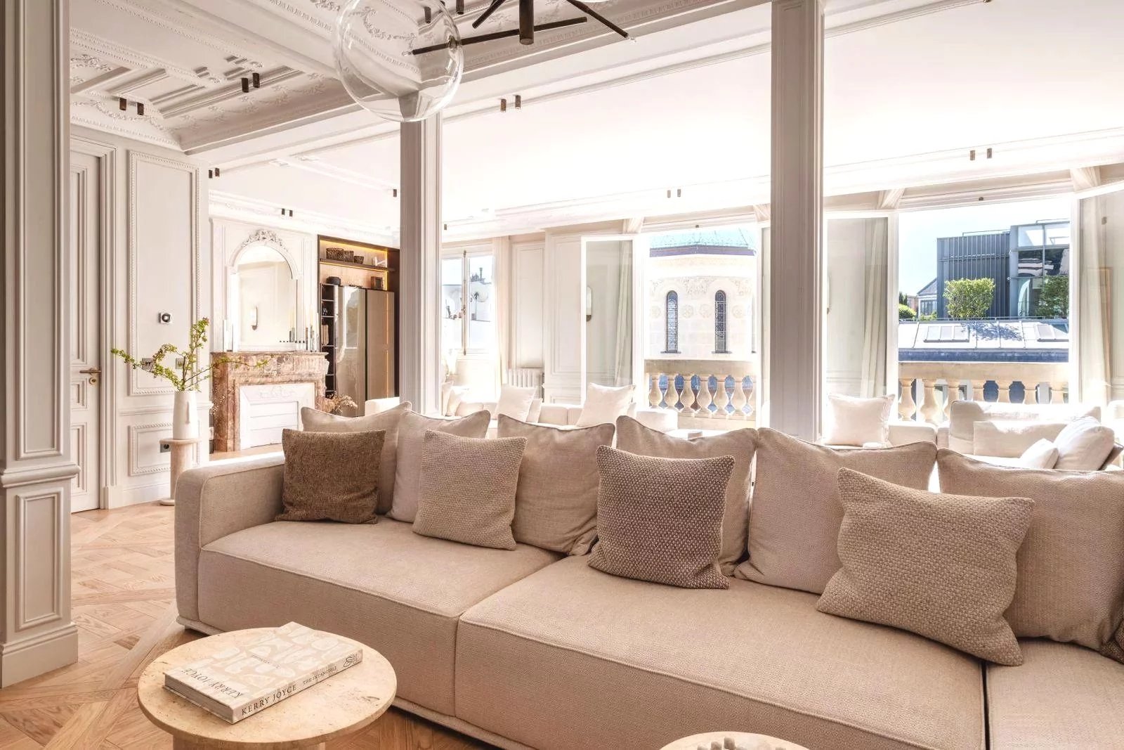On the 5th floor of an Art Deco building in the Golden Triangle, close to Avenue Montaigne and Place François 1er.
