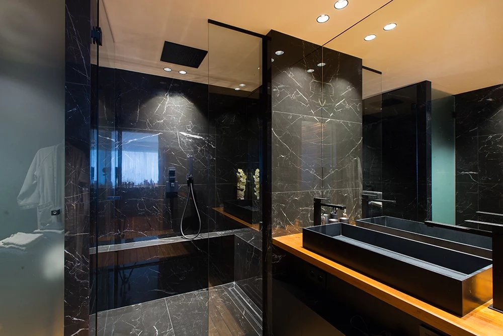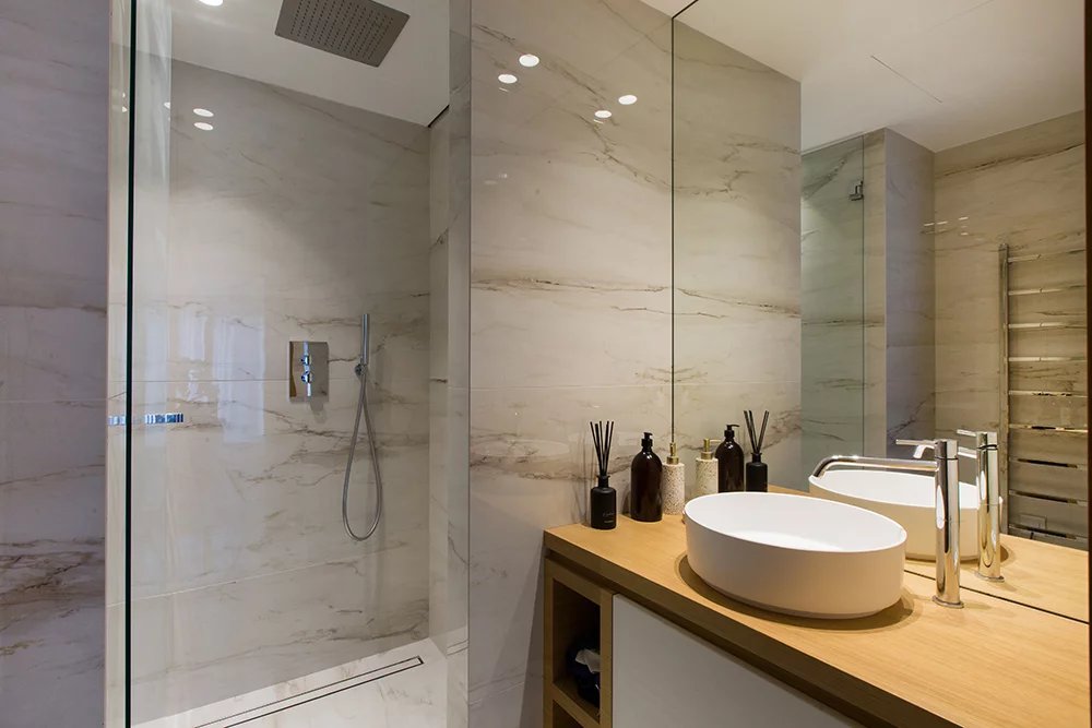 With a floor area of approx. 224 m², it comprises: entrance hall, living room, dining room, kitchen, shower room, gym, bedroom with en suite bathroom, study, cinema room and two further en suite bedrooms opening onto a 37 m² terrace.