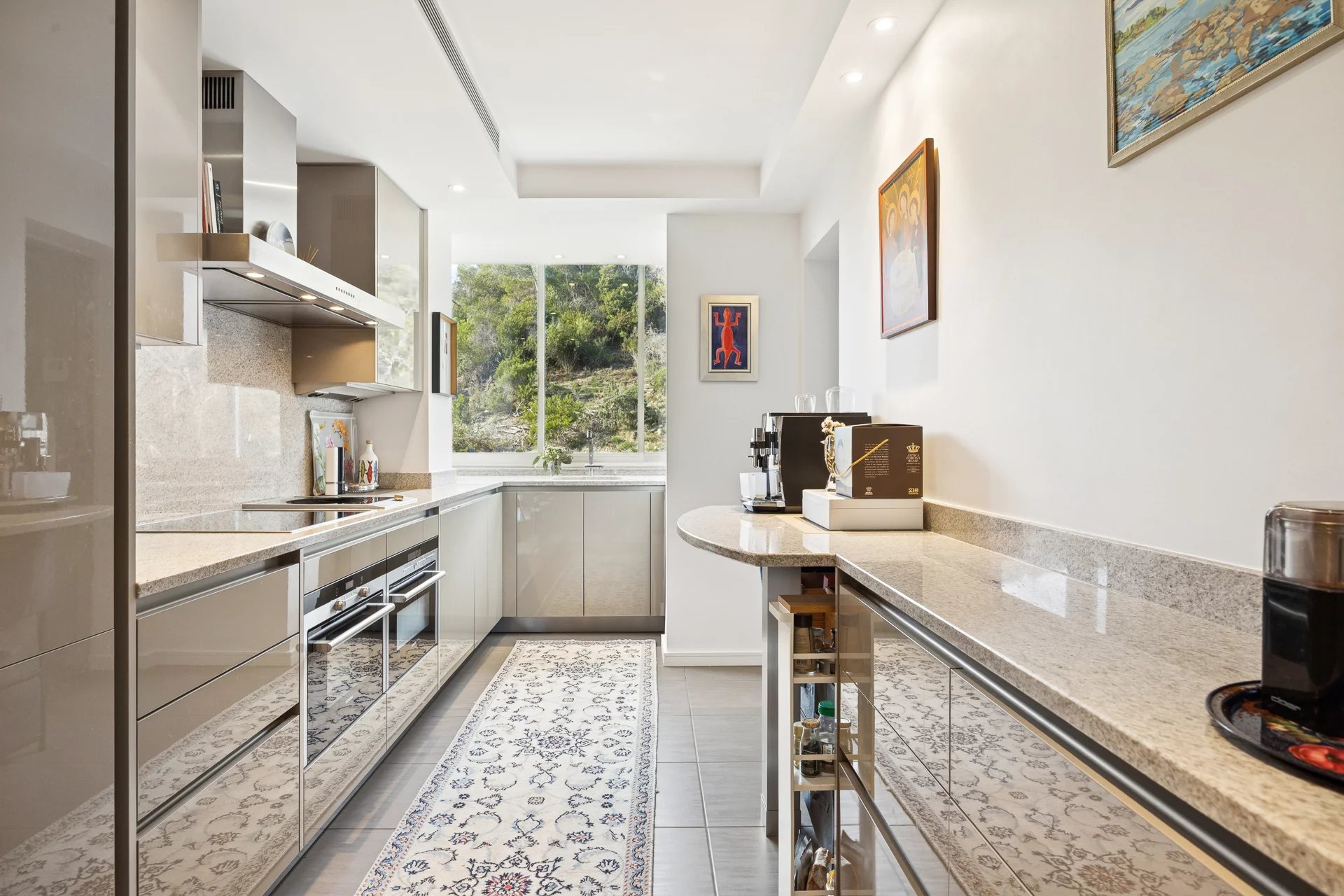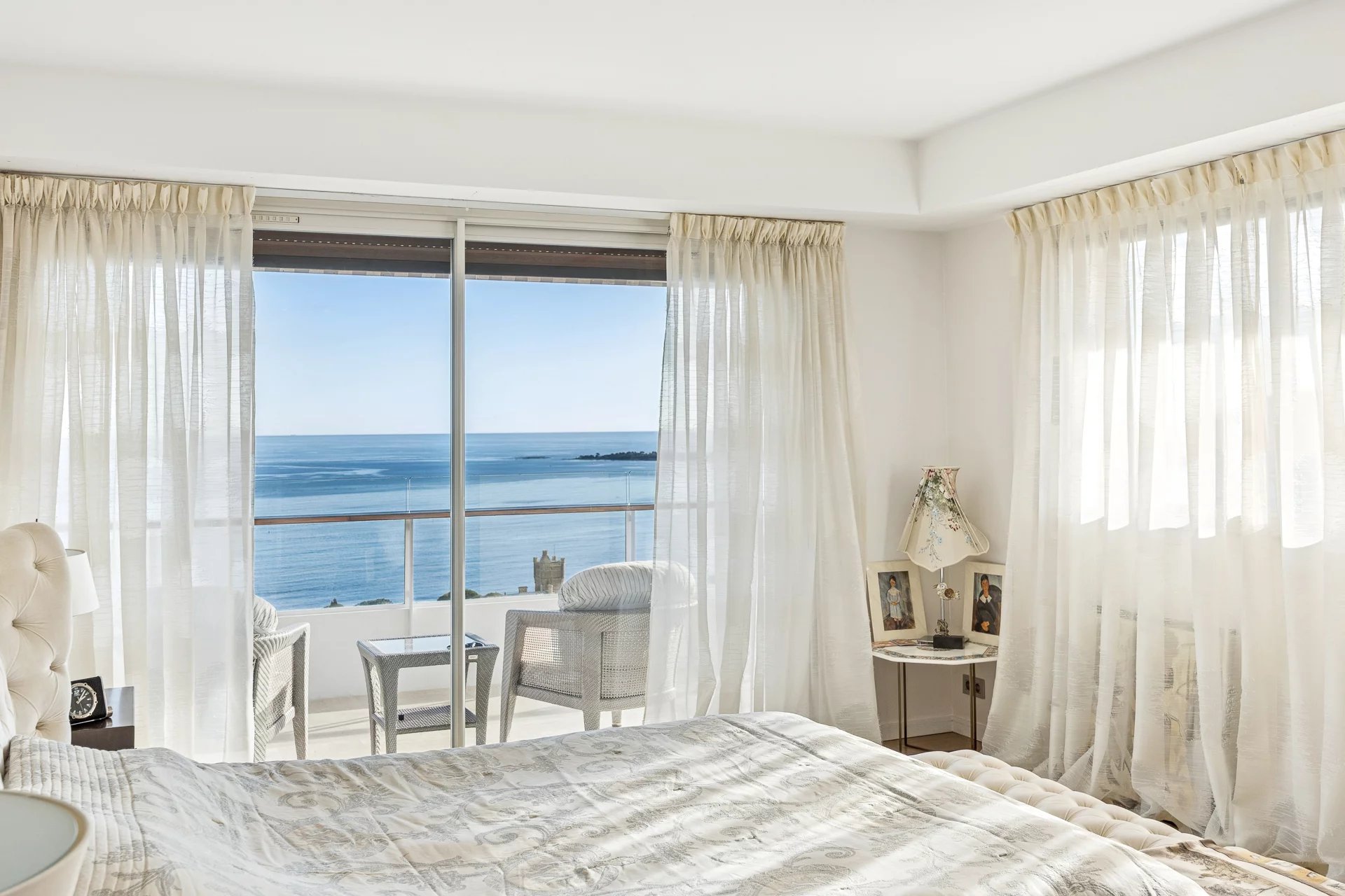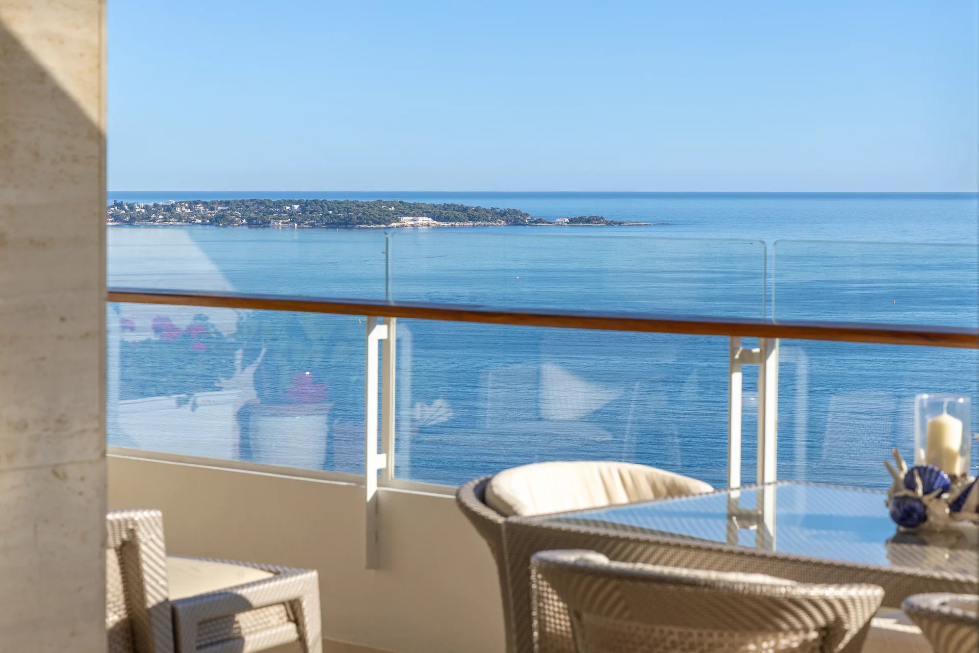 This corner apartment, on a high floor, spans approximately 138 sqm and stands out for its spacious and bright living room, opening onto a 47 sqm corner terrace, offering breathtaking panoramic views of the Mediterranean Sea. The absence of vis-à-vis ensures total privacy, while the parquet flooring and beautiful contemporary features add an elegant touch.