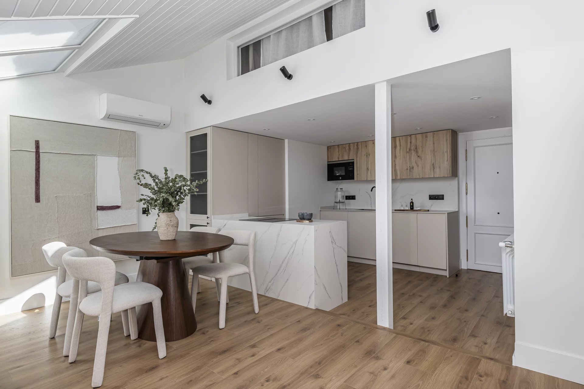 Discover exquisite living in this beautifully furnished 77 m² apartment, ideally situated in the vibrant Centro Justicia district of Madrid. The open-plan kitchen and living space is enhanced by elegant sliding windows, providing abundant natural light and a seamless indoor-outdoor experience. Enjoy modern amenities such as air-conditioning and high-speed internet, ensuring comfort and connectivity.
