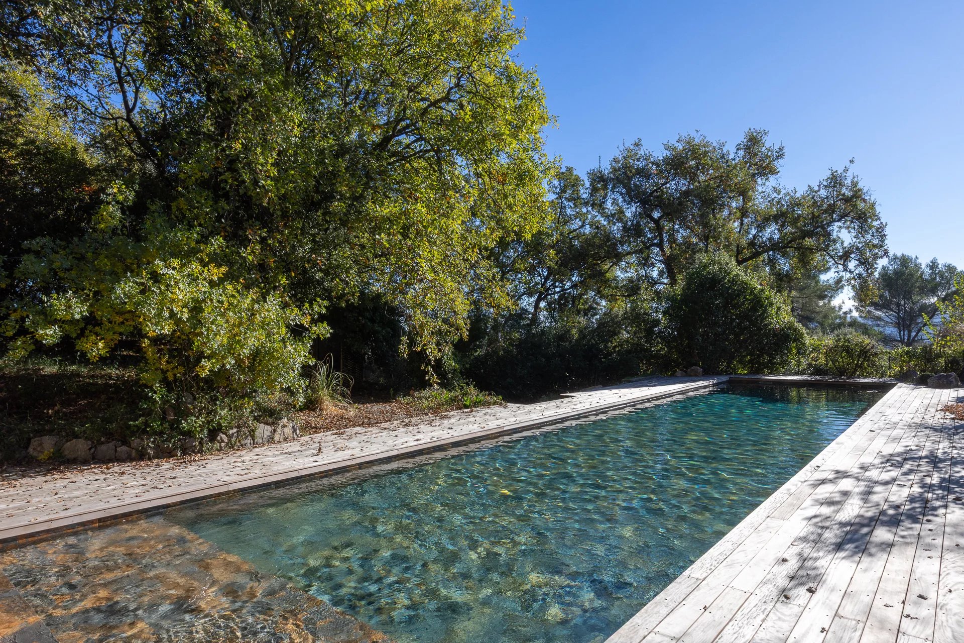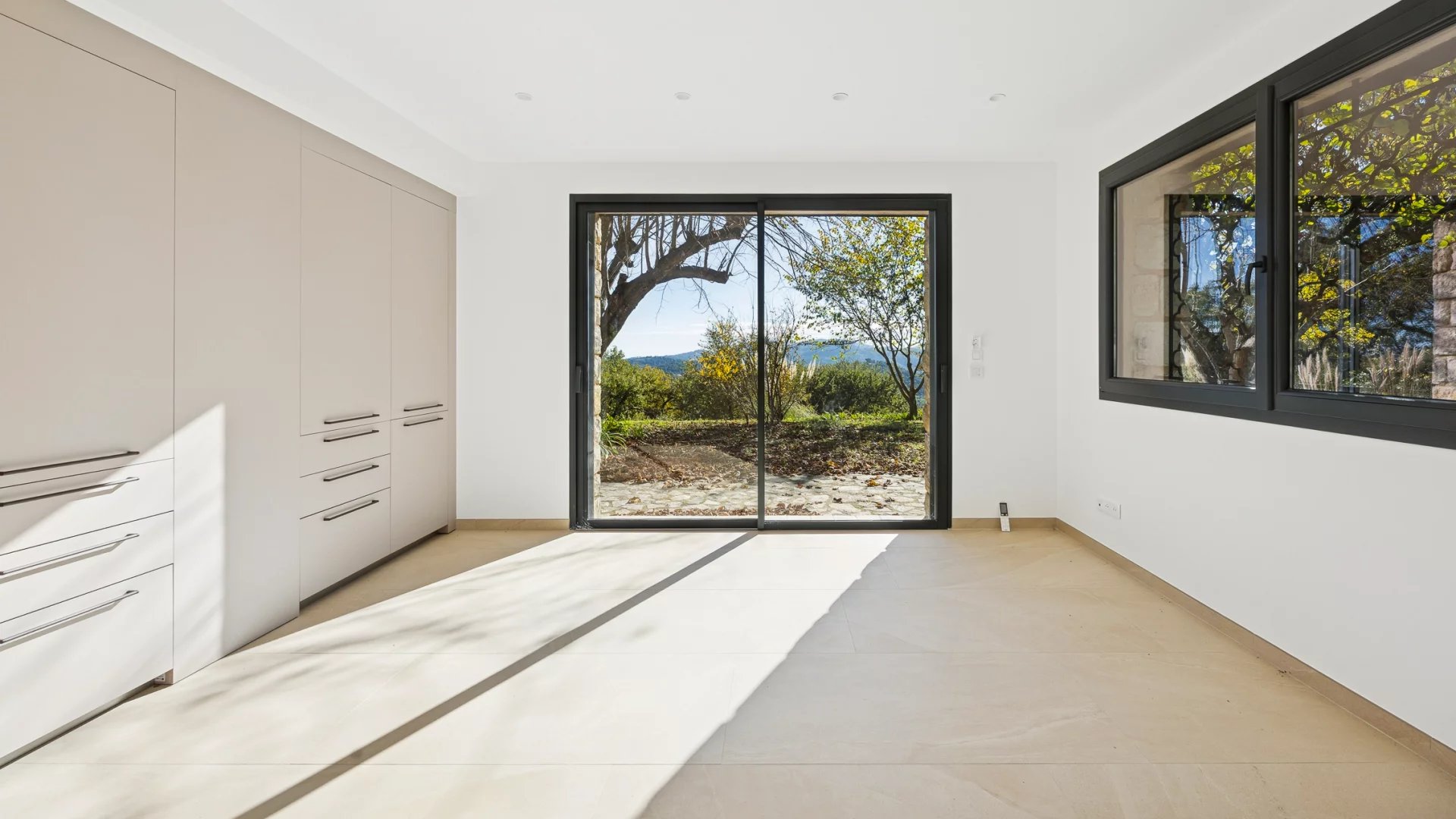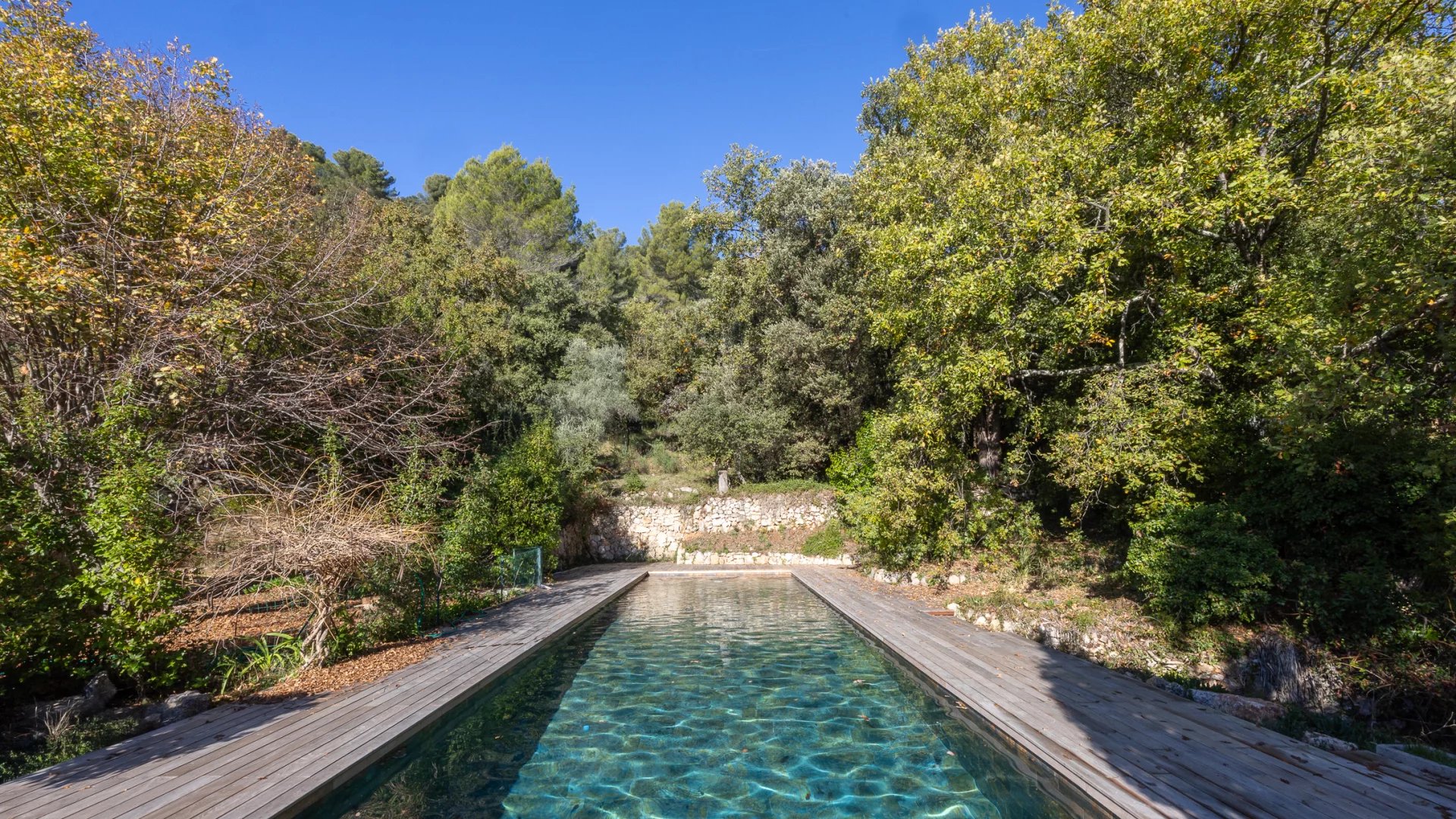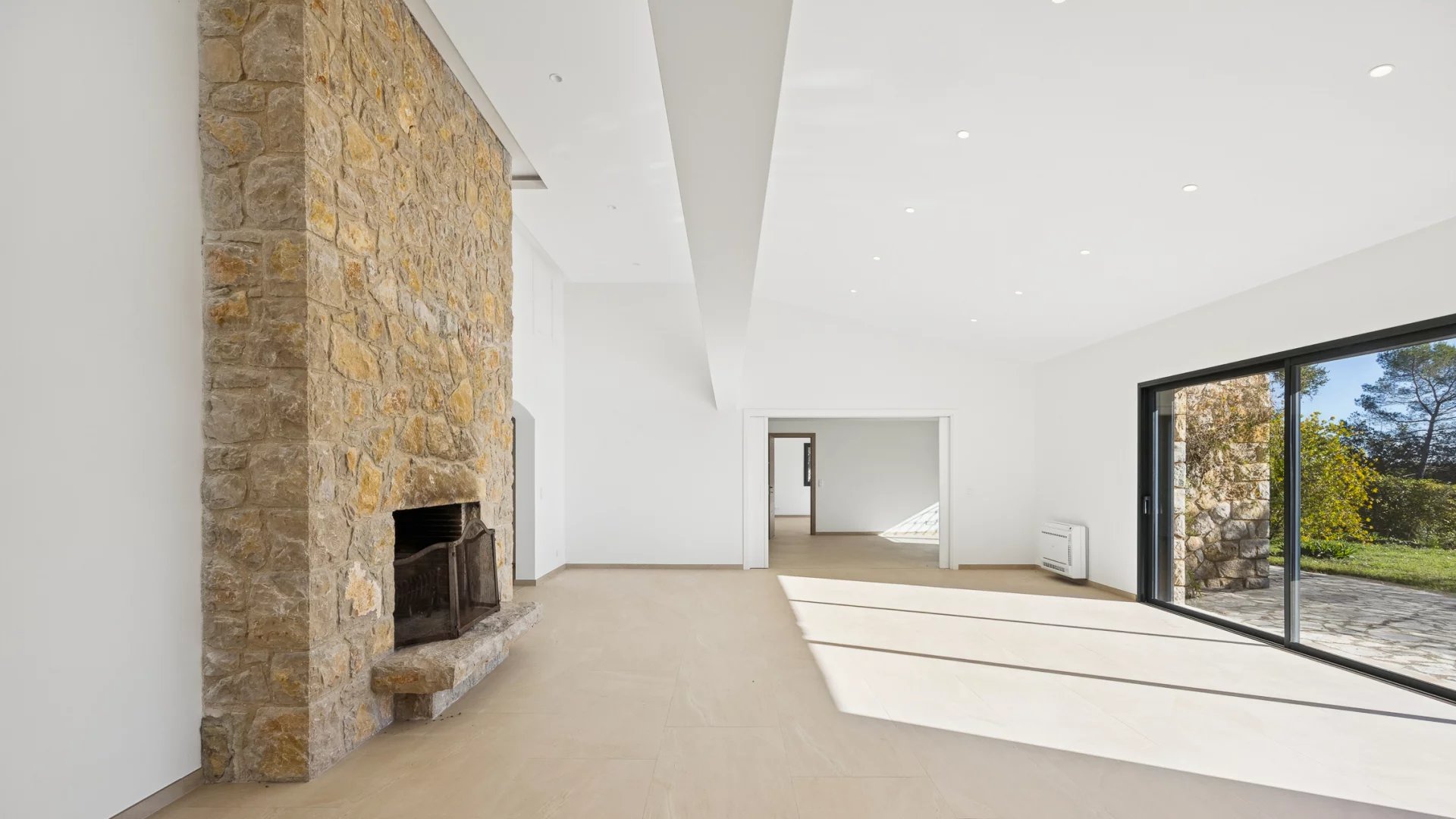 Set on a wooded 1.6-hectare estate, halfway between Saint-Tropez and Monte-Carlo in the hills above Cannes, this villa of approximately 300 sqm—built in 1985 and fully renovated in 2025—offers a serene and discreet natural setting.