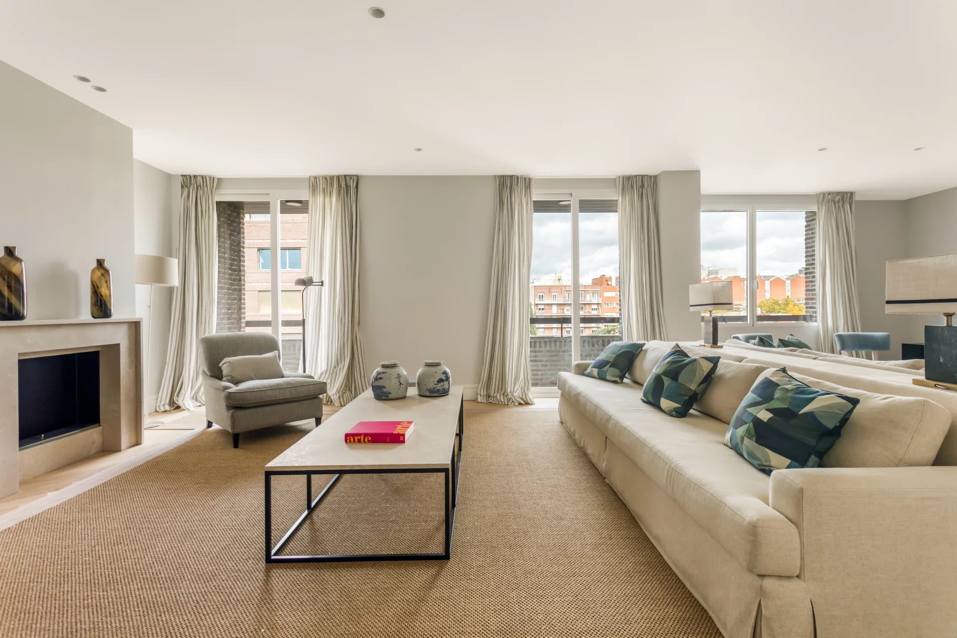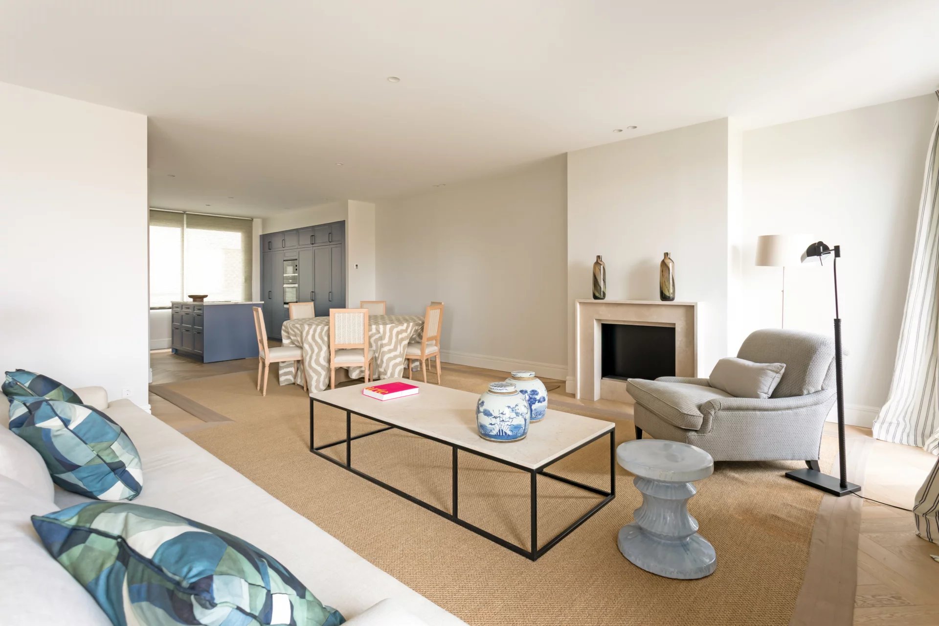 The property comprises a large living room with large windows that provide natural light, connected to a dining room perfect for gatherings and special occasions. The modern kitchen is fully equipped with high-end appliances. This luxurious flat has a separate laundry area, which is very functional for everyday use. There is also a guest toilet, ideal for visitors.