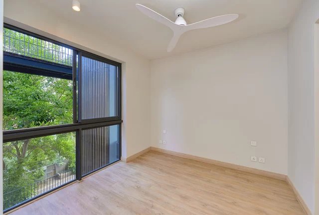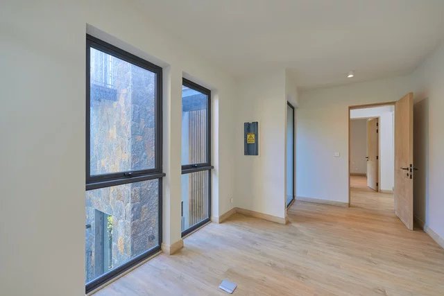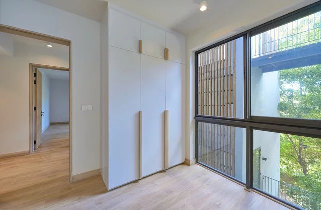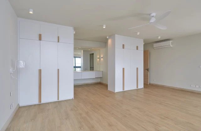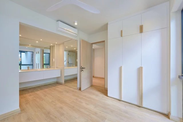 Sold unfurnished, but includes a fully equipped kitchen and built-in dressing