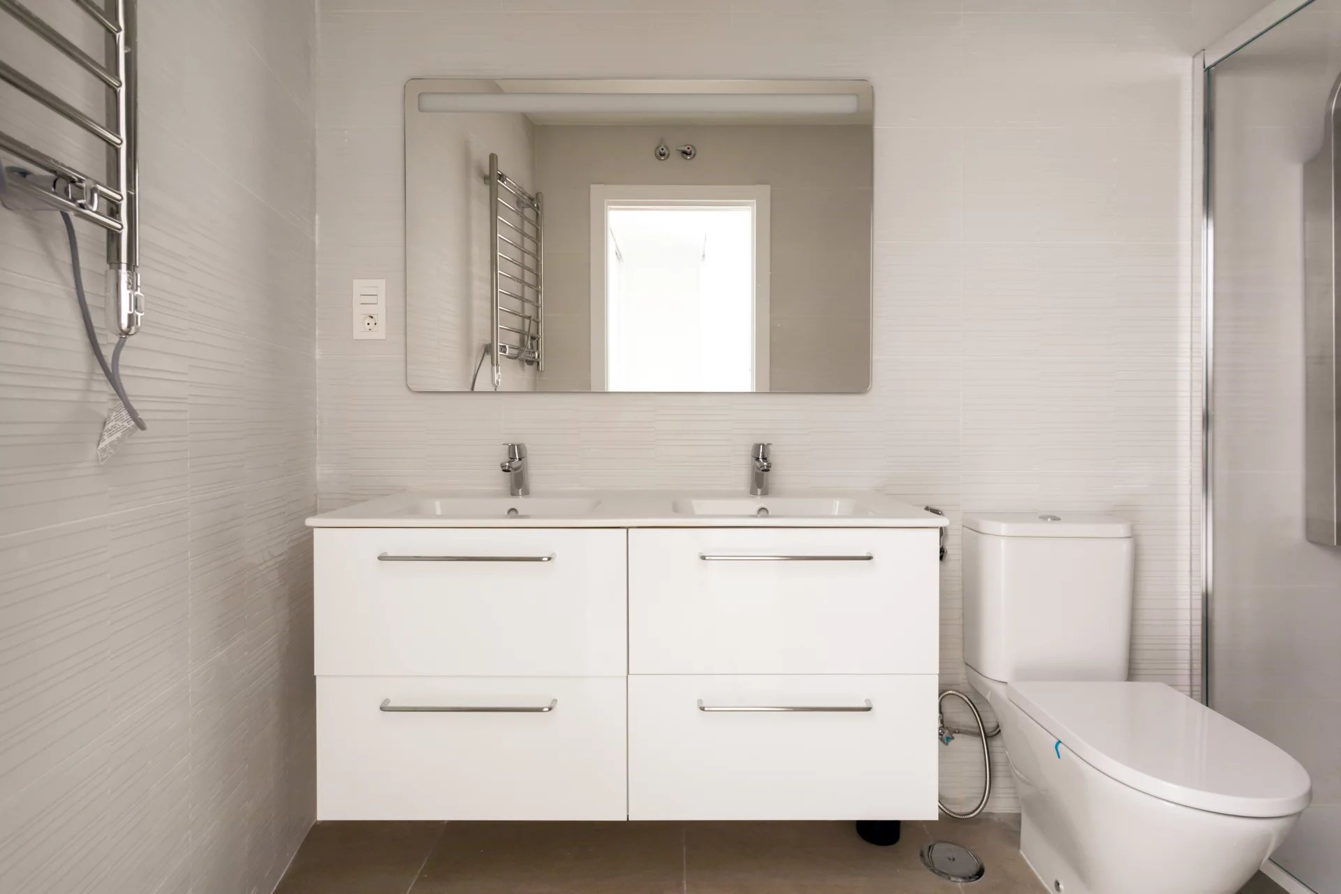 The property is located on the second floor of the building, has an area of 127 m², with 82 m² of private housing, is distributed in distributor with closets, kitchen integrated into the living room, fully equipped, separate laundry area. Dining room. The sleeping area consists of two bedrooms. Master bedroom with dressing room and bathroom en suite. An additional full bathroom will serve the secondary bedroom. The entire floor is exterior, except for the bathrooms.
