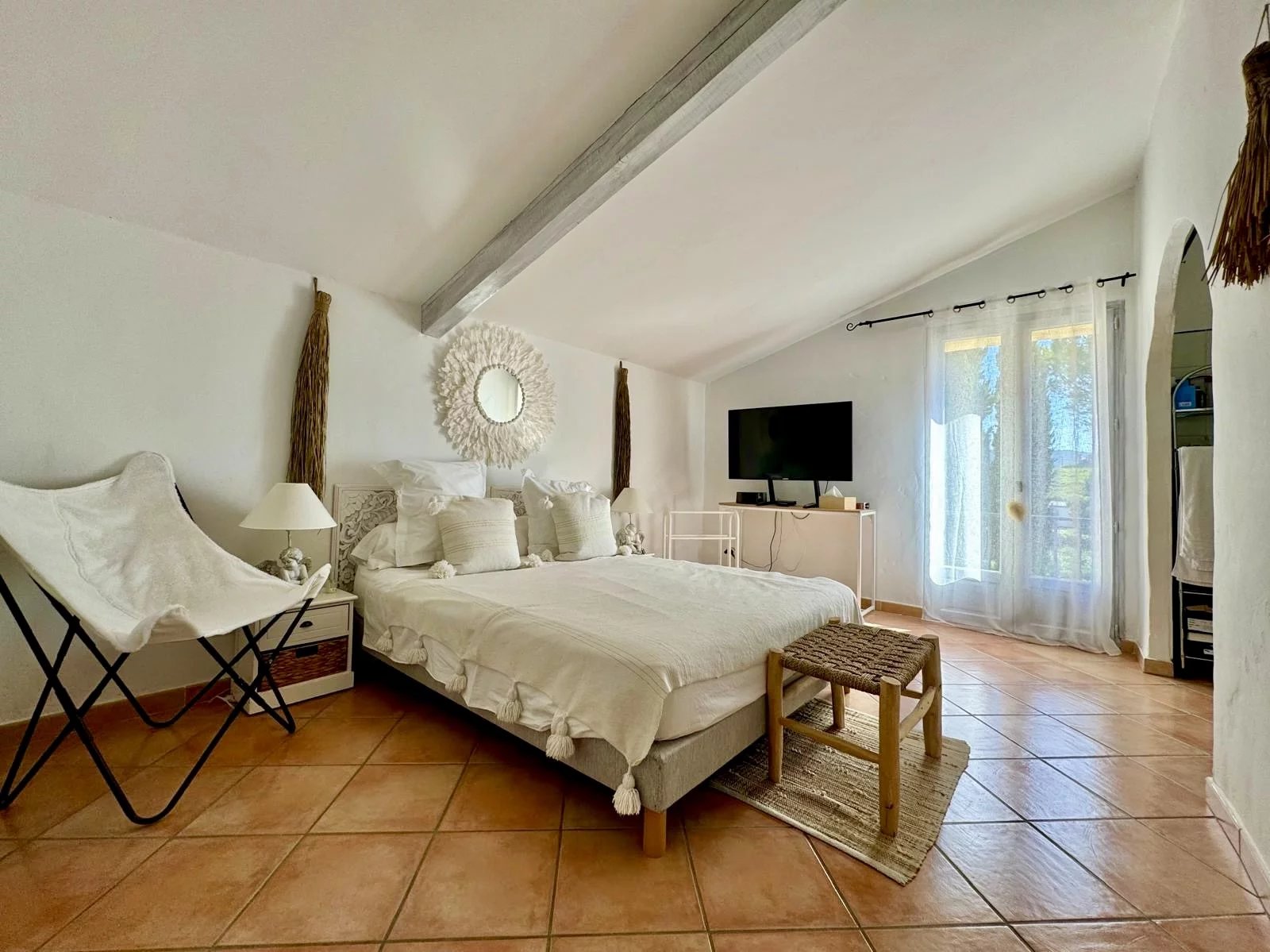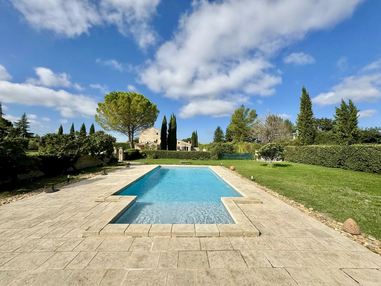 Just a few steps from its charming Provençal village, this authentic farmhouse offers an idyllic setting and a majestic view of Mont Ventoux. The true spirit of Provence reveals itself through the stone, the light, and the surrounding landscapes.