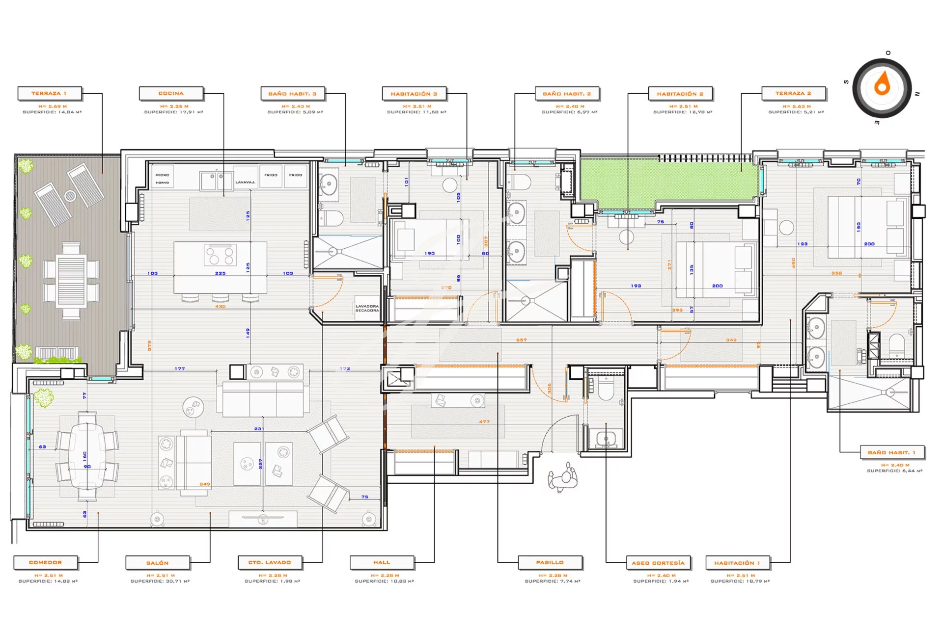 The flat, which is entirely exterior and located on the 10th floor, enjoys exceptional light and unobstructed views. It offers an exclusive and highly functional layout: three bedrooms, all with en-suite bathrooms, plus a guest toilet, providing maximum comfort. It also has a terrace of almost 15 m², perfect for enjoying the outdoors.