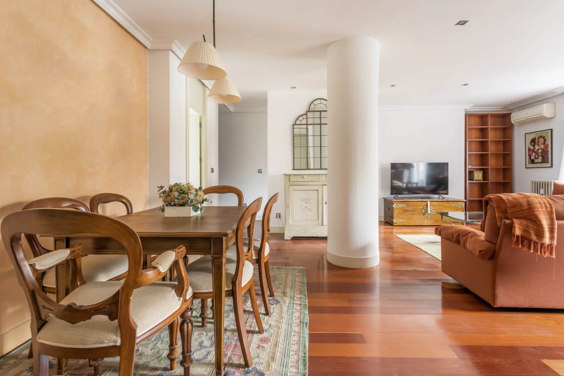 John Taylor invites you to live in this 180 m² apartment in Madrid offering four perfectly furnished bedrooms, ideal for families or groups. Enjoy the comfort of air conditioning and double-glazed windows, which guarantee a quiet and comfortable environment at any time of the year. The elegant living room is perfect for relaxing or entertaining, while the modern kitchen is equipped with high quality appliances such as oven, microwave and dishwasher.