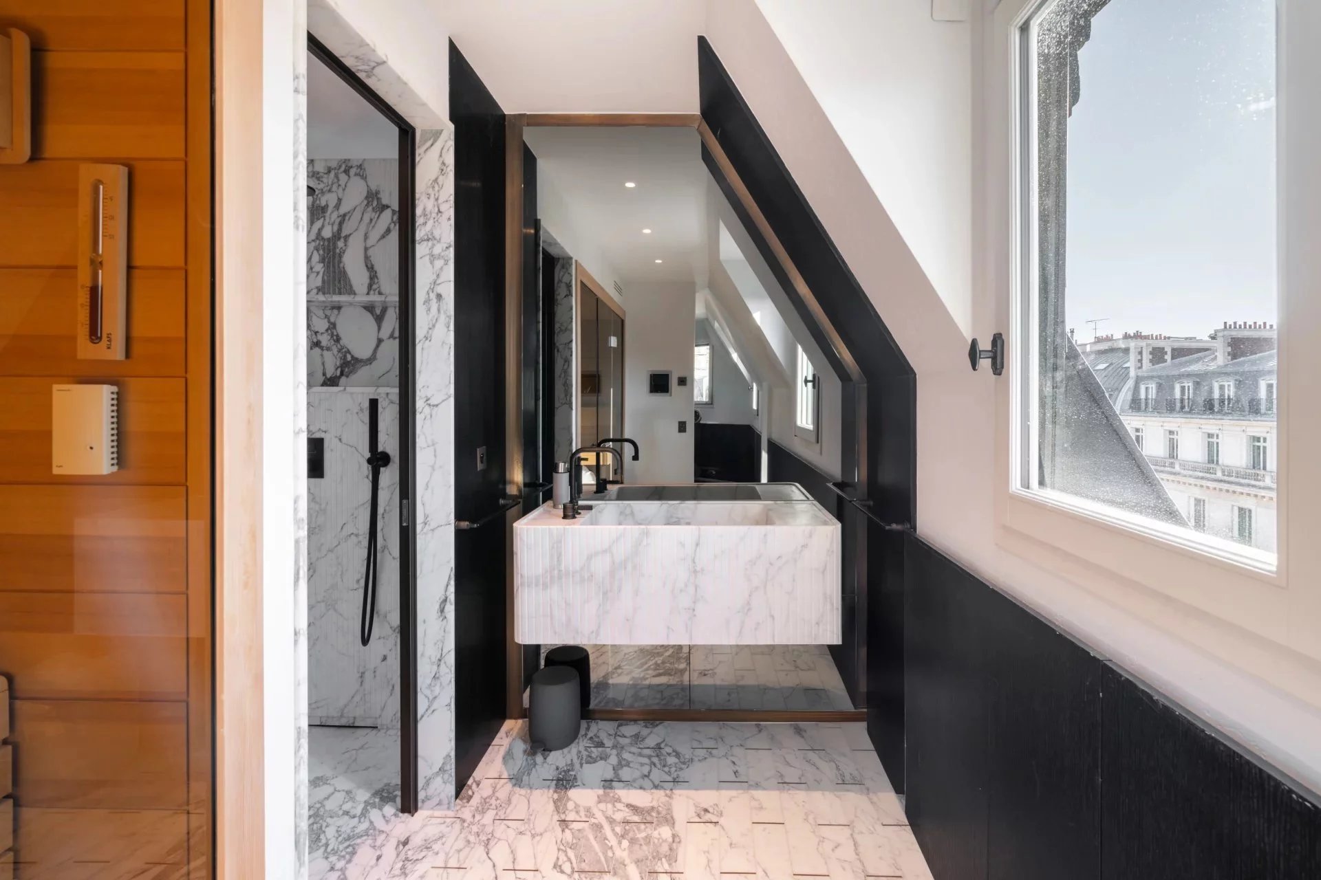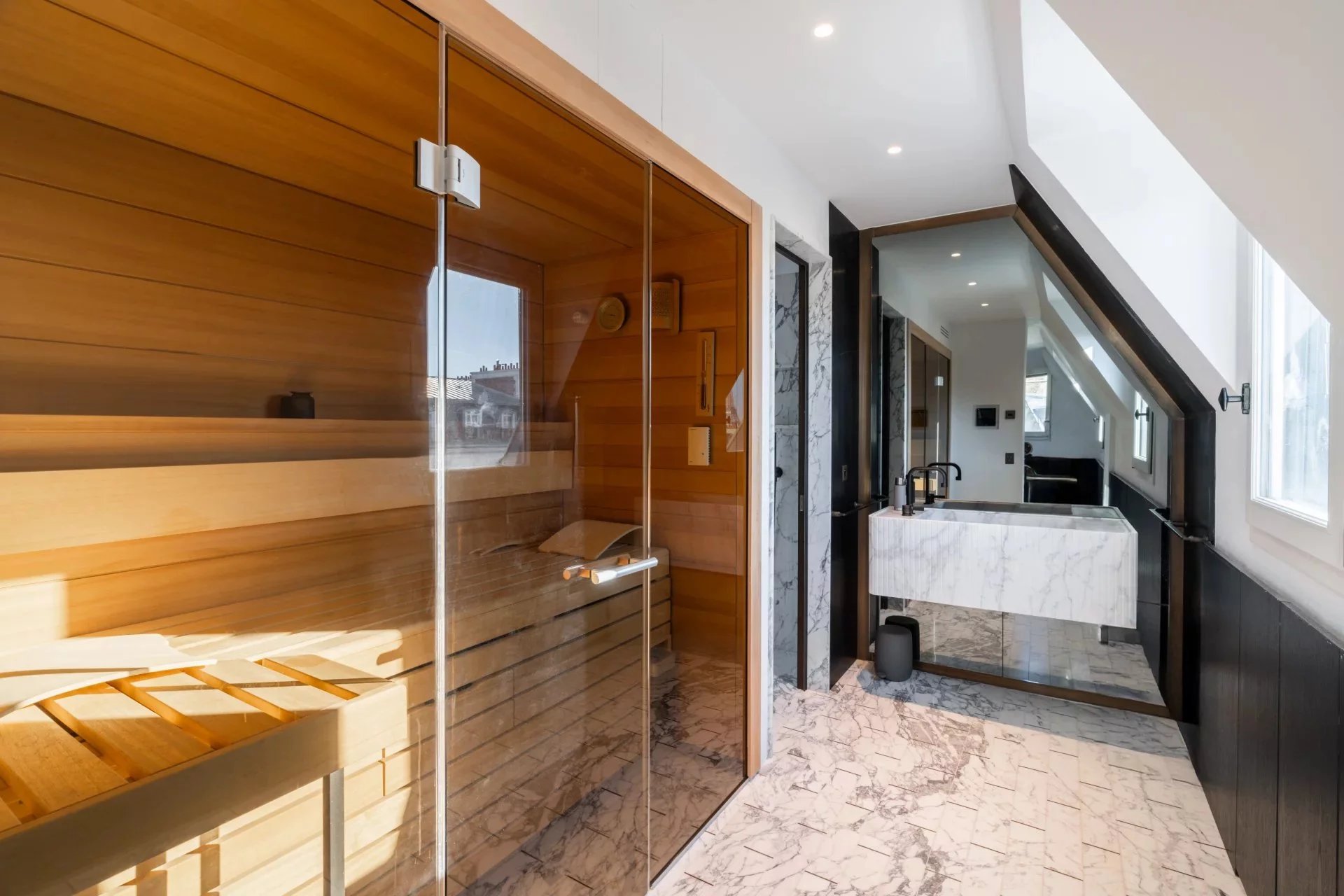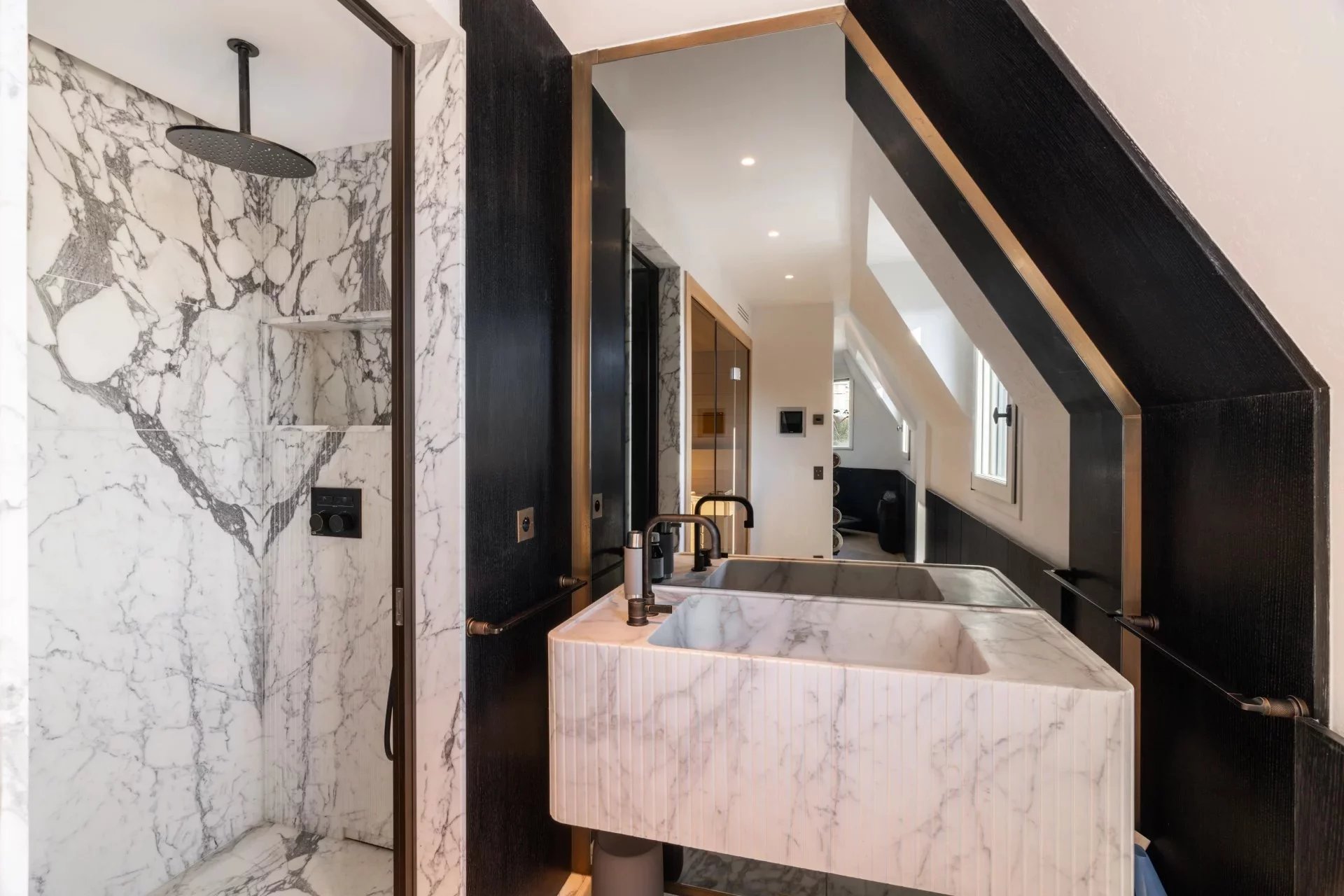 With a surface area of 190 m2, this duplex apartment on the top floors with elevator has been renovated to a very high standard.