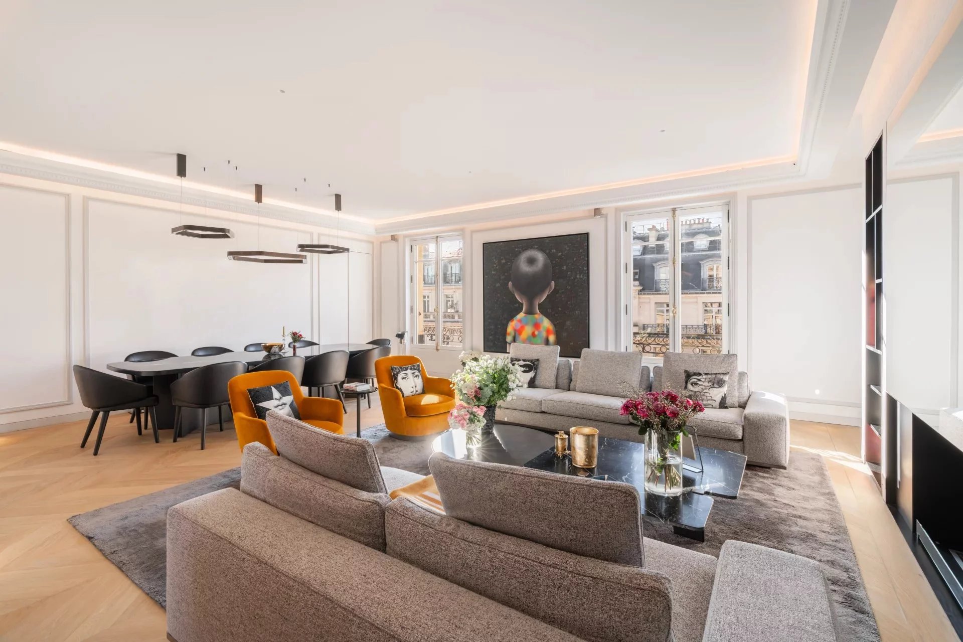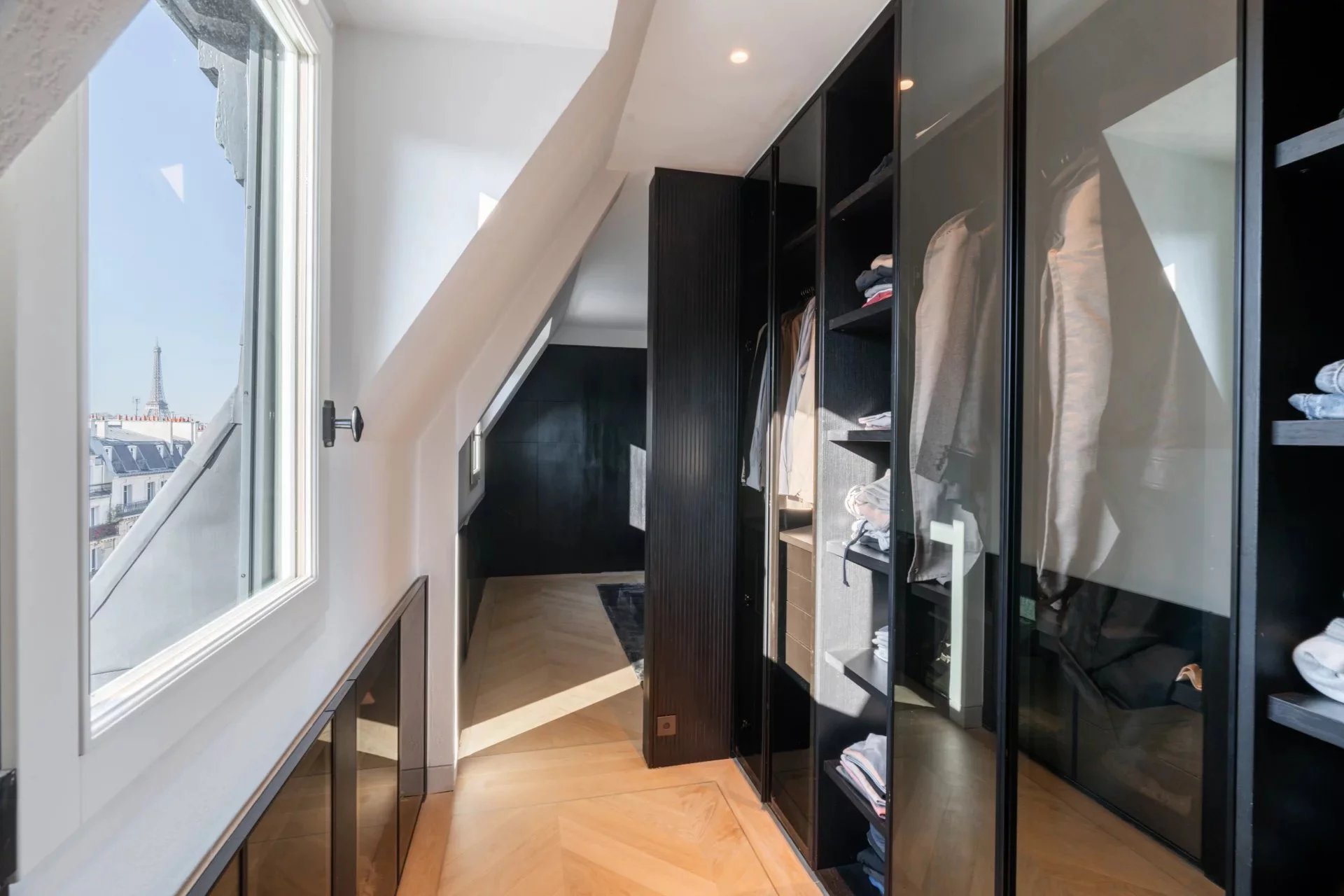 Offering beautiful views of the Eiffel Tower and the Dôme des Invalides, this property is composed as follows:
