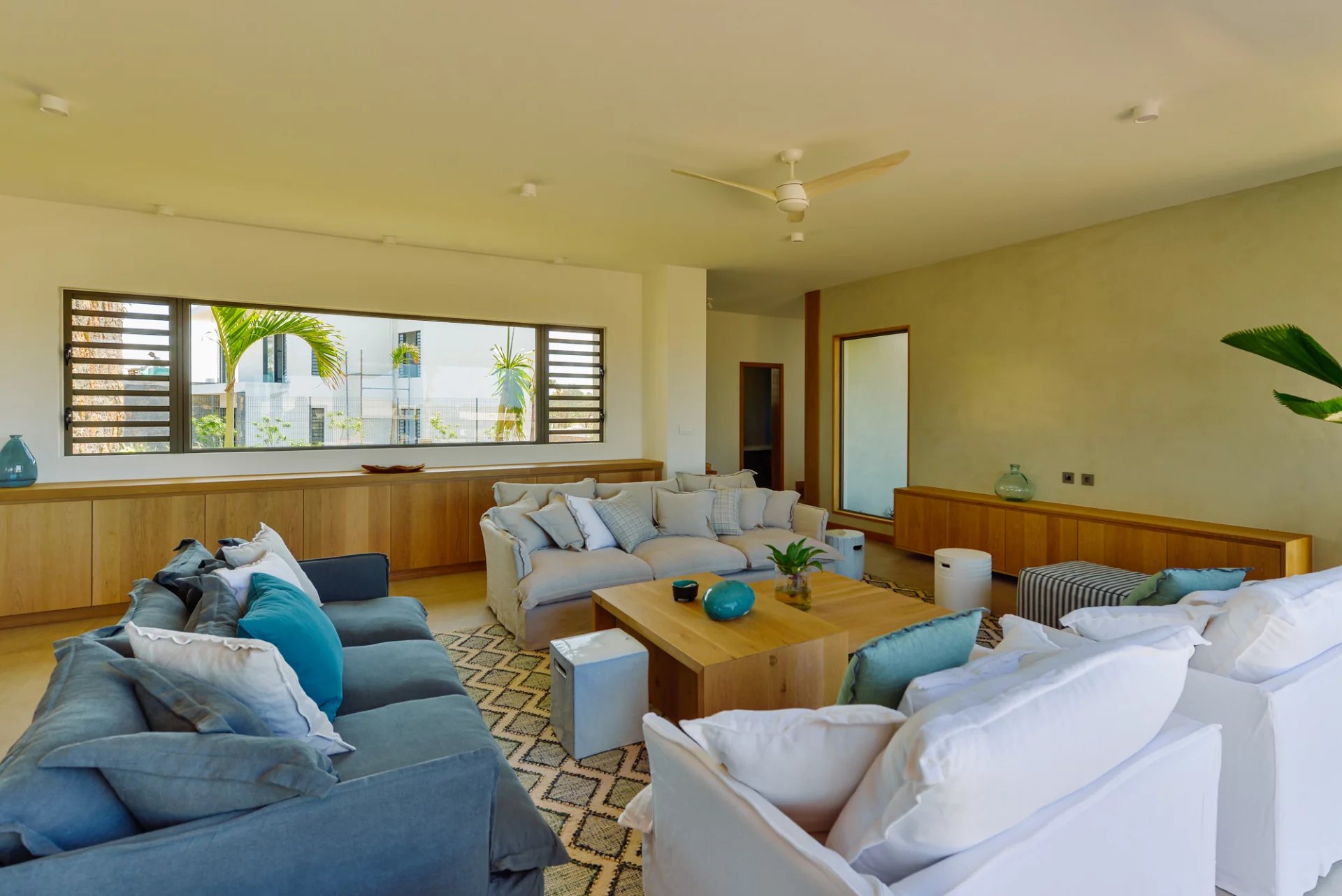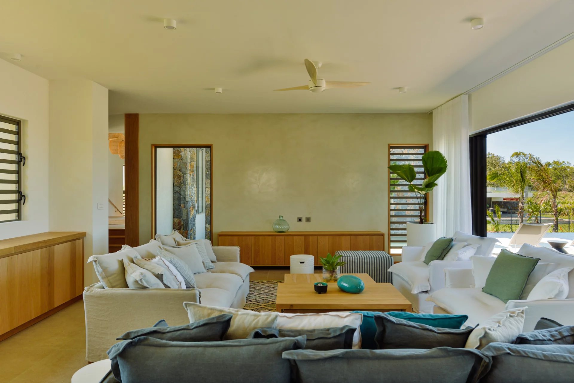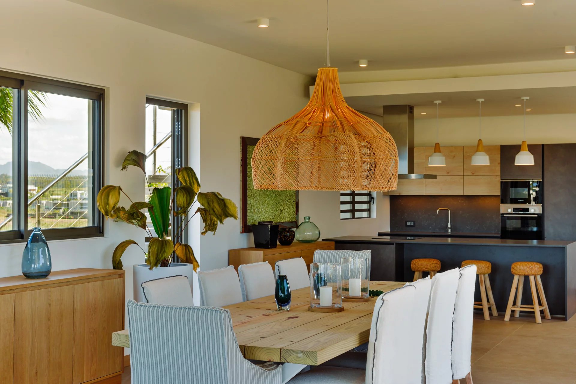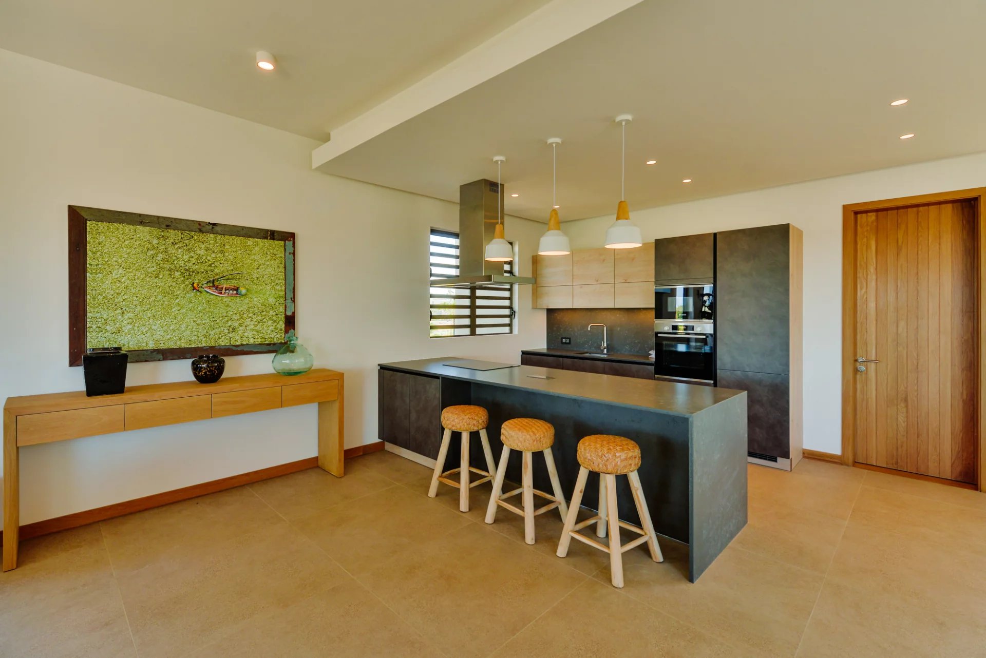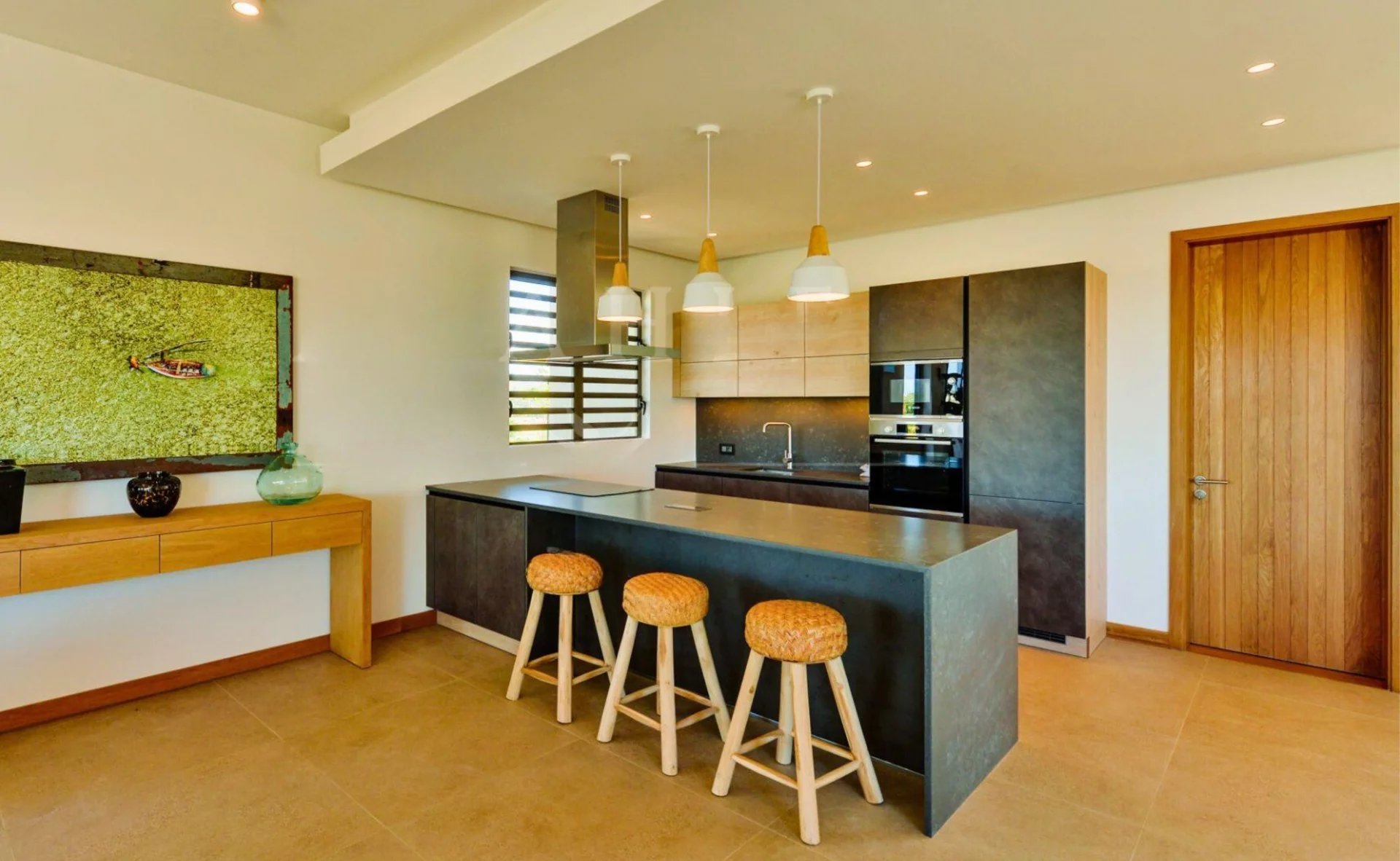 Designed by renowned Mauritian architect JM Eynaud and built by Maison M, the villa showcases exceptional craftsmanship and contemporary elegance.