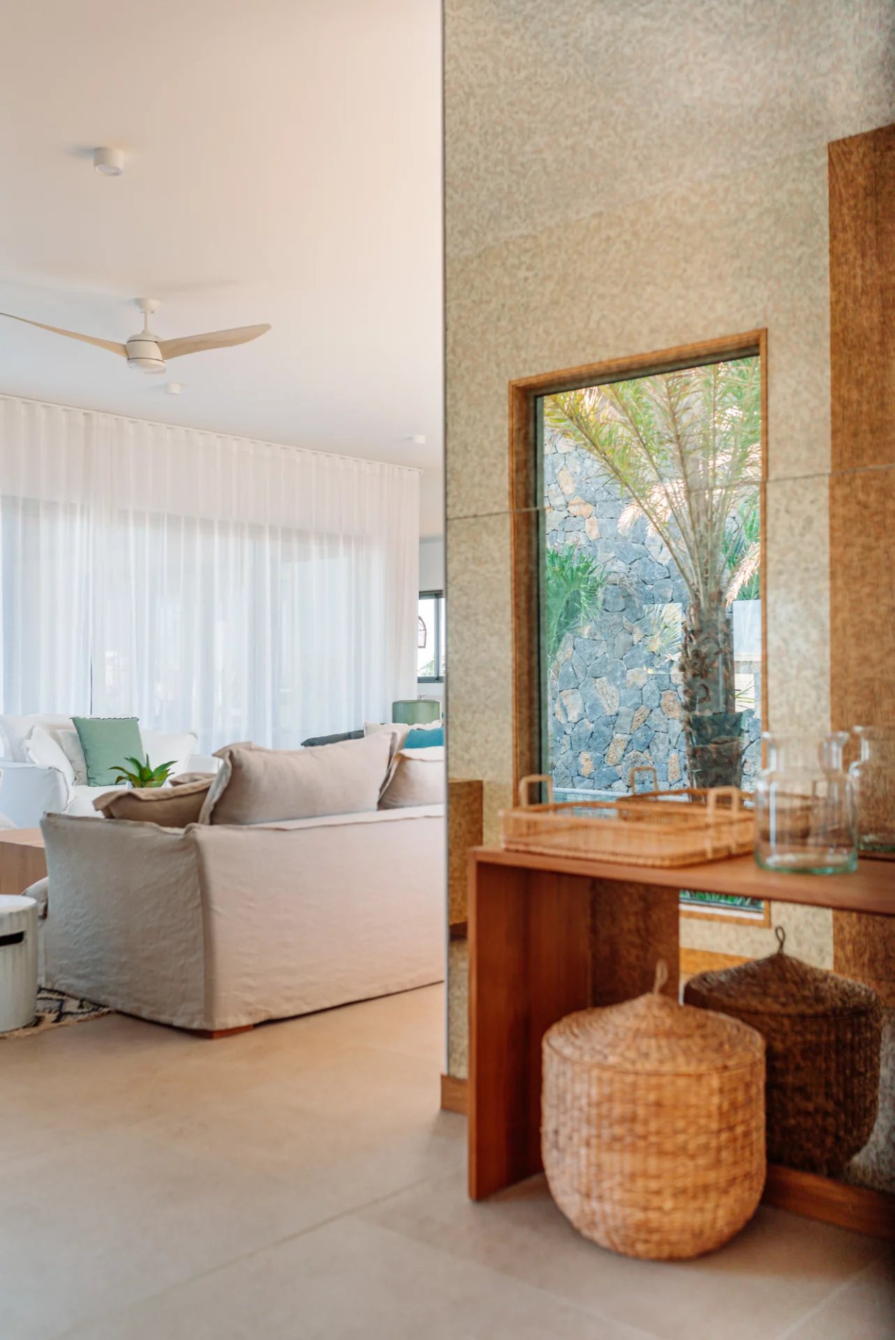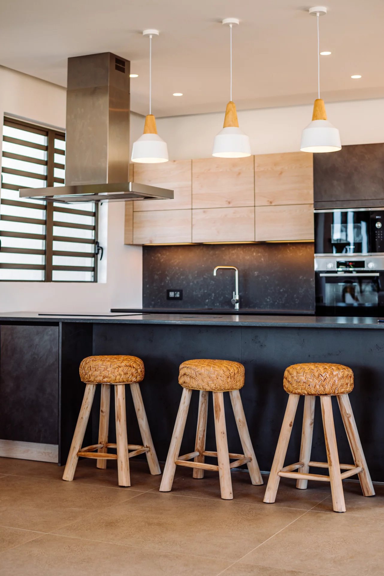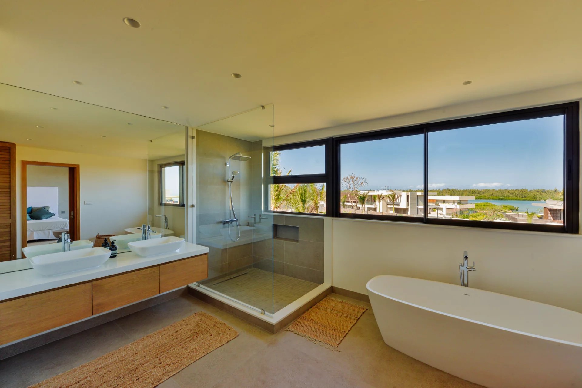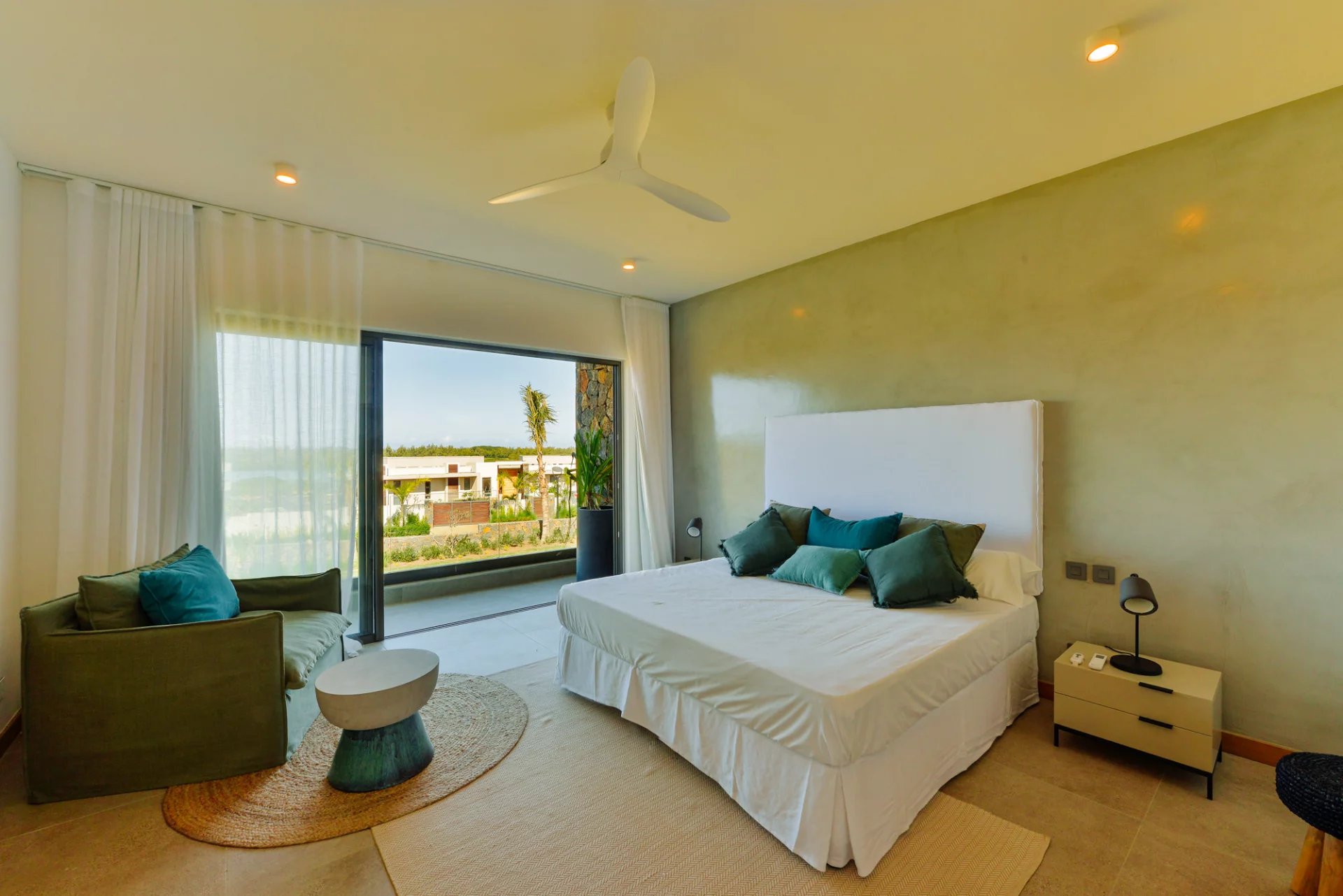 Designed by renowned Mauritian architect JM Eynaud and built by Maison M, the villa showcases exceptional craftsmanship and contemporary elegance.