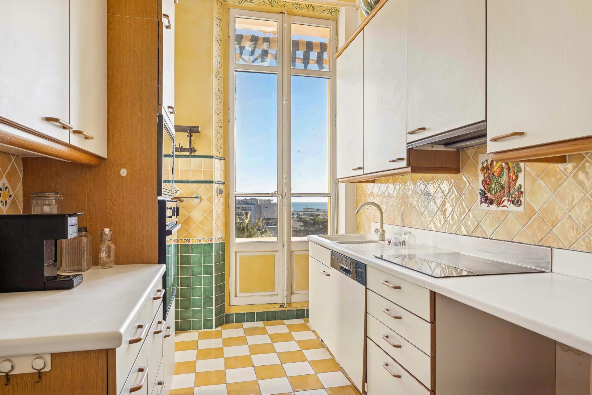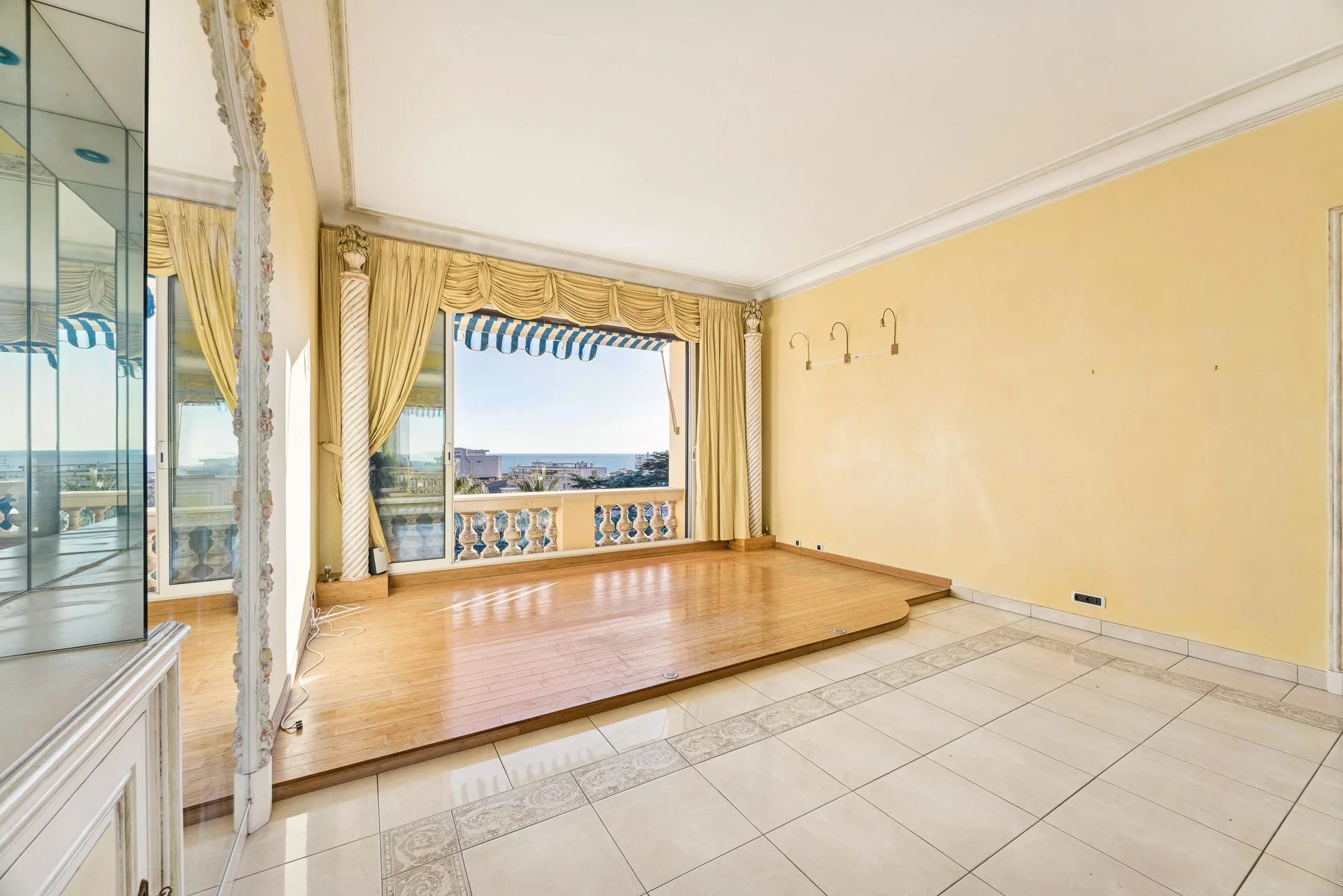 In the prestigious Parc Continental residence, beautiful 70 m² one-bedroom apartment with magnificent sea views and high ceilings, located on a high floor of a historic building constructed in 1850, offering a unique living environment in the heart of a 1.5-hectare wooded park.