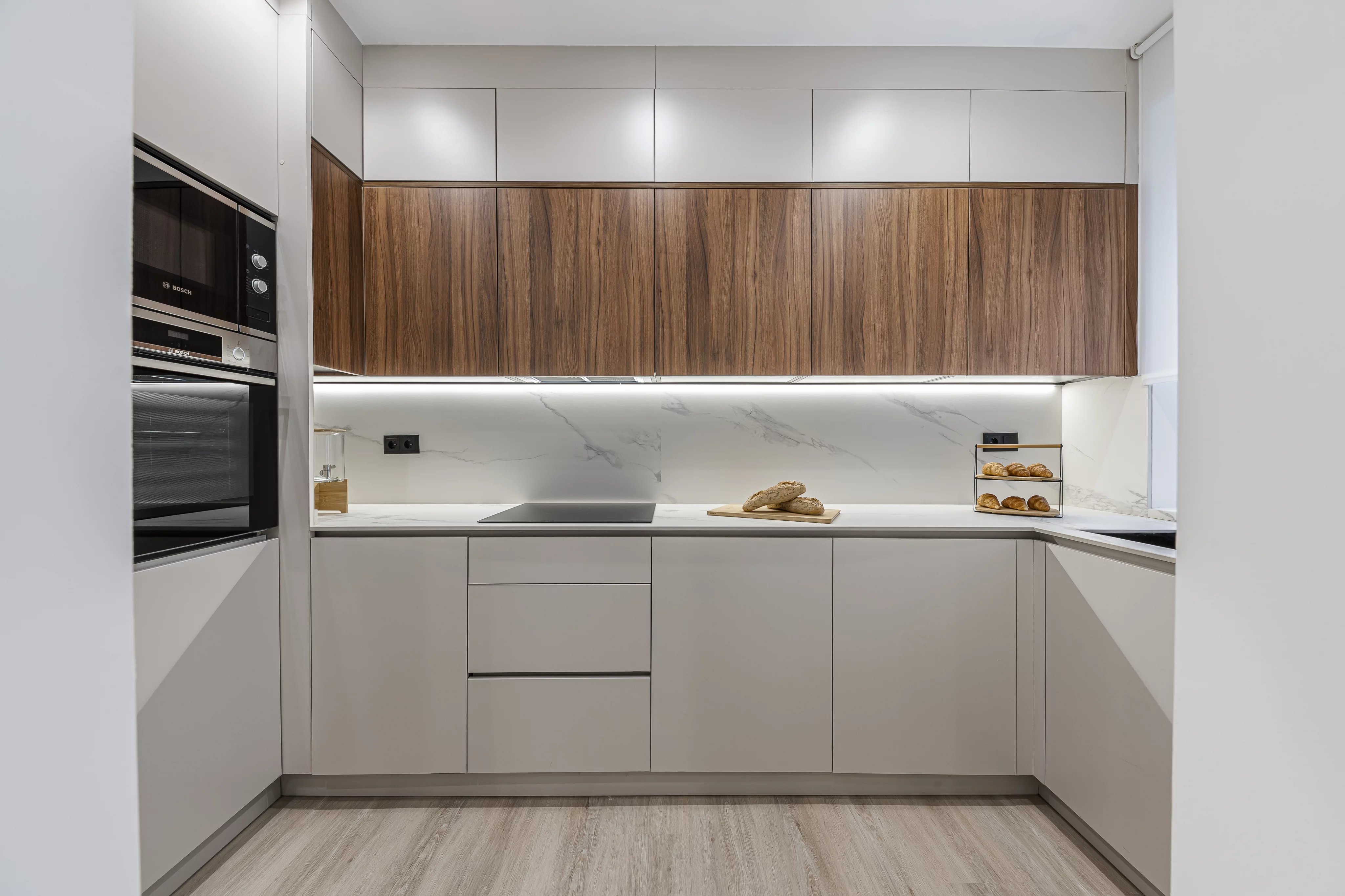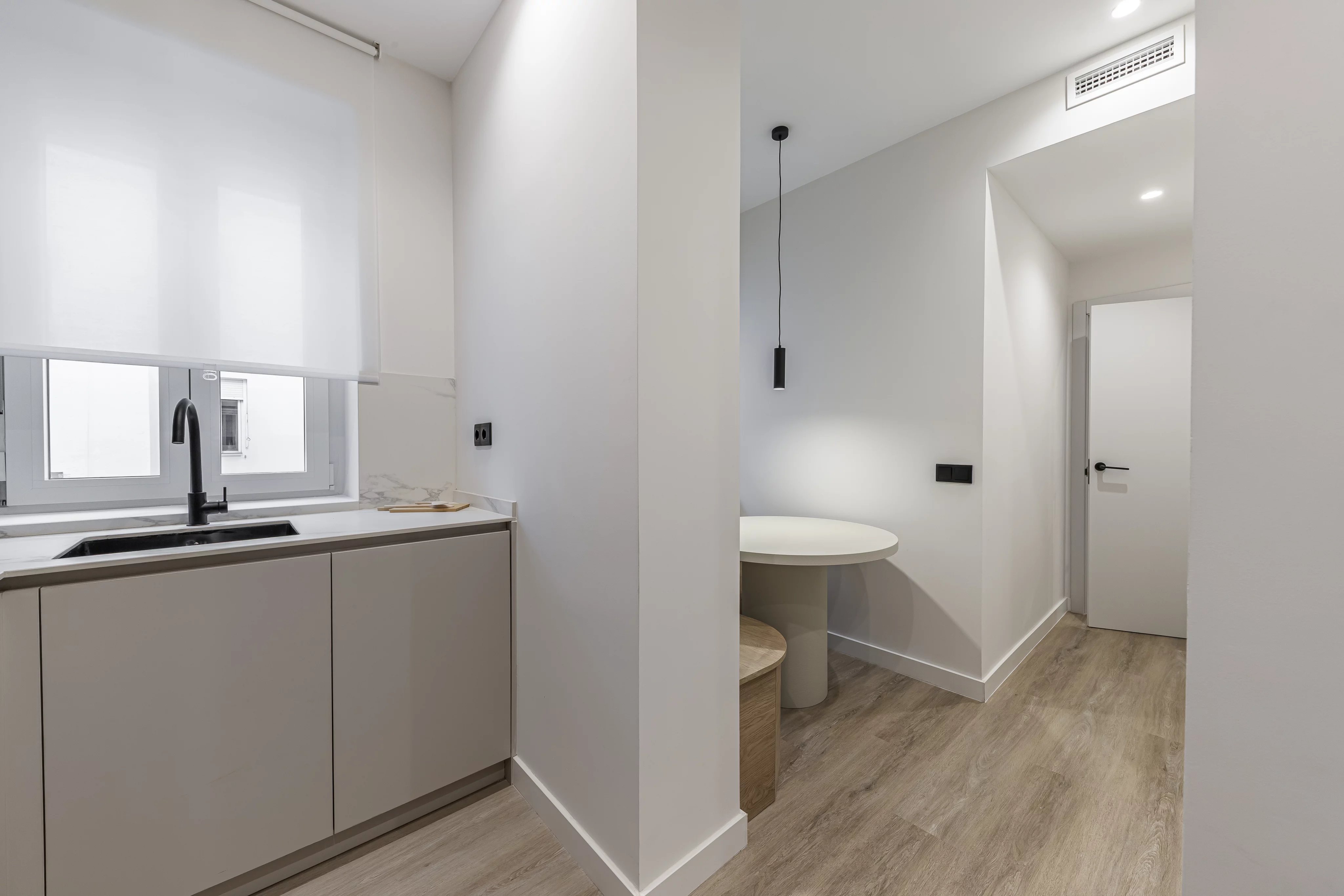 A spacious and functional kitchen designed for everyday use but without renouncing to the design with dining area.