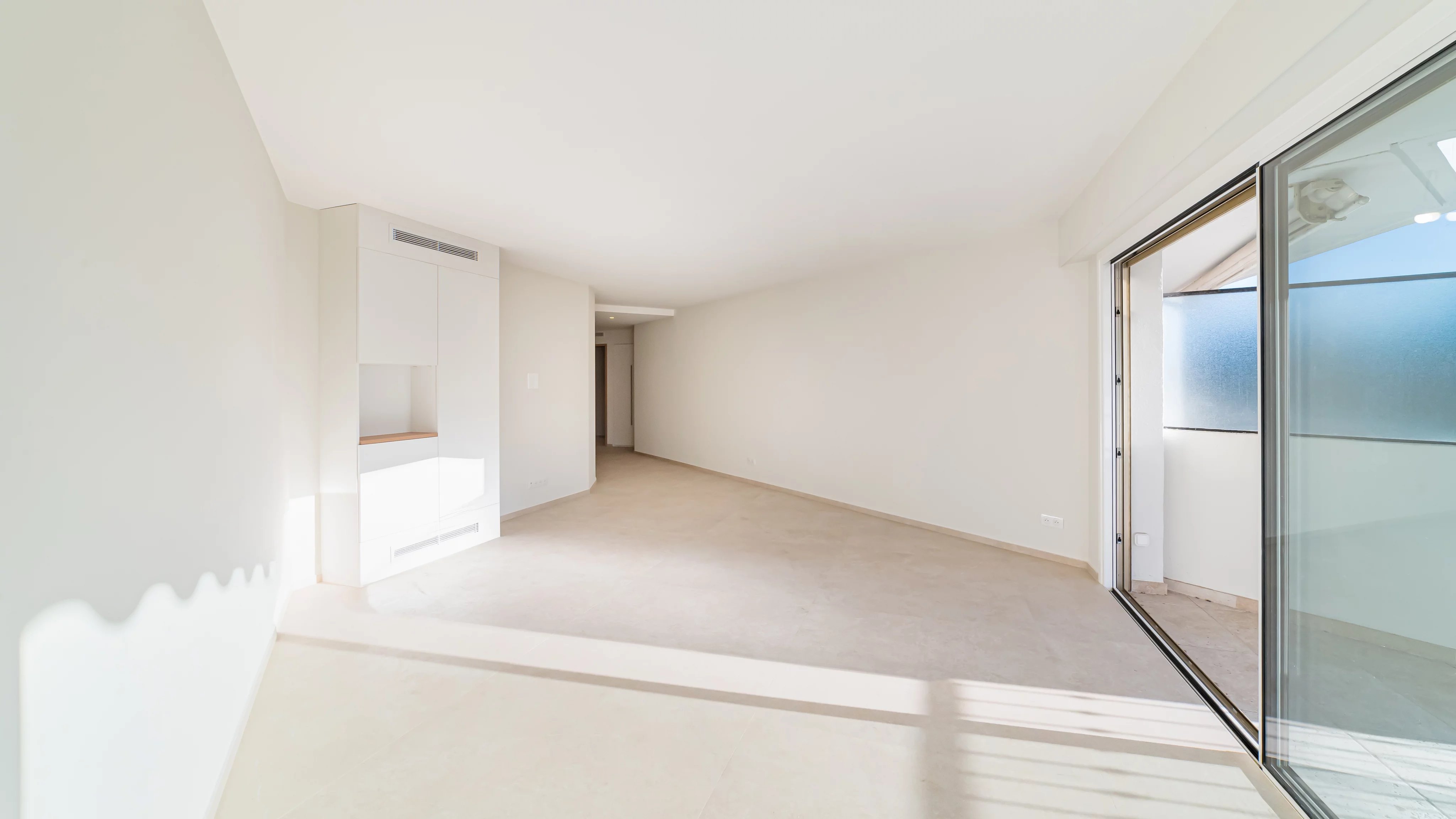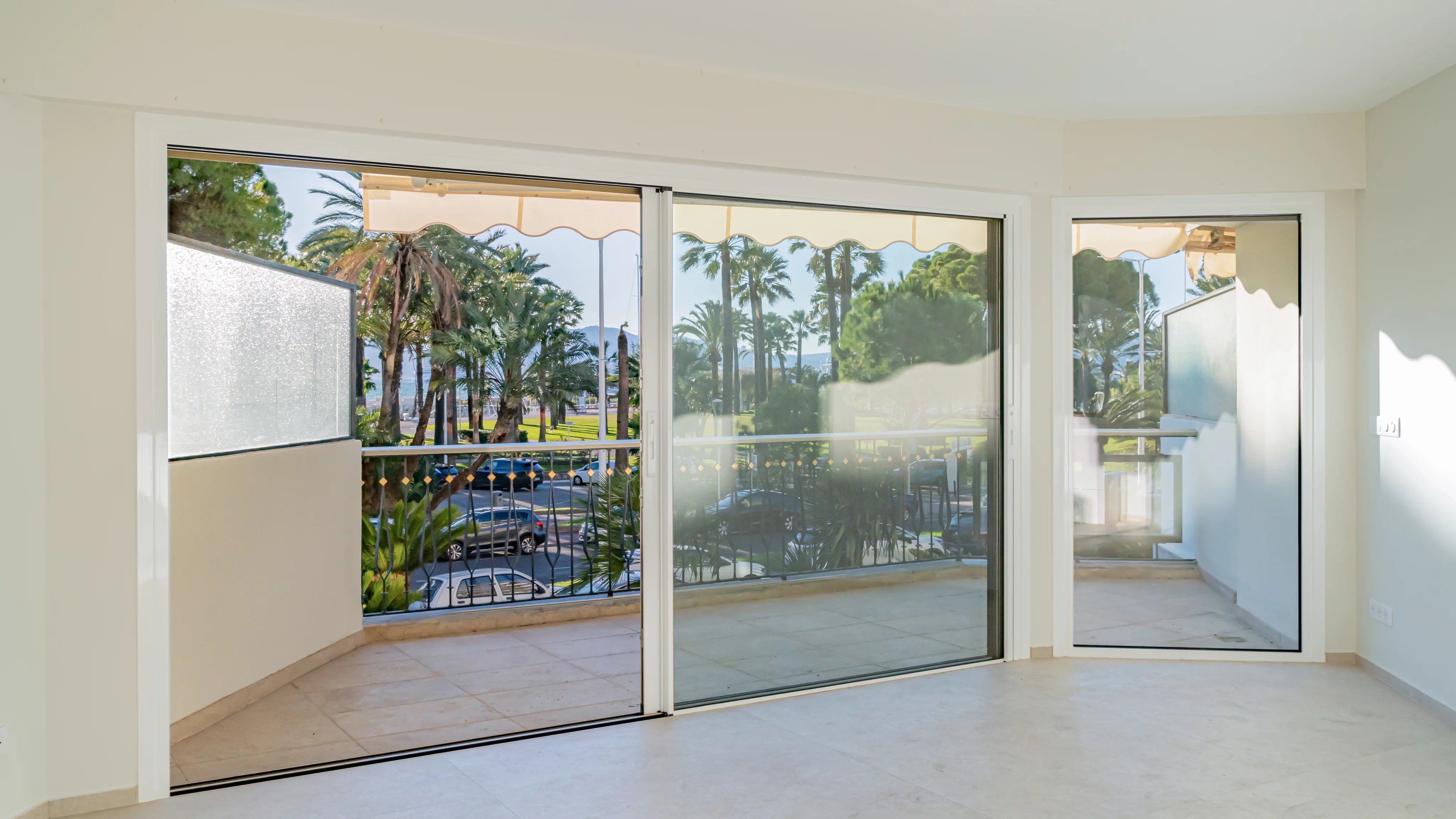 Nestled on the second floor of a luxury residence on the Croisette, this fully renovated three-bedroom apartment offers an unobstructed view with a pleasant glimpse of the sea.