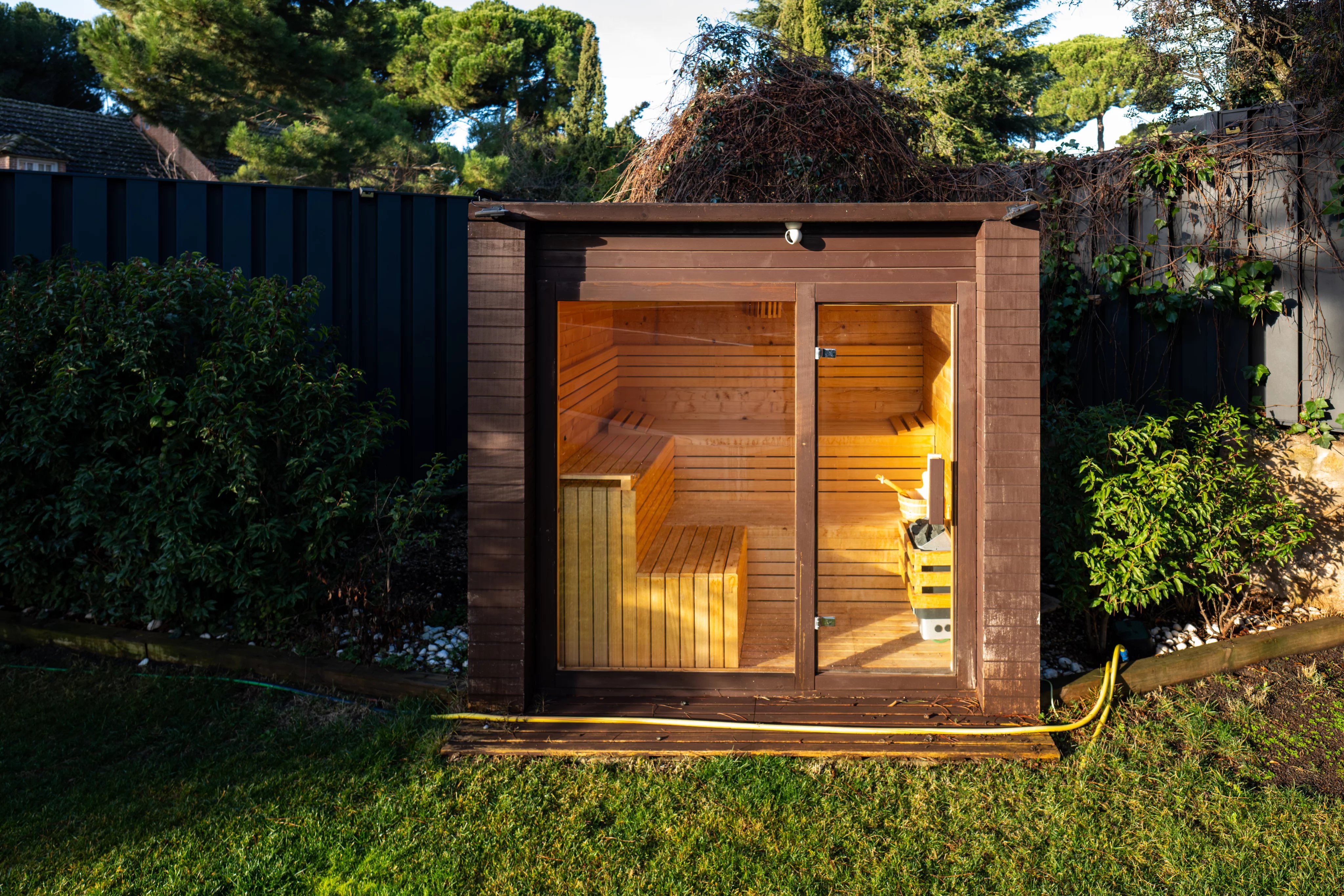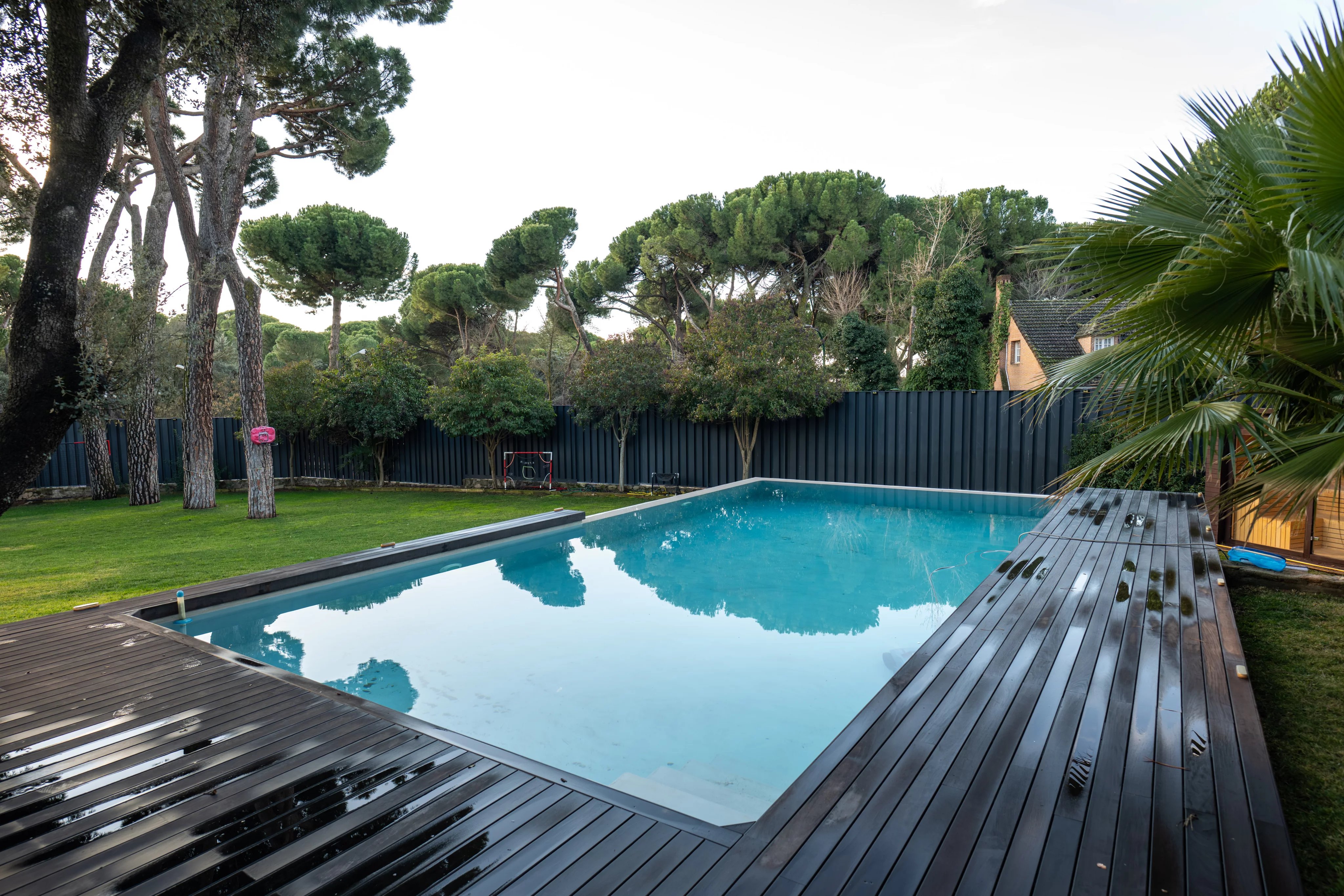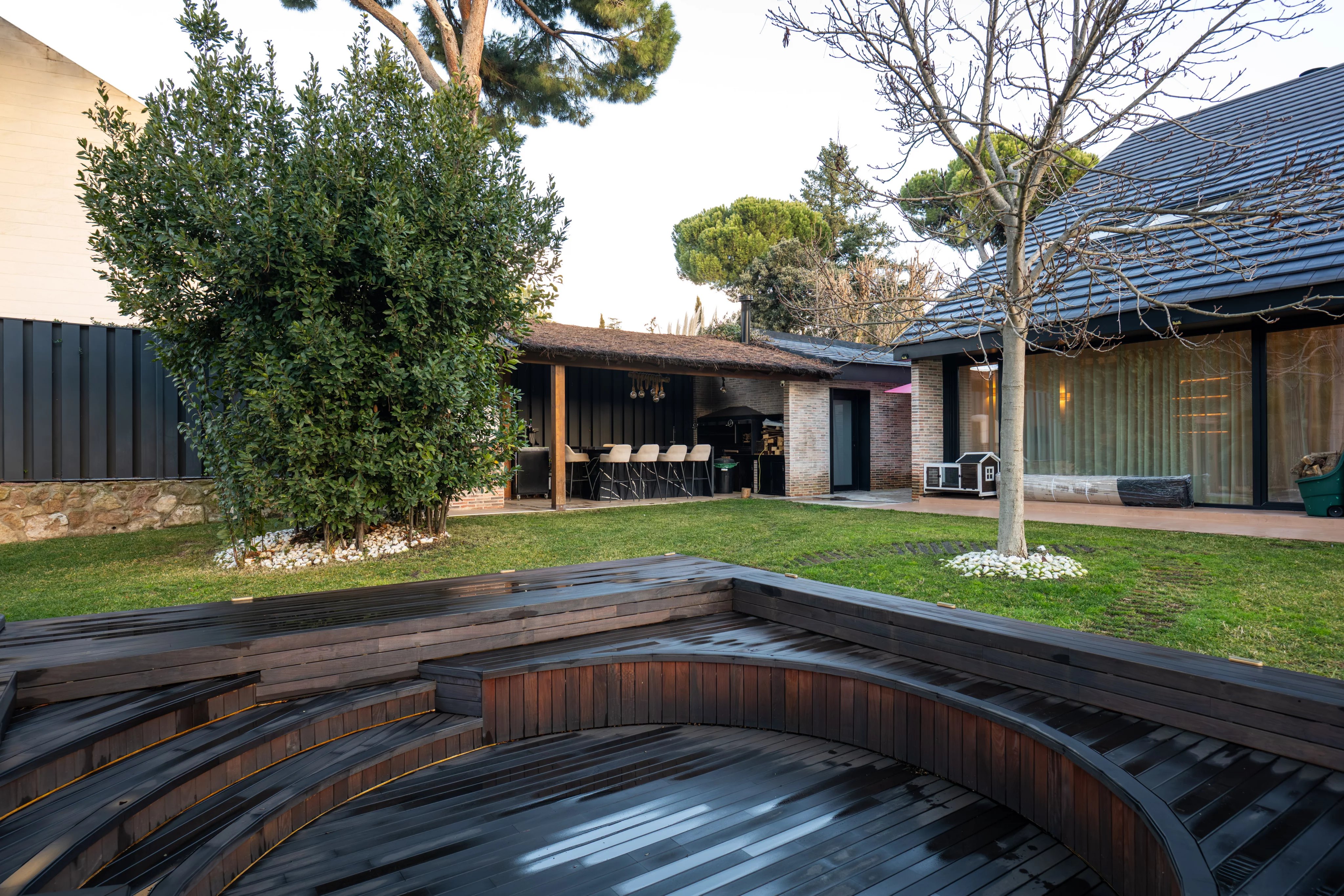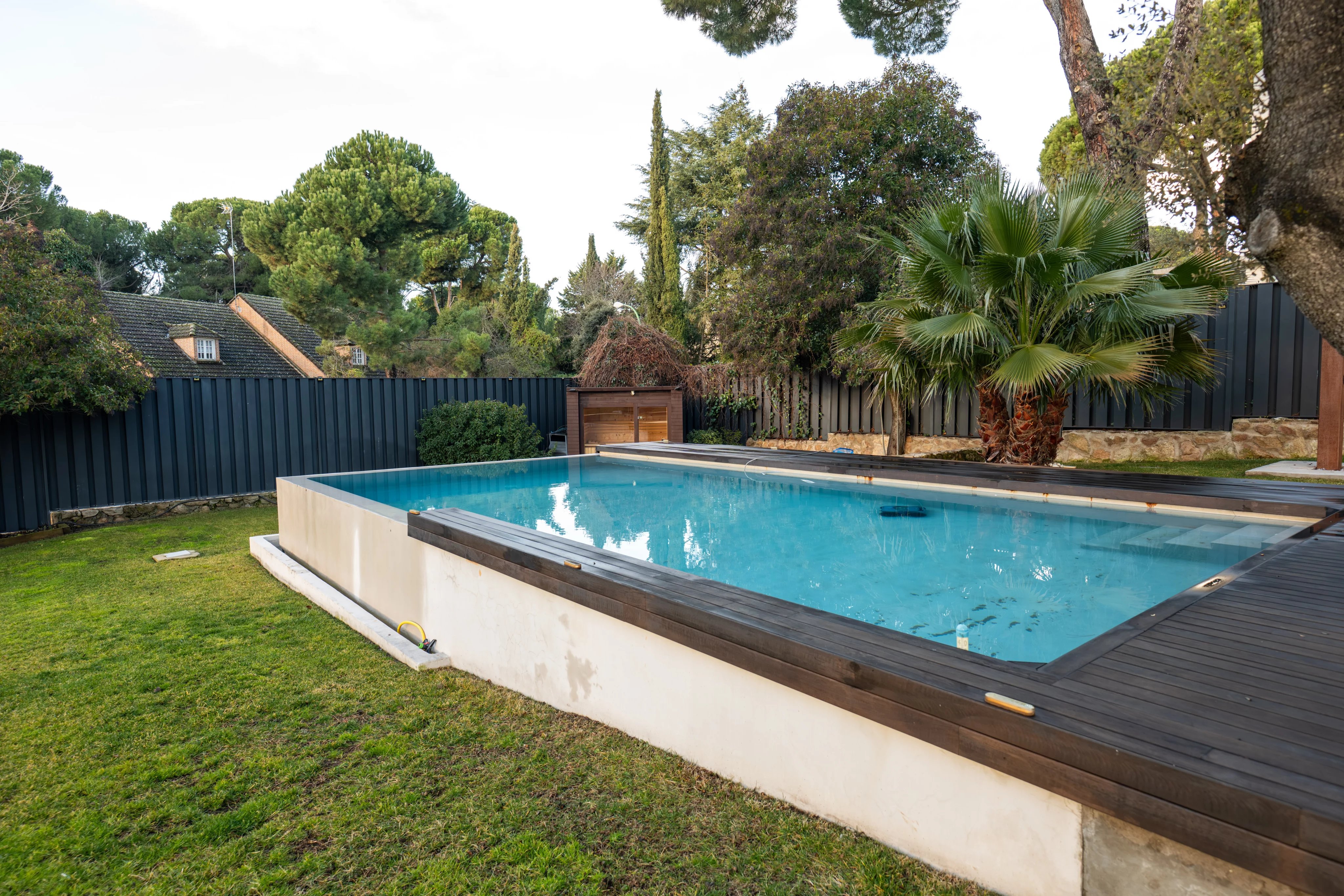 The garden, carefully designed, is an authentic private oasis. It has a barbecue, wood oven, a large outdoor table ideal for enjoying the summer months, outdoor pool with jacuzzi and a wooden house with sauna, creating a unique space for relaxation, leisure and wellness. Its centenary pine trees also provide the beauty of the natural environment, just 15 minutes from the center of the capital of Spain.