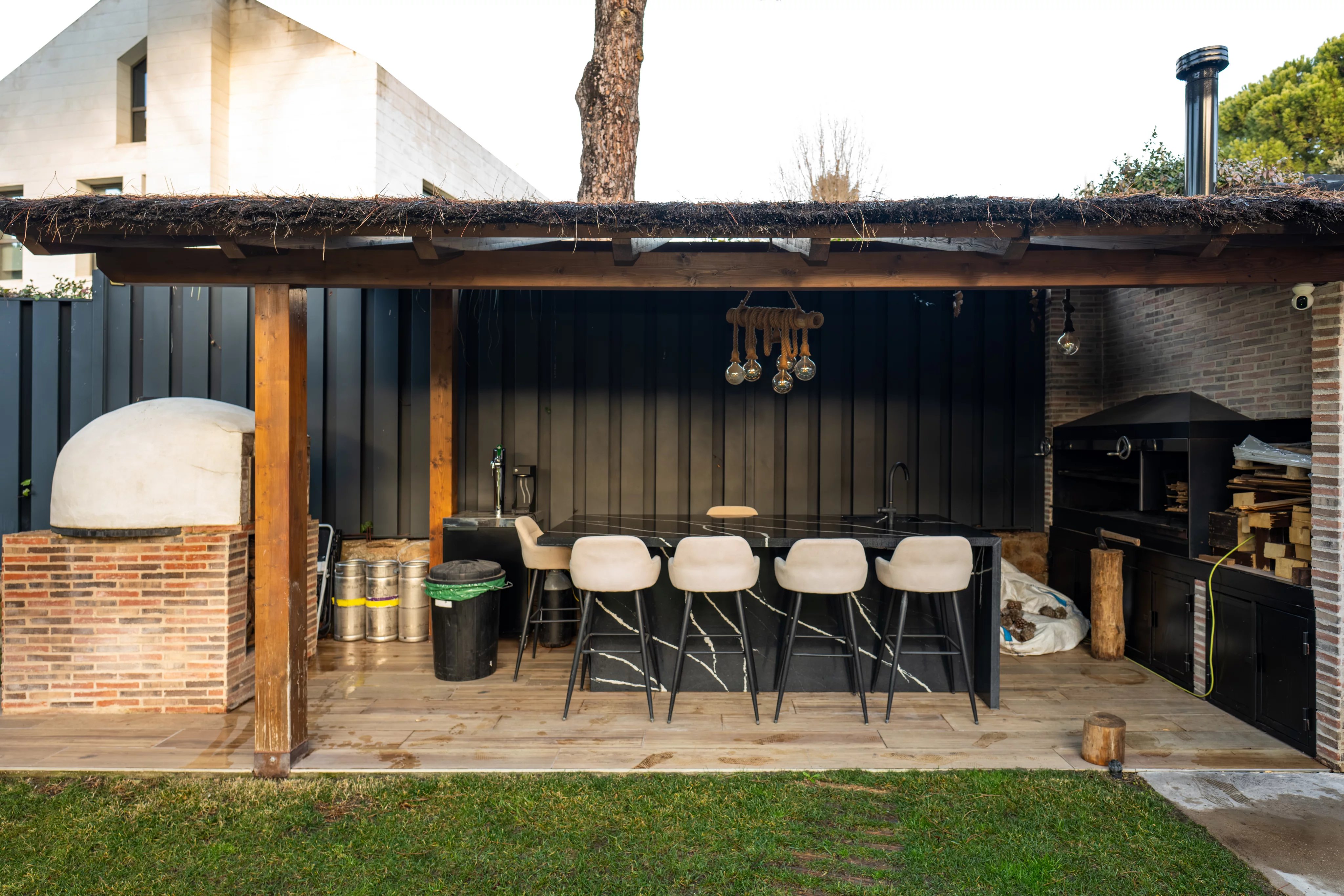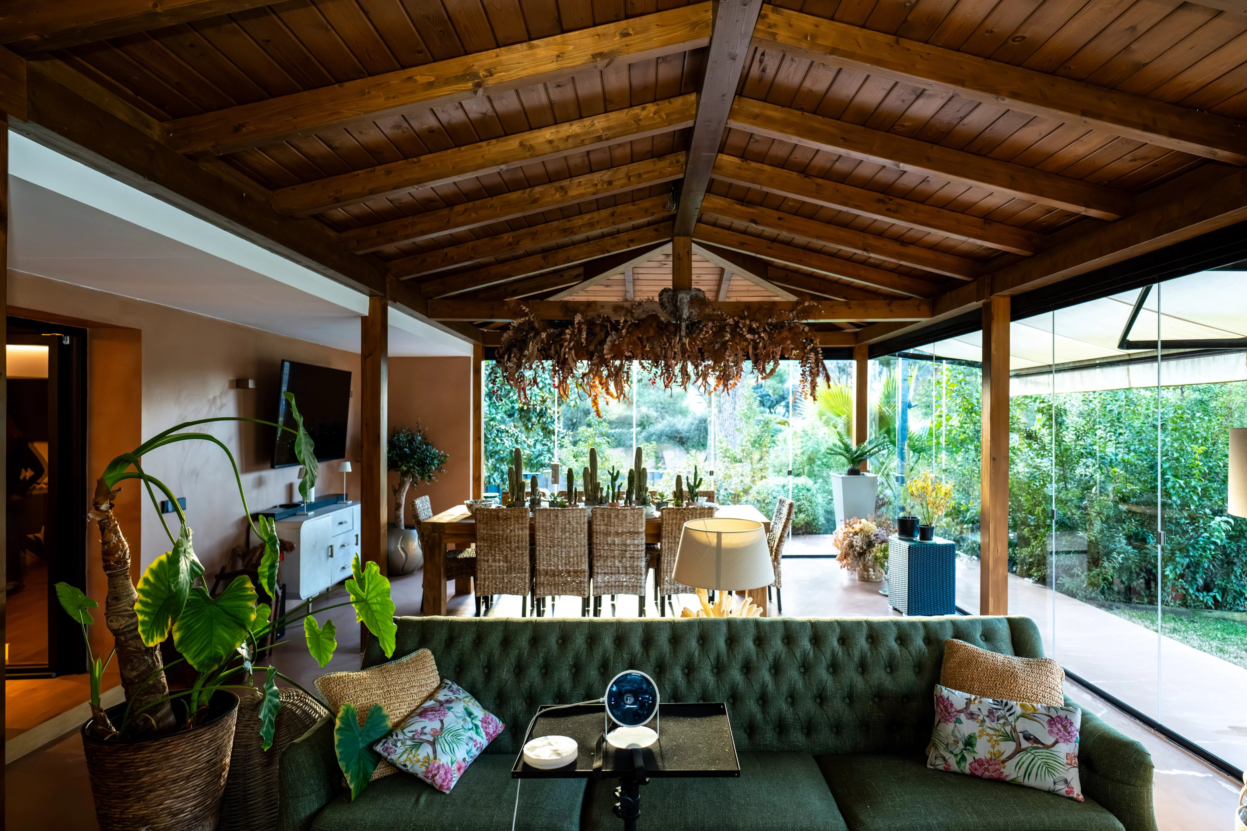 From the kitchen there is access to a spectacular closed and air-conditioned hot/cold area, perfectly conditioned for use throughout the year, with a large and versatile space that can accommodate all kinds of meetings and celebrations.