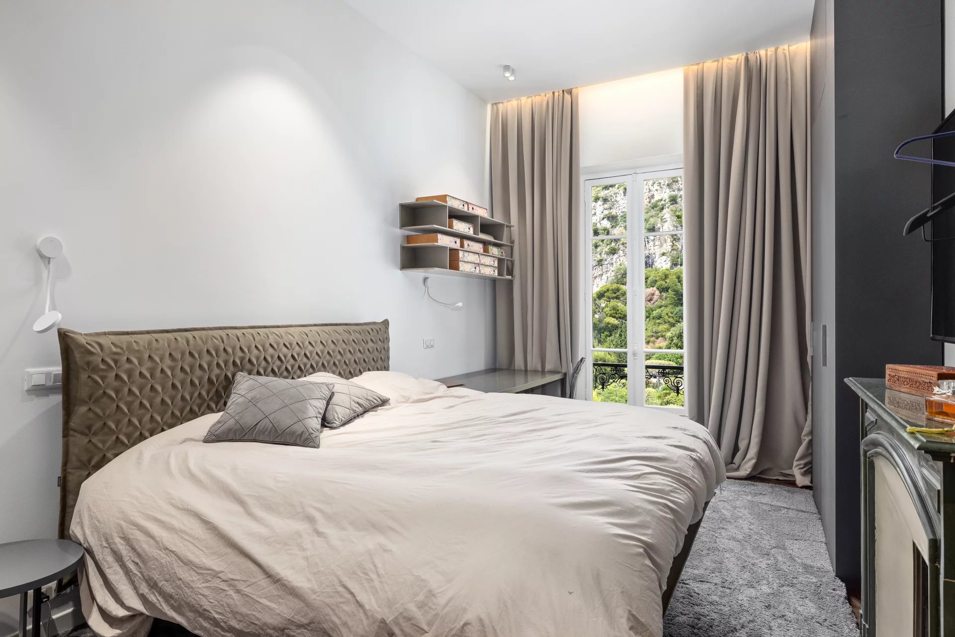 Located in the splendid 19th-century residence ‘EDEN RESIDENCE’, this magnificent two-bedroom apartment offers direct access to Mala Beach and is close to the town centre. Boasting luxurious renovations, it features a large living room with a luxurious fitted and equipped open-plan kitchen. The master bedroom has plenty of storage space and a study area.
