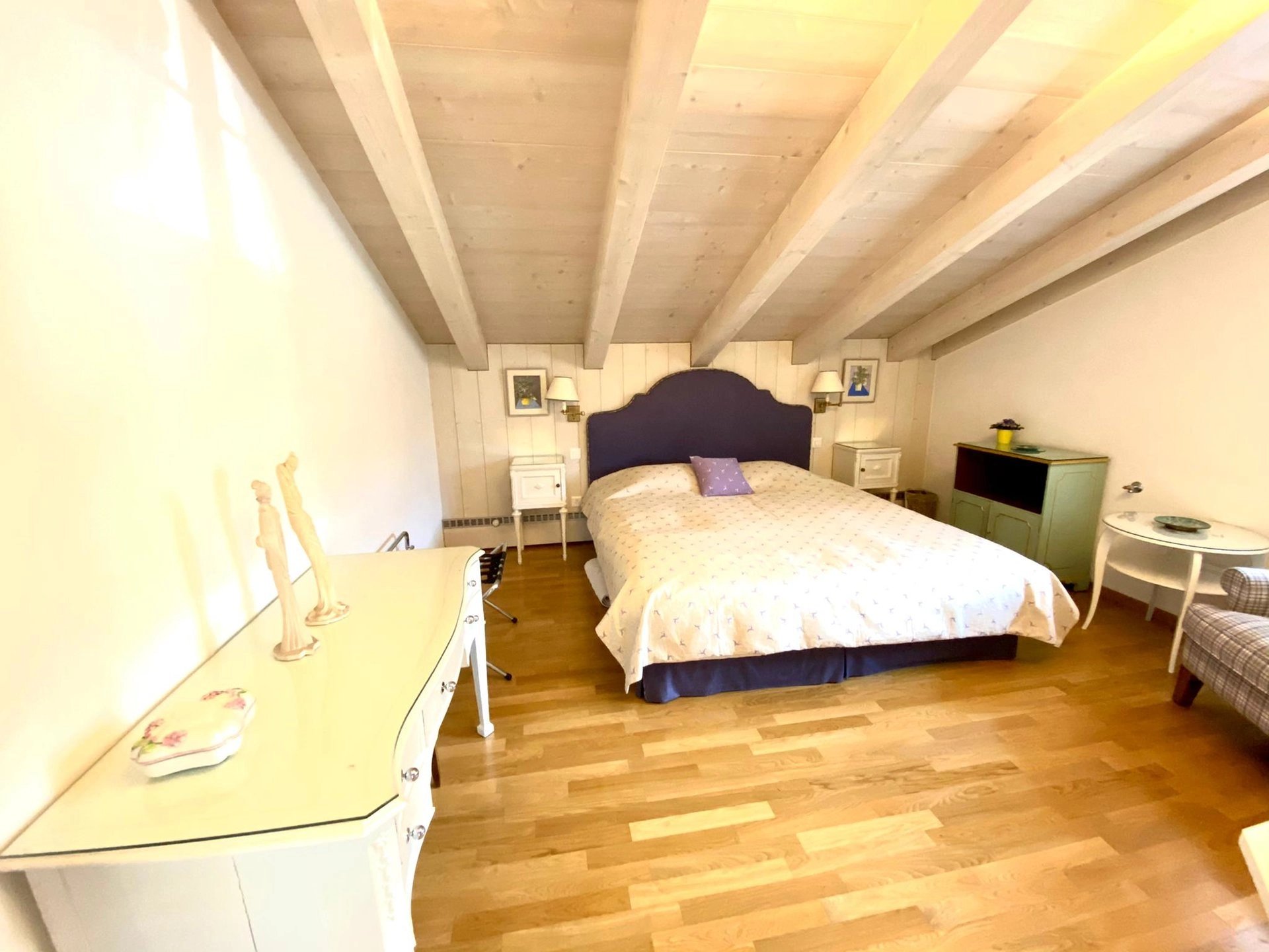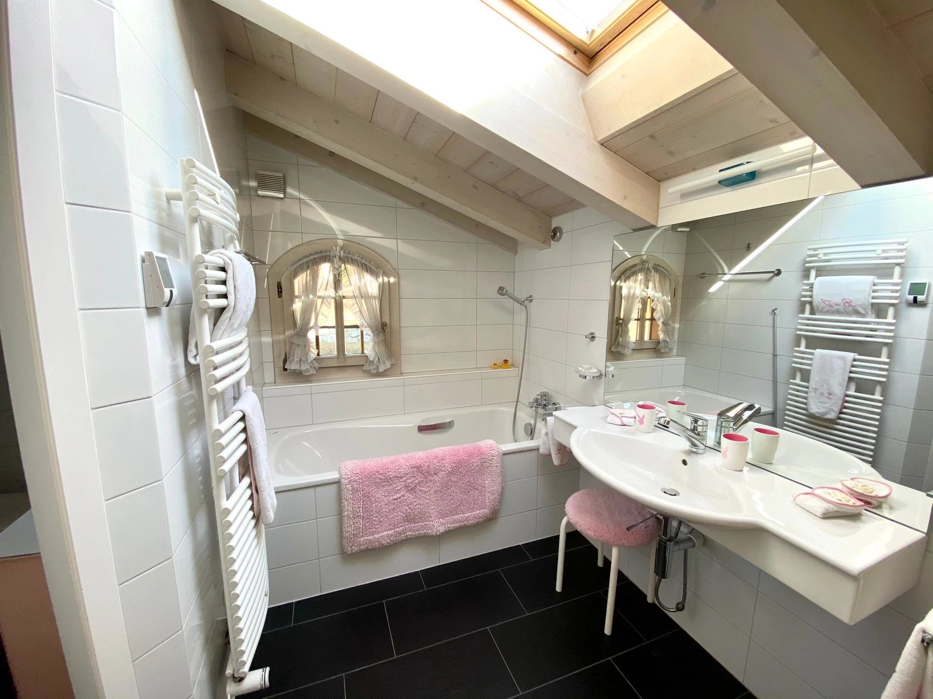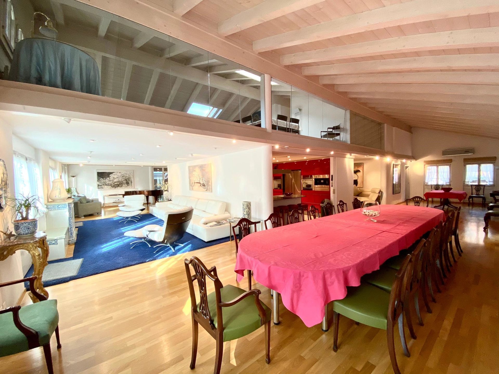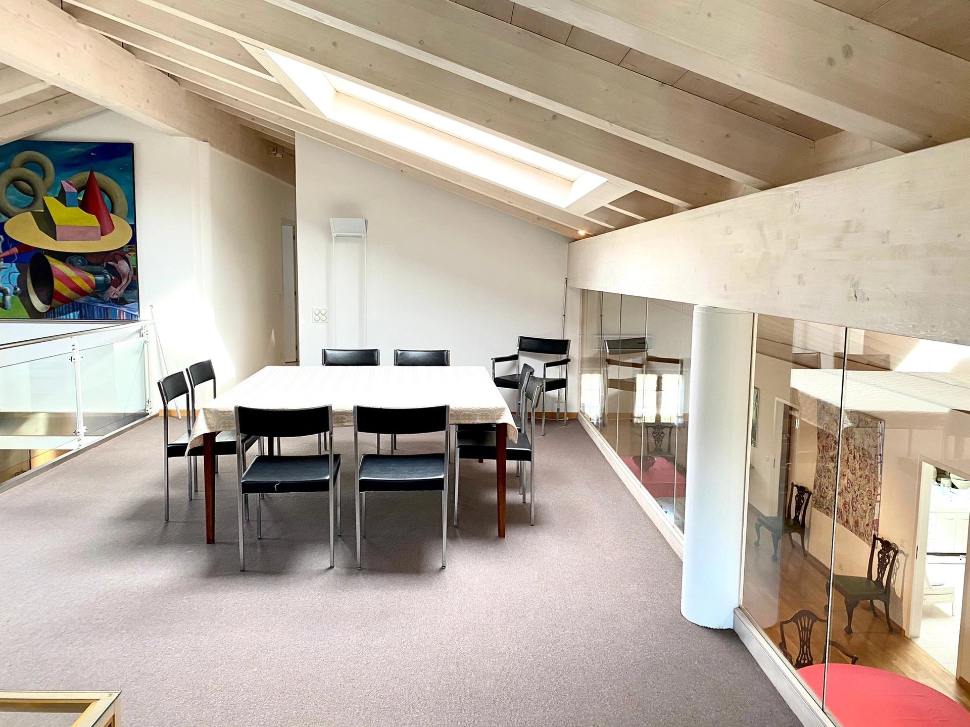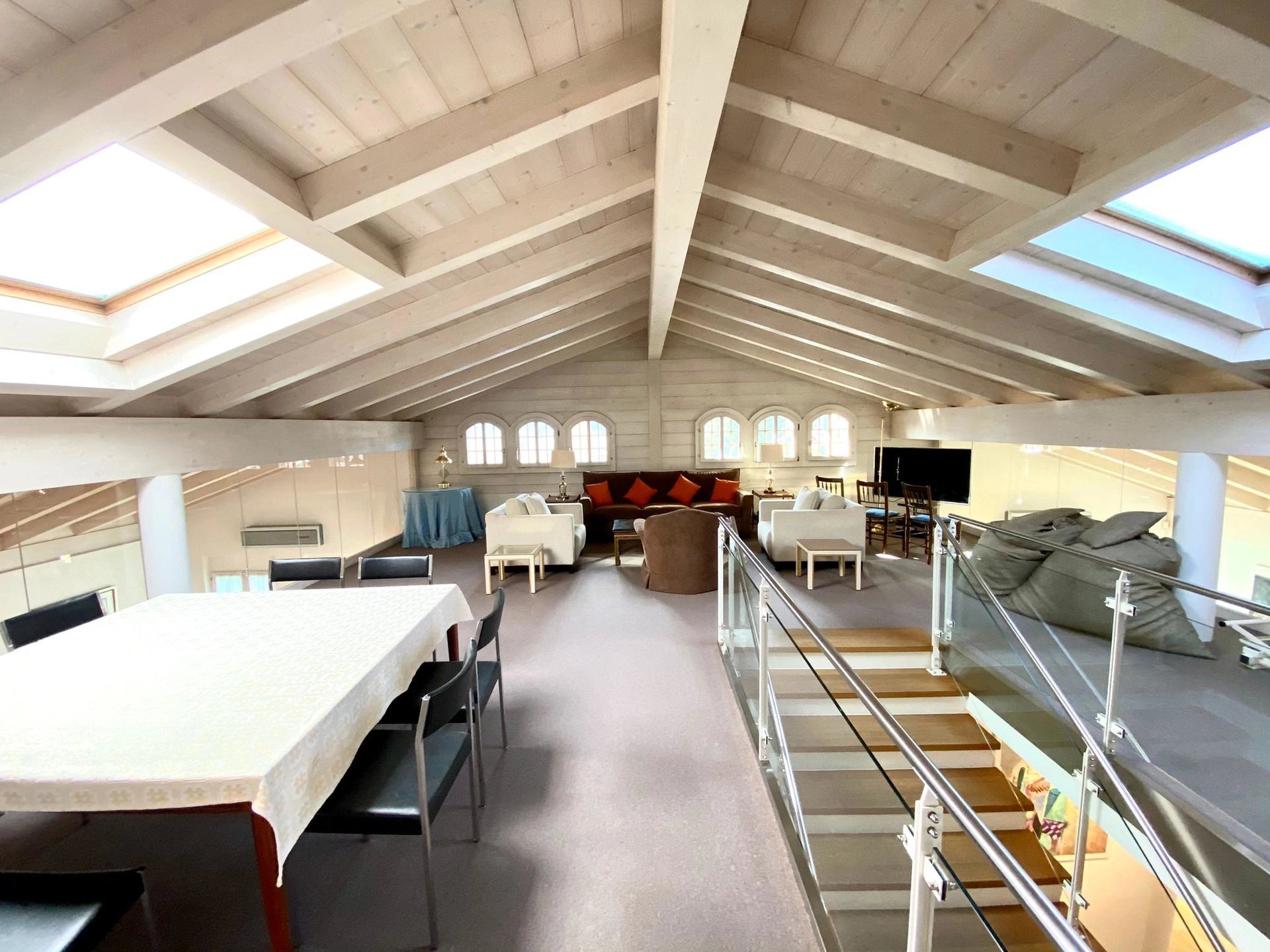 Very beautiful and spacious 7 bedrooms apartment with 5 bathrooms, located in the center of Gstaad, above the Migros supermarket. The apartment has a big entrance hall with 2 living/sitting rooms, a guest toilet, a very big dining room and a open kitchen and 5 bedrooms on one floor. On the second floor (attic) are 2 bedrooms 1 with en-suite bathroom, a big TV/sitting-room and a laundry room. A balcony and 4 parking spaces complete this property.