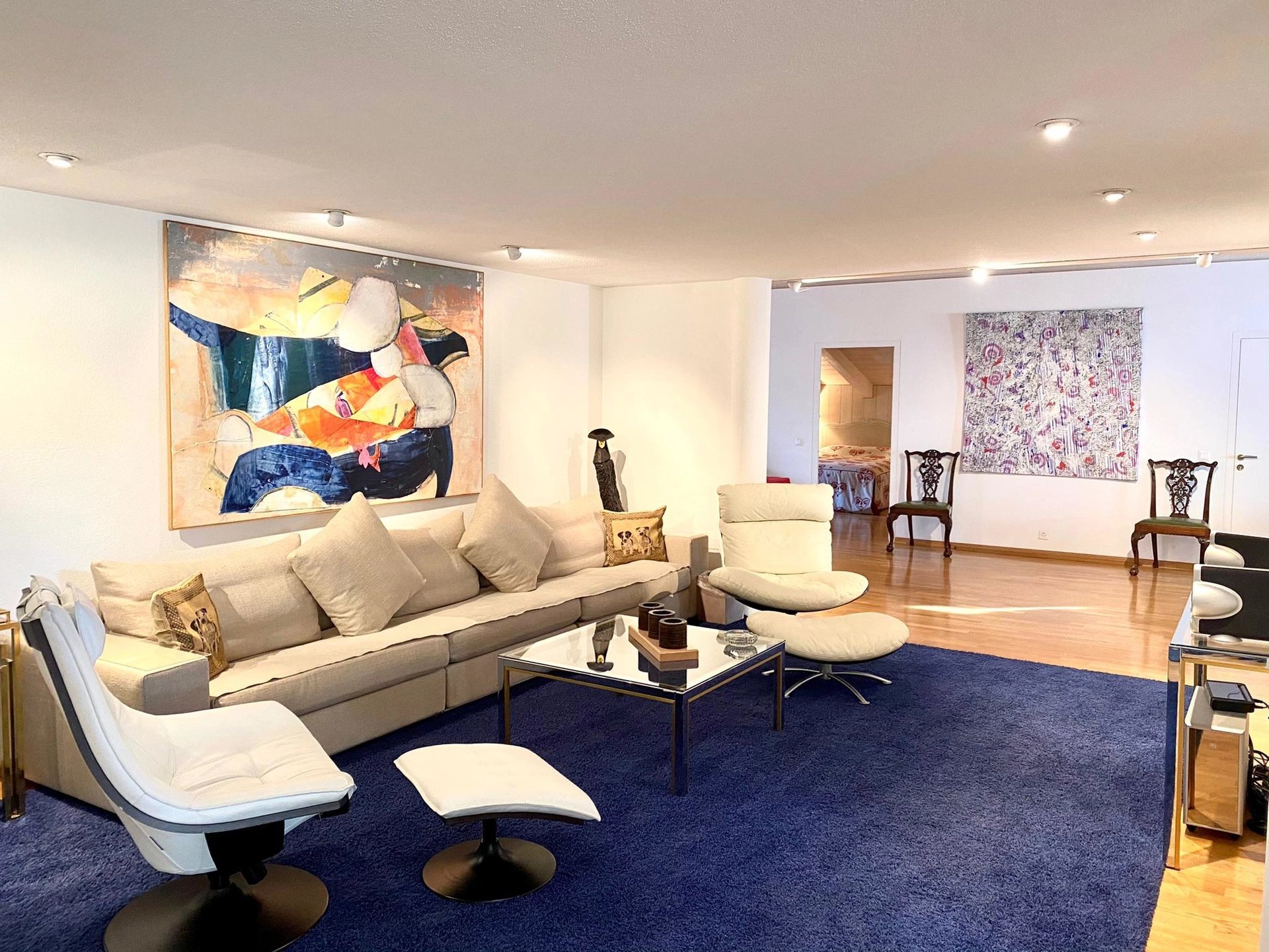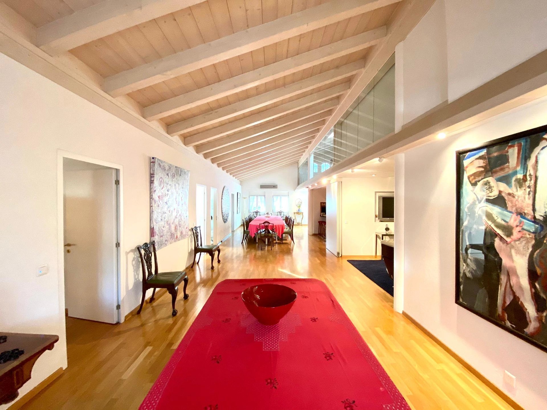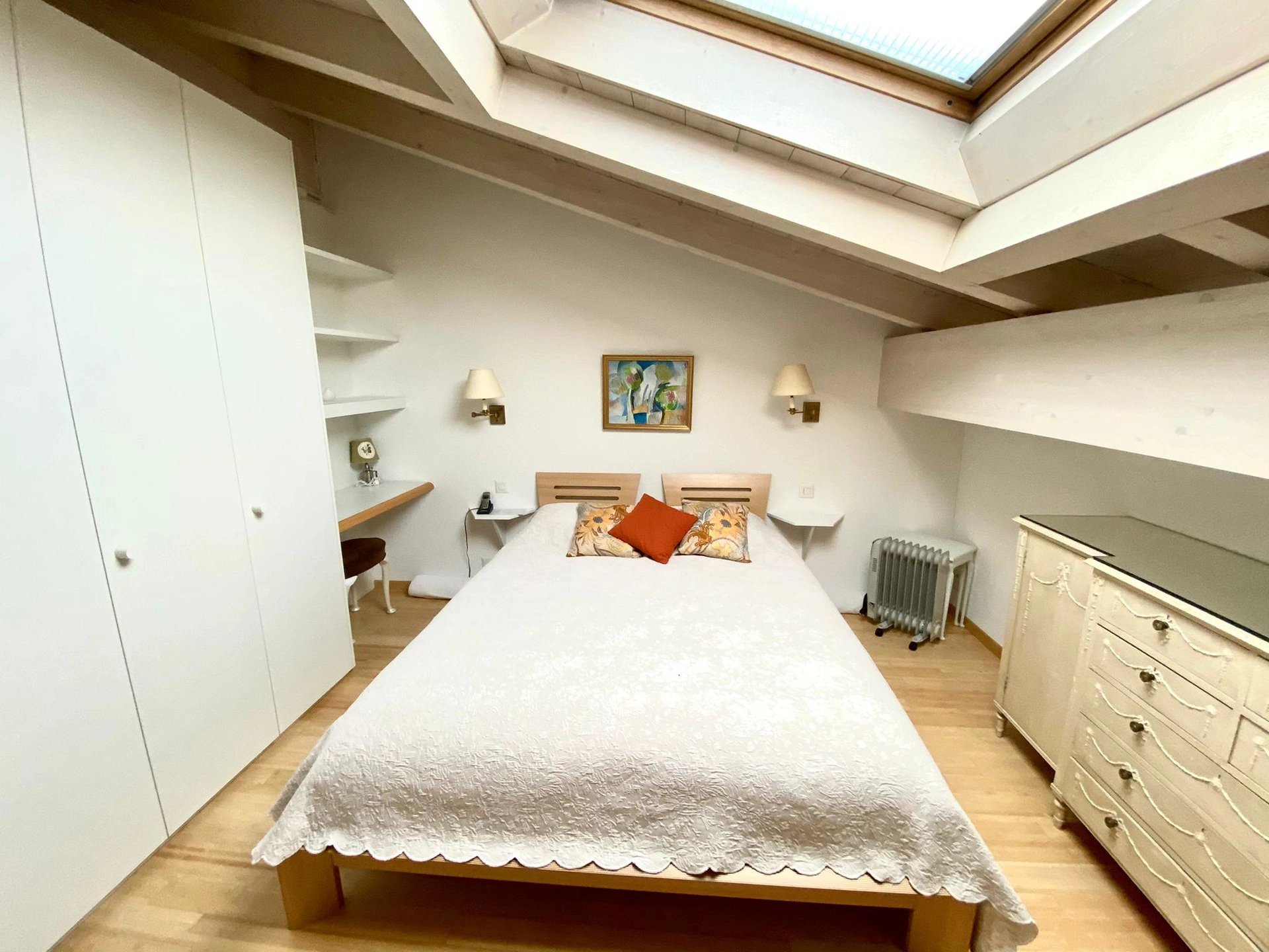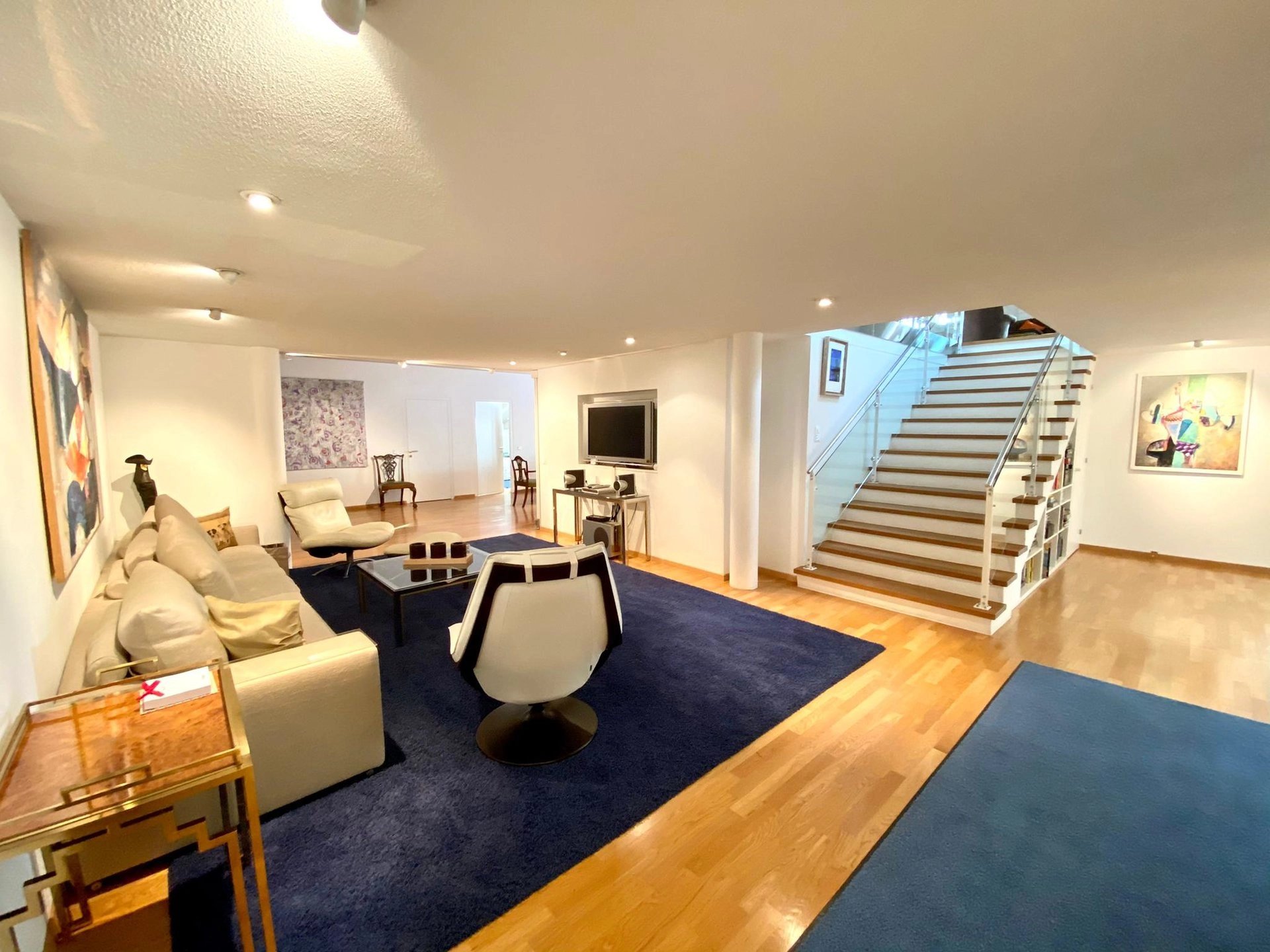 Very beautiful and spacious 7 bedrooms apartment with 5 bathrooms, located in the center of Gstaad, above the Migros supermarket. The apartment has a big entrance hall with 2 living/sitting rooms, a guest toilet, a very big dining room and a open kitchen and 5 bedrooms on one floor. On the second floor (attic) are 2 bedrooms 1 with en-suite bathroom, a big TV/sitting-room and a laundry room. A balcony and 4 parking spaces complete this property.