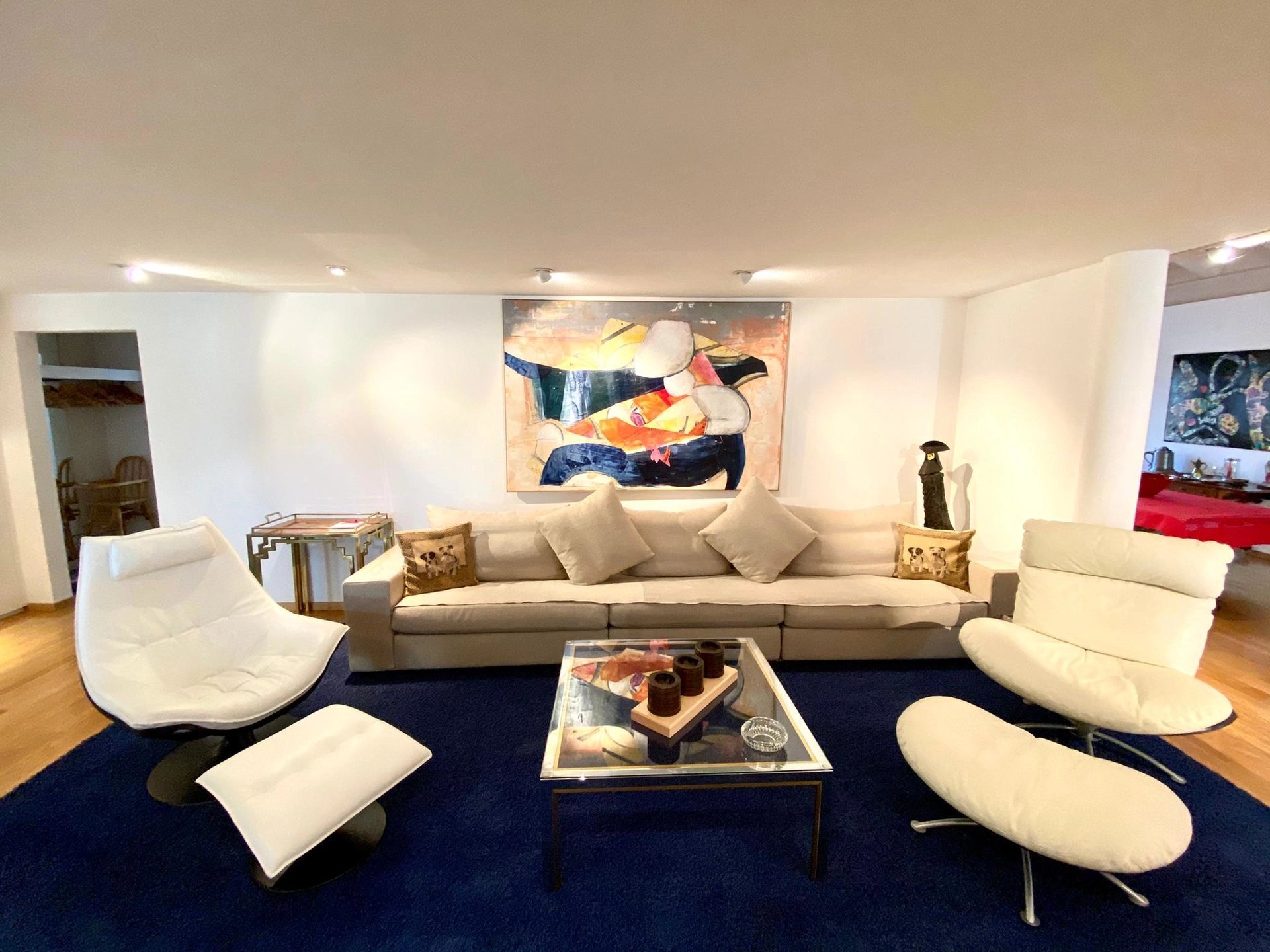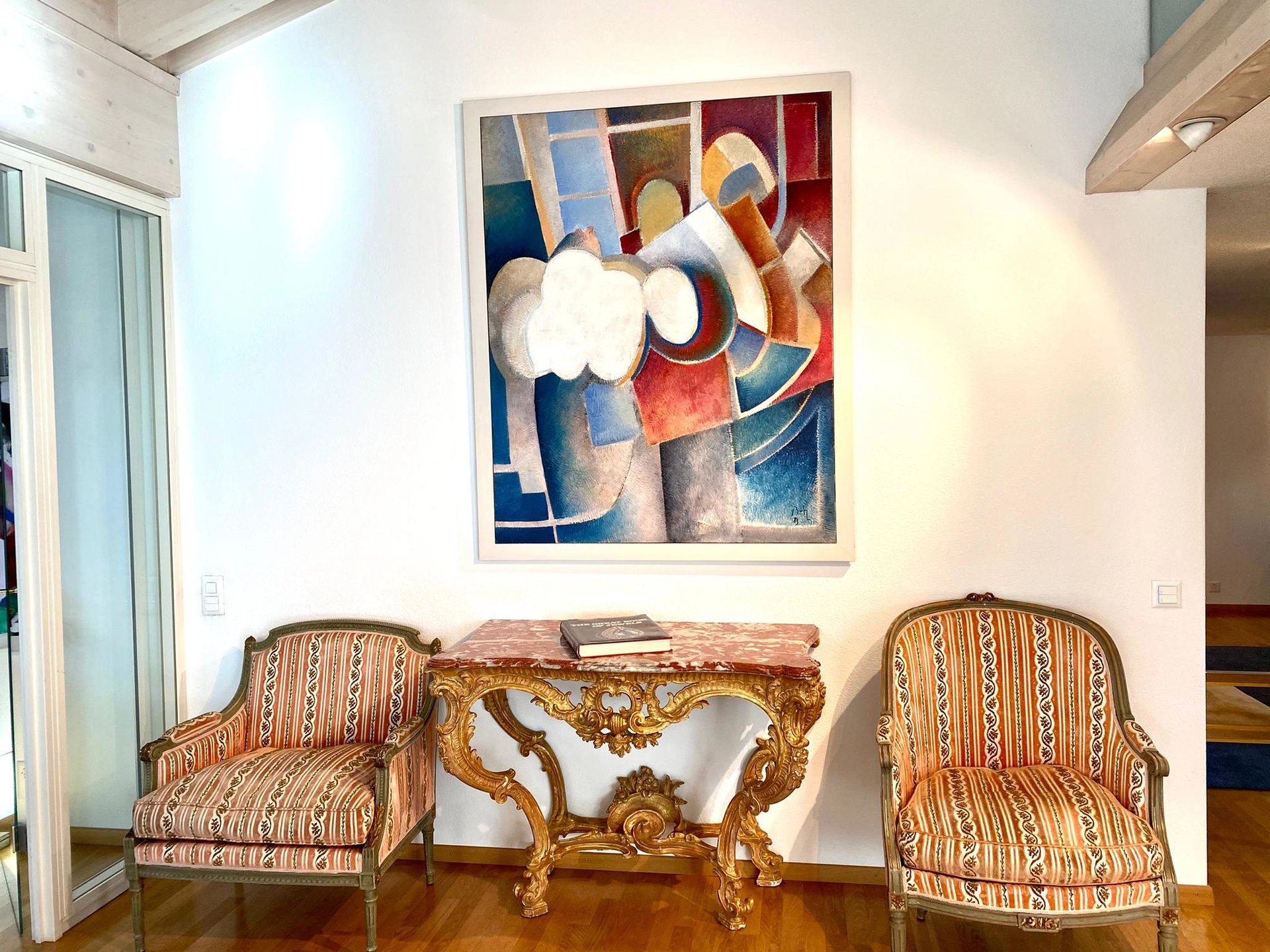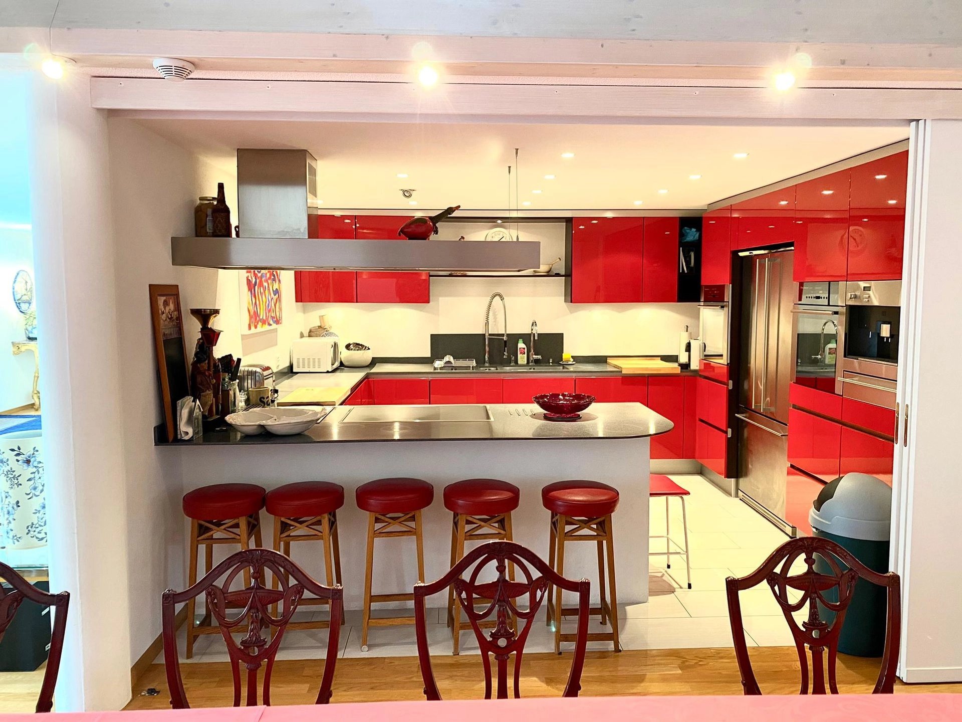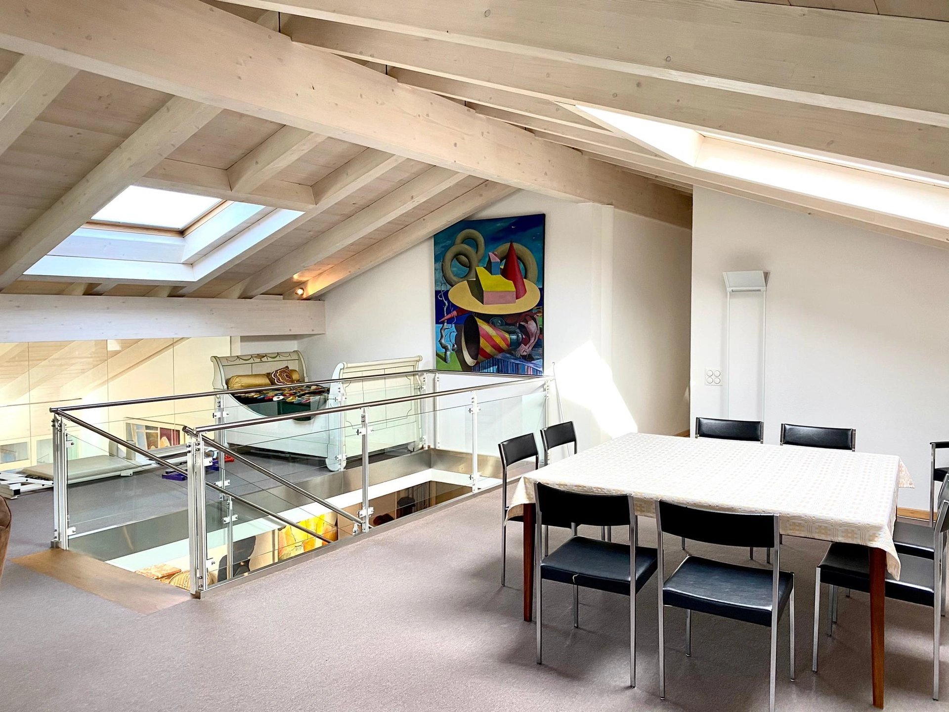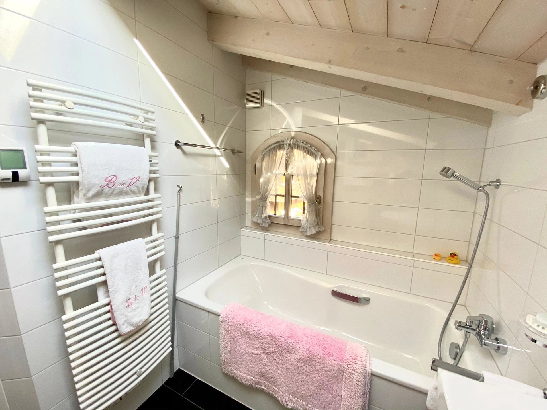 Very beautiful and spacious 7 bedrooms apartment with 5 bathrooms, located in the center of Gstaad, above the Migros supermarket. The apartment has a big entrance hall with 2 living/sitting rooms, a guest toilet, a very big dining room and a open kitchen and 5 bedrooms on one floor. On the second floor (attic) are 2 bedrooms 1 with en-suite bathroom, a big TV/sitting-room and a laundry room. A balcony and 4 parking spaces complete this property.