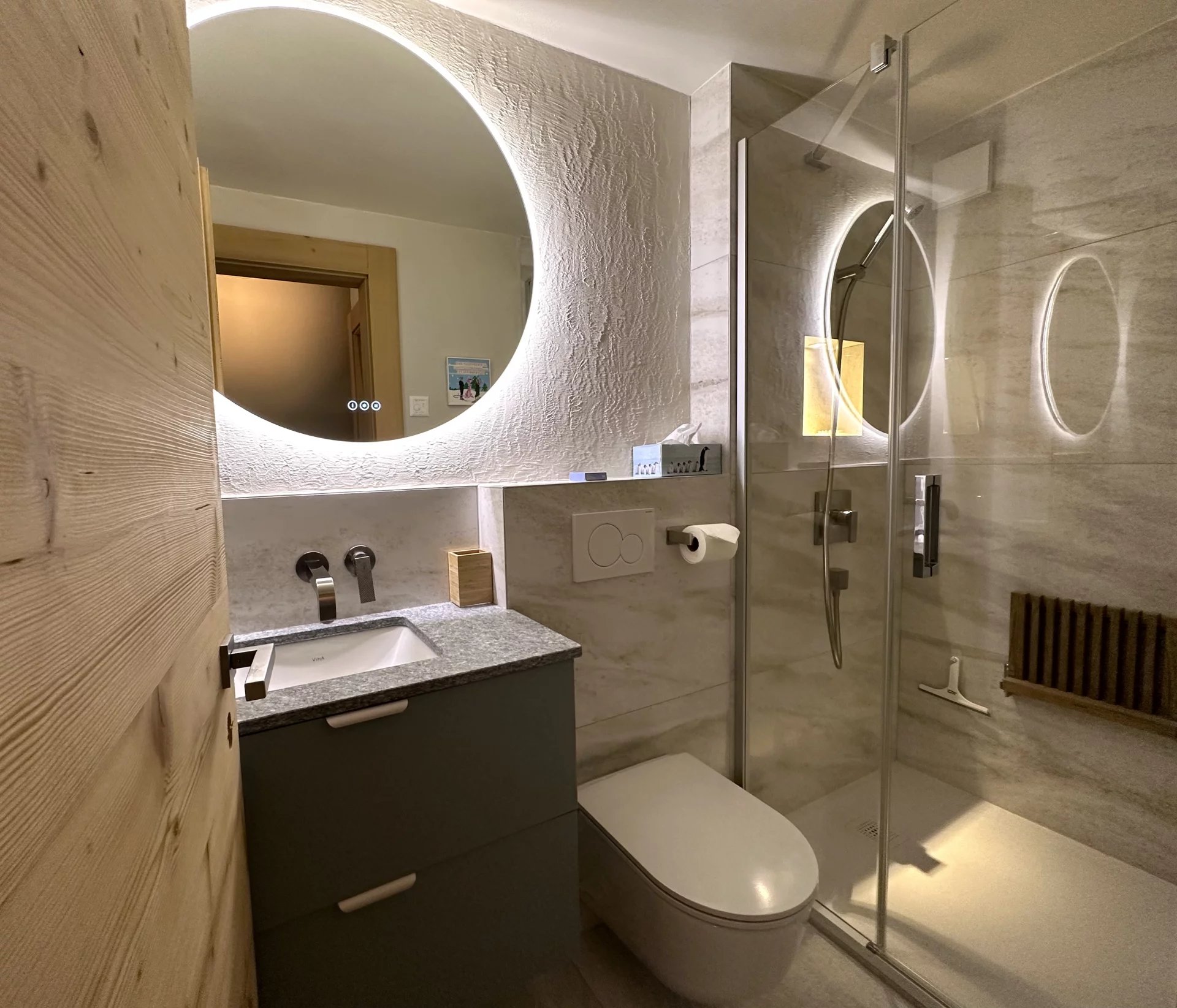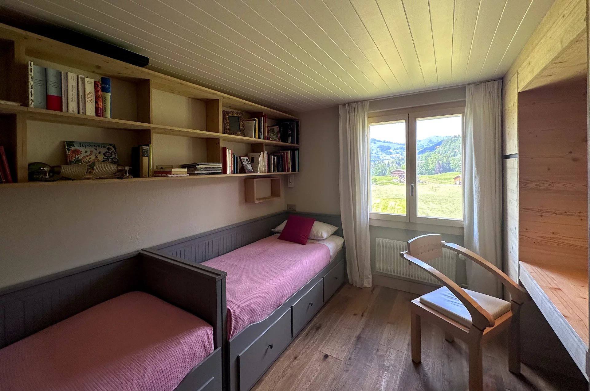Newly renovated apartment in Wispile area with 2 bedrooms, kitchen, 2 bathrooms, large living room with open fireplace, terrace with great nature view, garage, outdoorparking. Walking distance 10 min to downtown of Gstaad