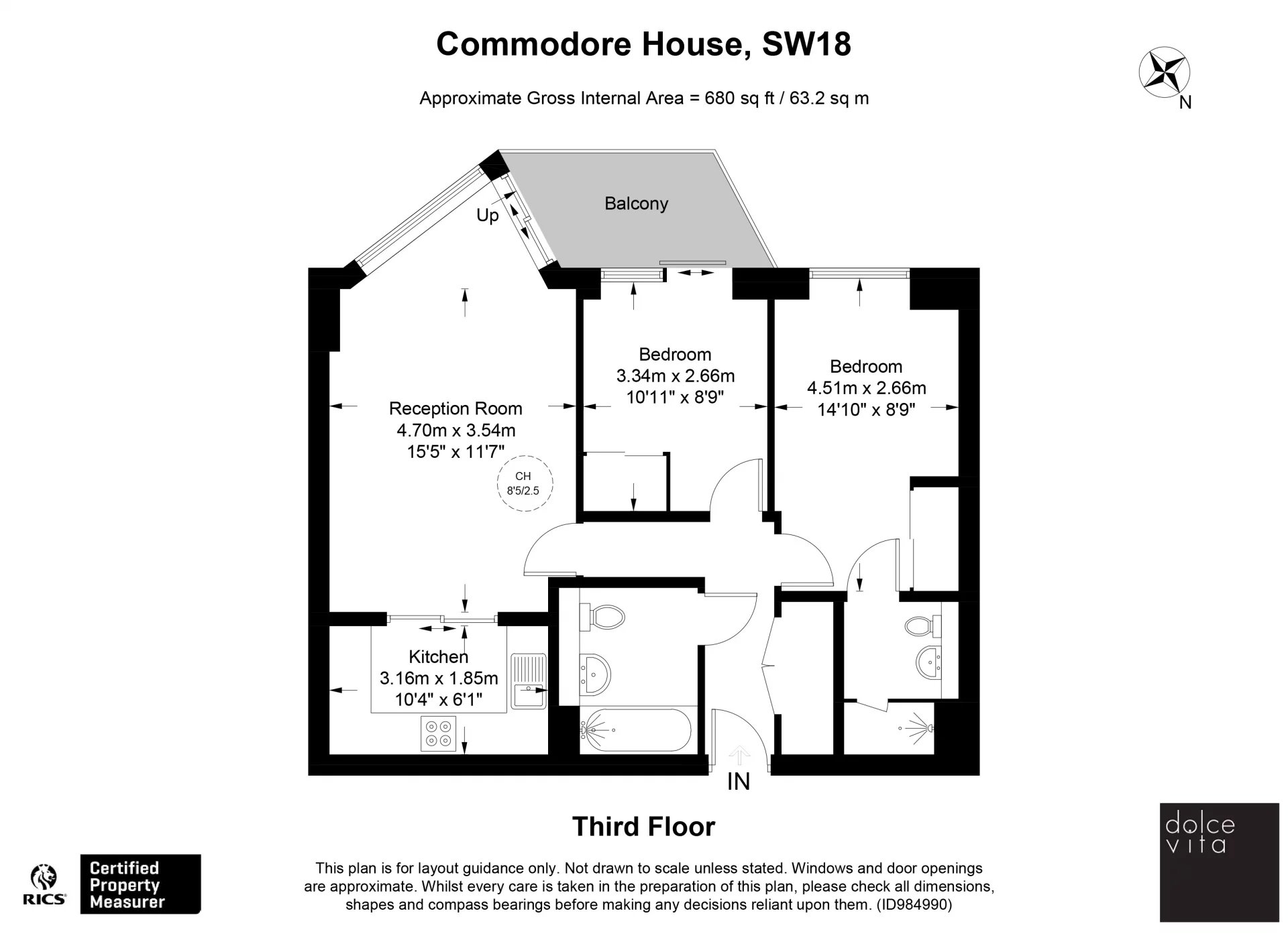 To Let | London | Apartment | 2 Bedrooms | 2 Bathrooms | 680 sq ft | Ref: 86541151