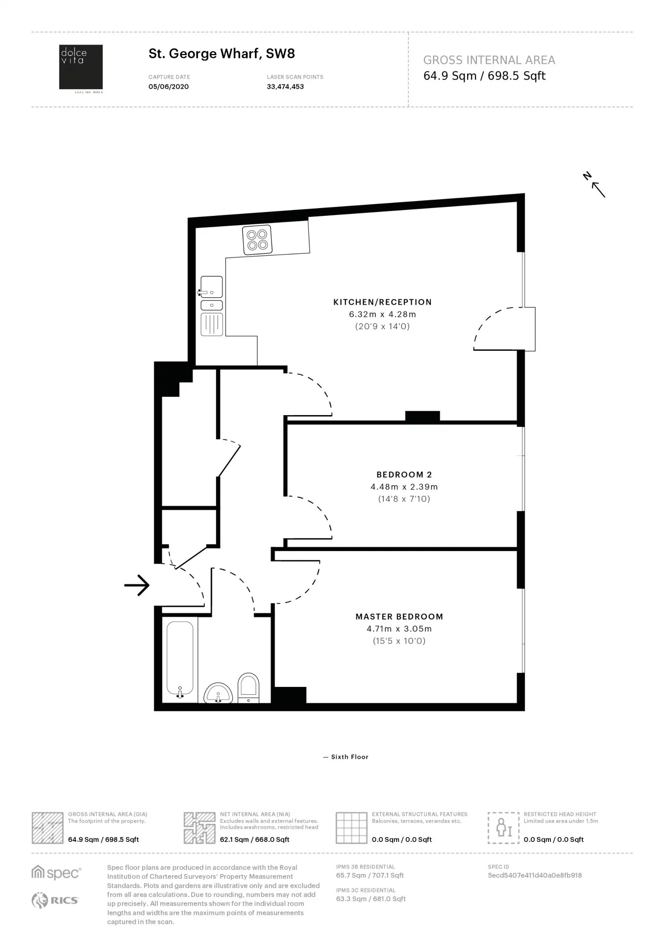 To Let | St George Wharf | Flat | 2 Bedrooms | 699 sq ft | Ref : 86600135