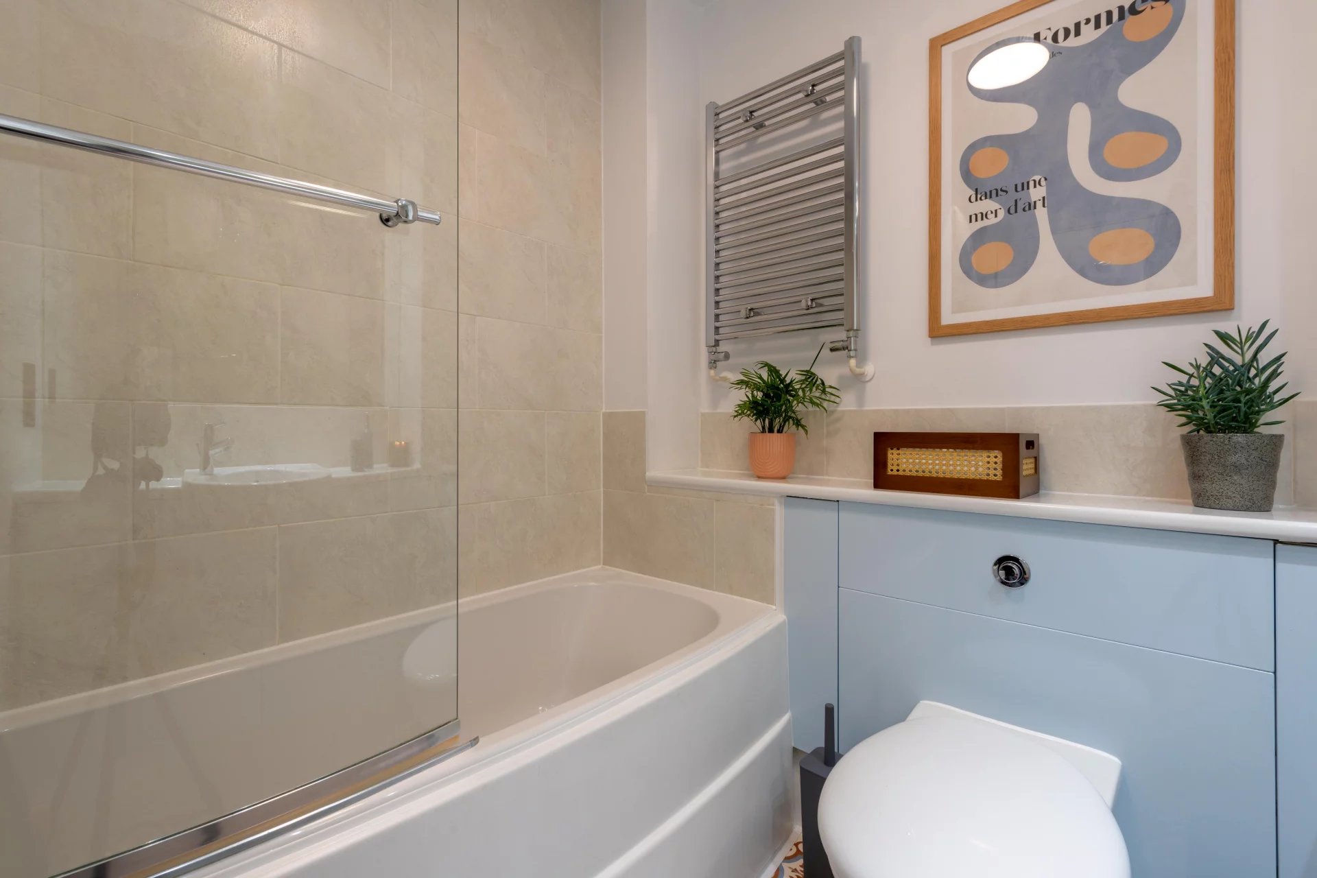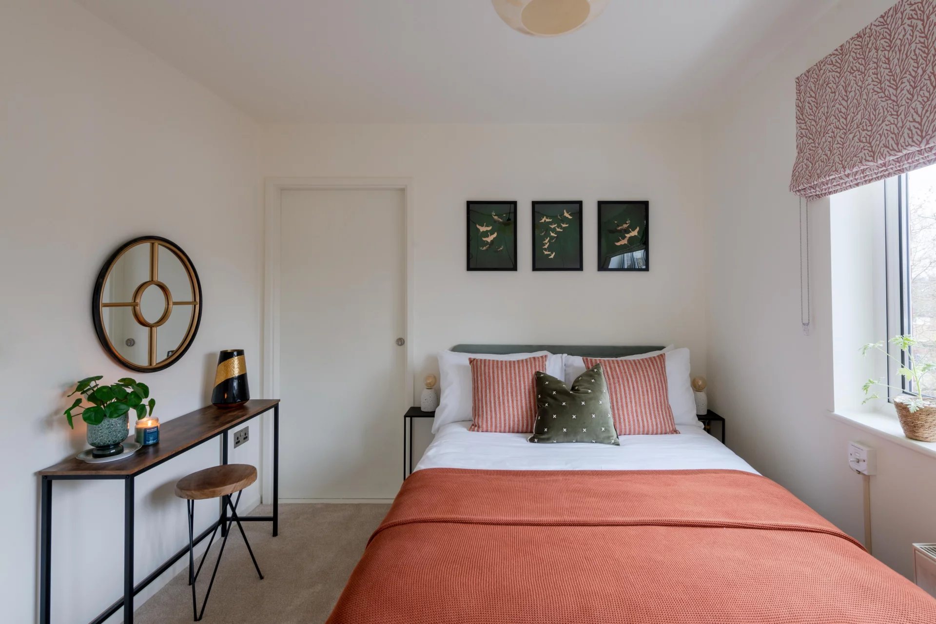 The principal bedroom benefits from a king-size bed and a modern en-suite bathroom, while the second double bedroom includes a stylish vanity area. Additional highlights include high-speed internet, a 55-inch television, and ample sofa and dining space, making this an ideal home for professionals or sharers seeking comfort, convenience, and impressive views