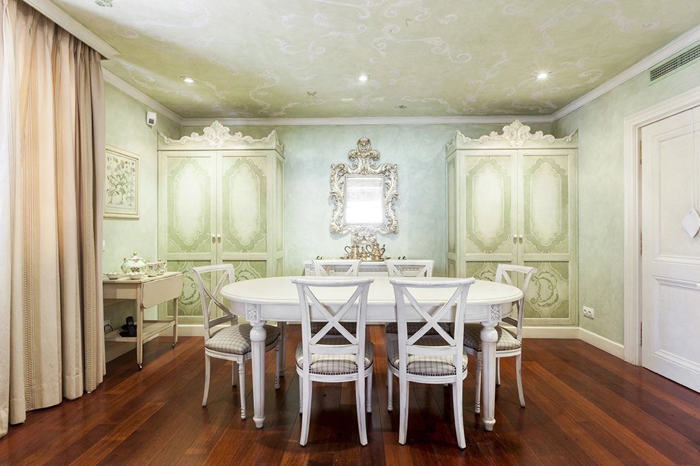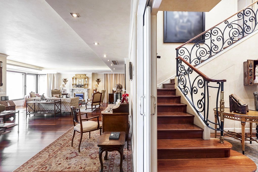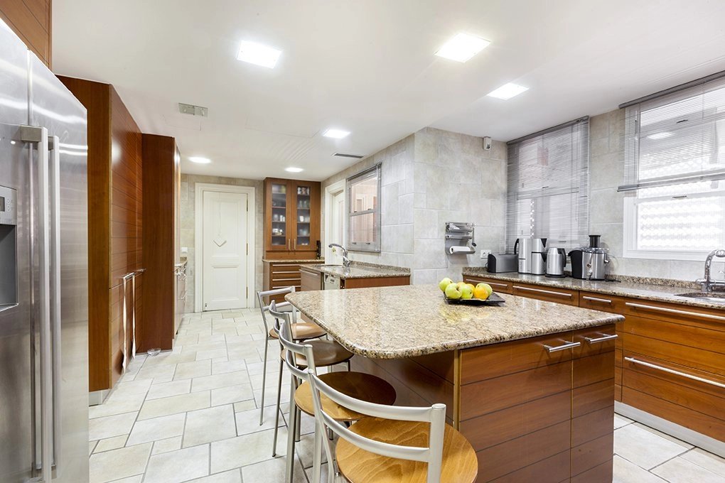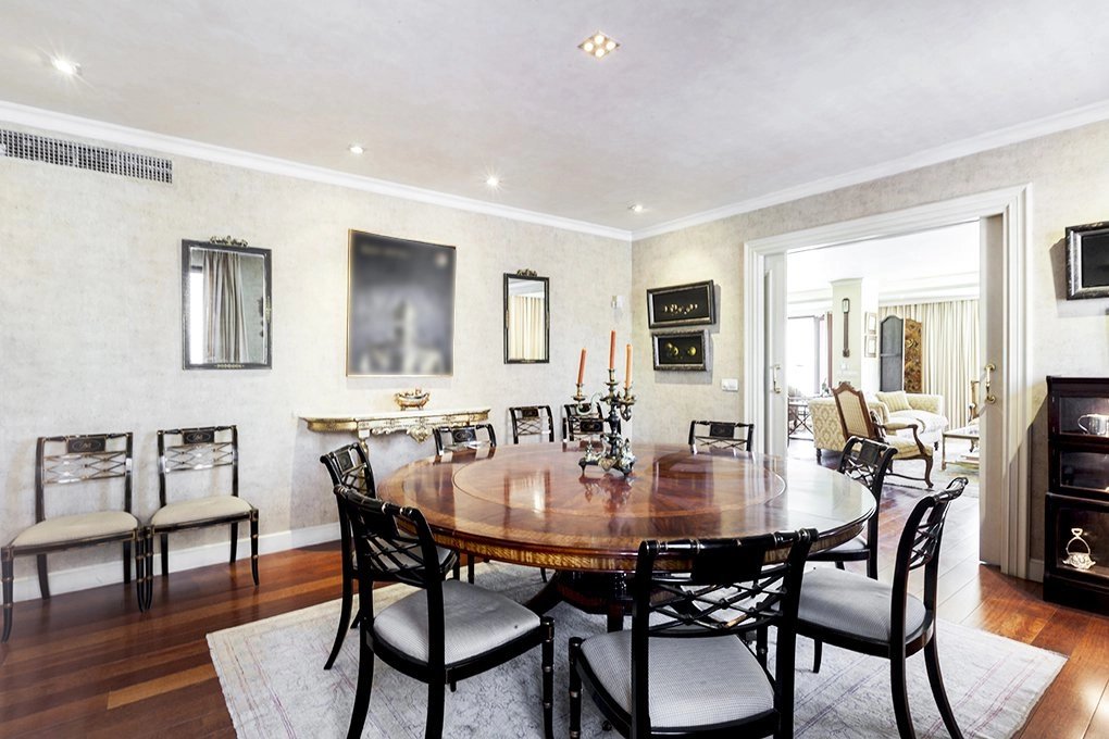 Learn moreThis magnificent duplex with 466m² usable meters for rent already impresses from its entrance, with a great hall for both its size and its height of almost 6 meters crowned by a skylight that gives a great luminosity. From the hall, where the elegant staircase with forged handrails leads to the floor of the bedrooms, we have access to the large living room with more than 80m² completely diaphanous and with large windows that provide a high luminosity and sense of space , the lounge connects with a large formal dining room, and this one with another dining room more informal or daily dining room with direct access to the magnificent kitchen of almost 30m2, the service area is completed with a laundry room-iron, a bedroom service with bathroom and a drying rack. From the kitchen we have access to the hall where you will also find the courtesy toilet. Once again from the large hall we go up to the second floor, which also has independent entrance from the elevator area, a distributor corridor runs through the stairwell and distributes the doors of the various bedrooms, all of them large with bathrooms in suite and dressing rooms. It is important to note the huge area of the master bedroom composed of the bedroom, dressing room, large bathroom en suite and another bedroom or additional office with bathroom en suite. Following the dealer open to the stairs we find another bedroom with bathroom en suite, and the other two bedrooms that share a living room or study where each of them has dressing room and bathroom en suite, complete the floor.