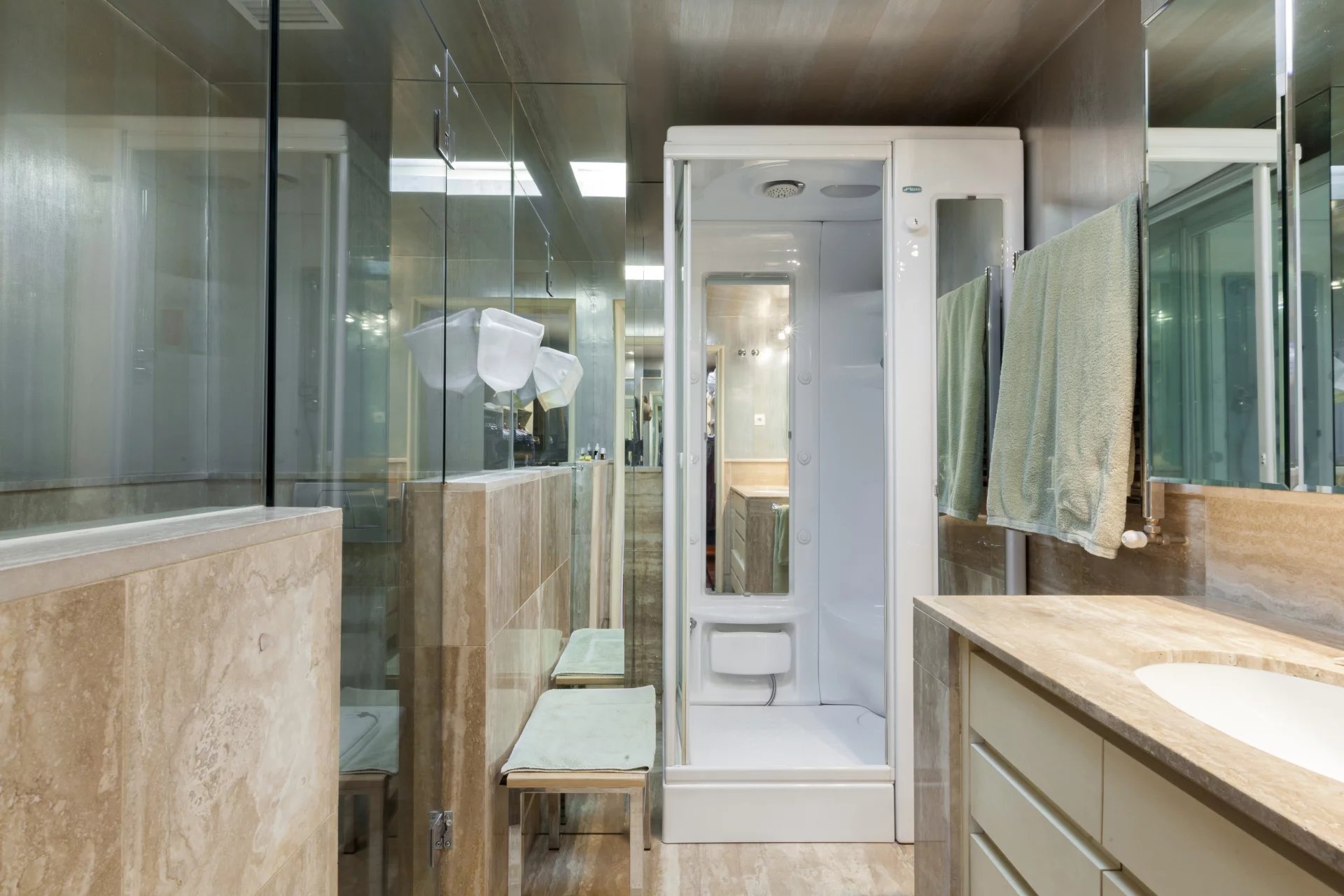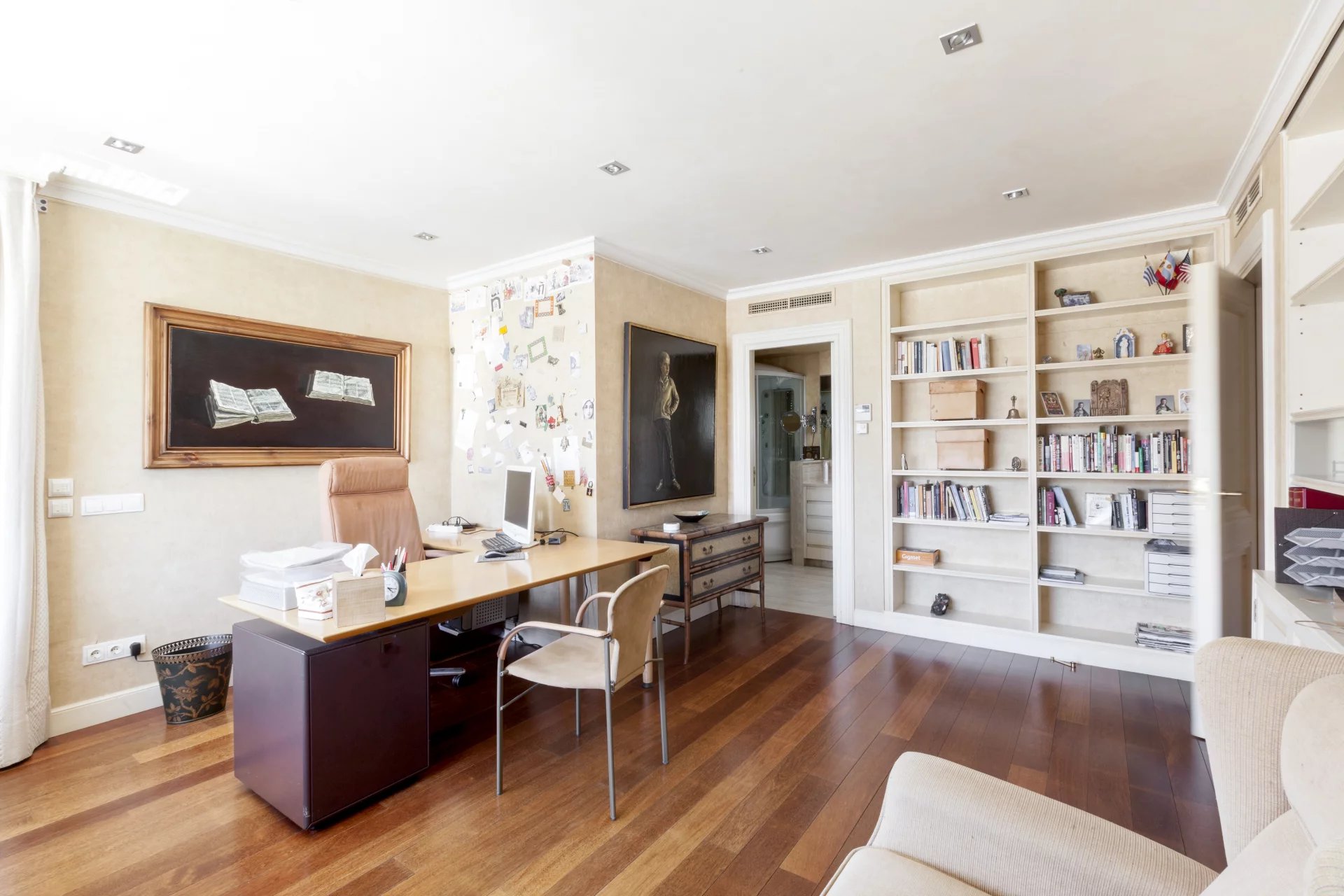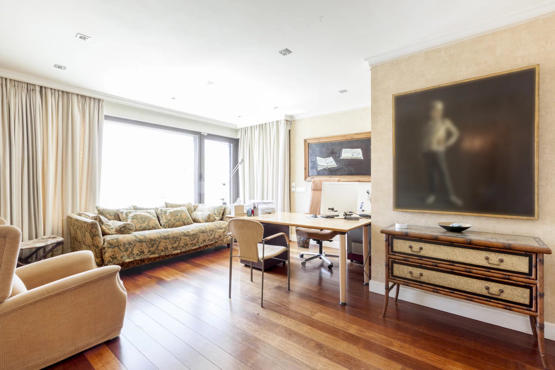 Learn moreThis magnificent duplex with 466m² usable meters for rent already impresses from its entrance, with a great hall for both its size and its height of almost 6 meters crowned by a skylight that gives a great luminosity. From the hall, where the elegant staircase with forged handrails leads to the floor of the bedrooms, we have access to the large living room with more than 80m² completely diaphanous and with large windows that provide a high luminosity and sense of space , the lounge connects with a large formal dining room, and this one with another dining room more informal or daily dining room with direct access to the magnificent kitchen of almost 30m2, the service area is completed with a laundry room-iron, a bedroom service with bathroom and a drying rack. From the kitchen we have access to the hall where you will also find the courtesy toilet. Once again from the large hall we go up to the second floor, which also has independent entrance from the elevator area, a distributor corridor runs through the stairwell and distributes the doors of the various bedrooms, all of them large with bathrooms in suite and dressing rooms. It is important to note the huge area of the master bedroom composed of the bedroom, dressing room, large bathroom en suite and another bedroom or additional office with bathroom en suite. Following the dealer open to the stairs we find another bedroom with bathroom en suite, and the other two bedrooms that share a living room or study where each of them has dressing room and bathroom en suite, complete the floor.