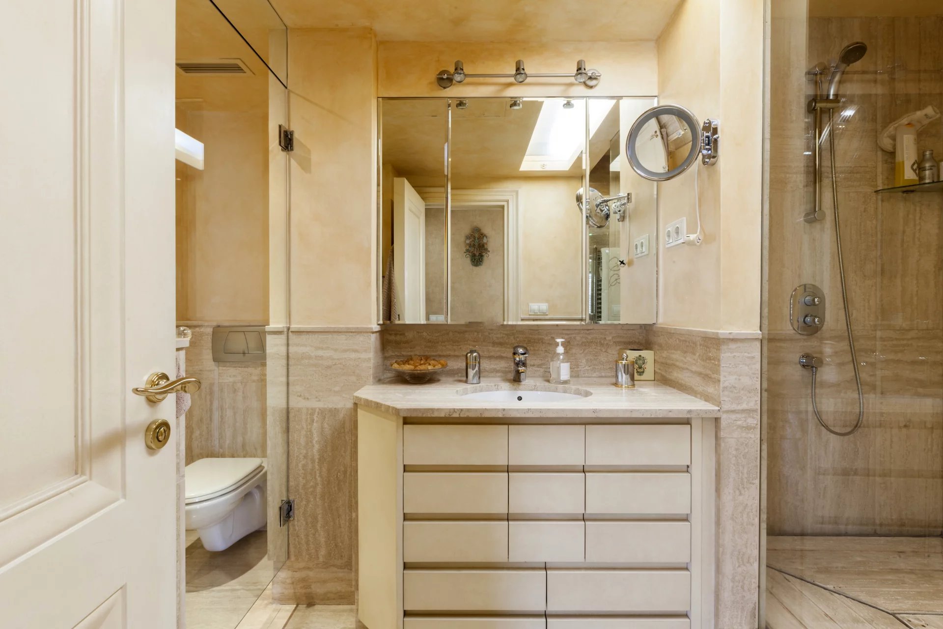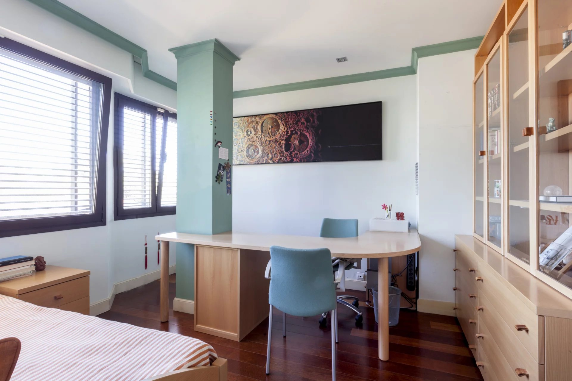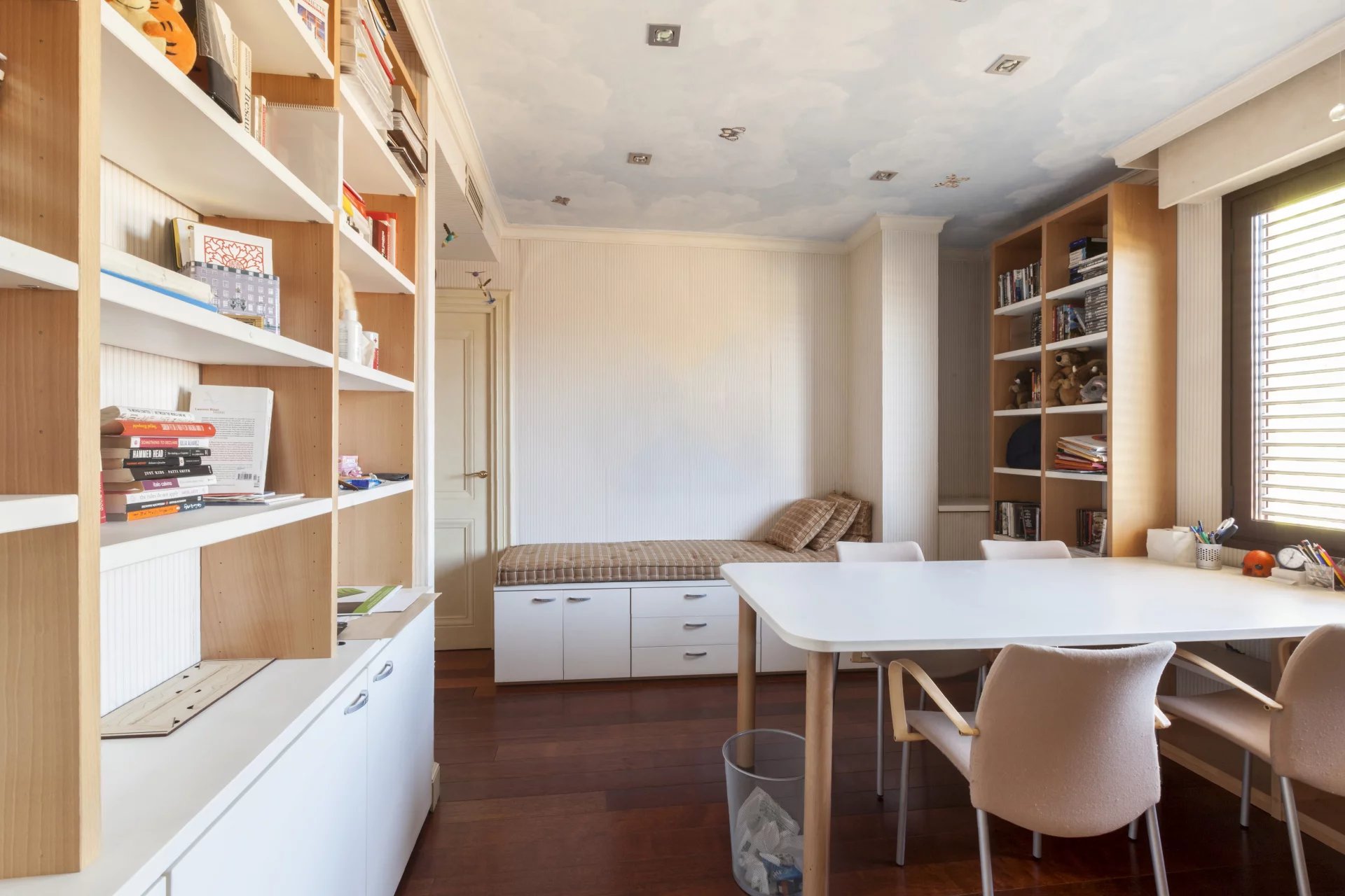 Beyond the description of this property are the magnificent qualities that complete it as they can be the exterior carpentry in PVC with rupture of thermal bridge of the big windows all around the house and with all the motorized blinds, smooth painting stucco, as well as the carpentry interior of great thickness and also stucco. The heating is underfloor heating with natural gas, floors in Merbau wood, volumetric and perimeter alarm, armored doors, sound system ..., all kinds of details to make this exclusive home unique in the area. Located in a quiet area of Chamartin-Nueva España but very near walking to the shops, it has a small communal garden, concierge living in the building, and in the price include two parking spaces and storage.