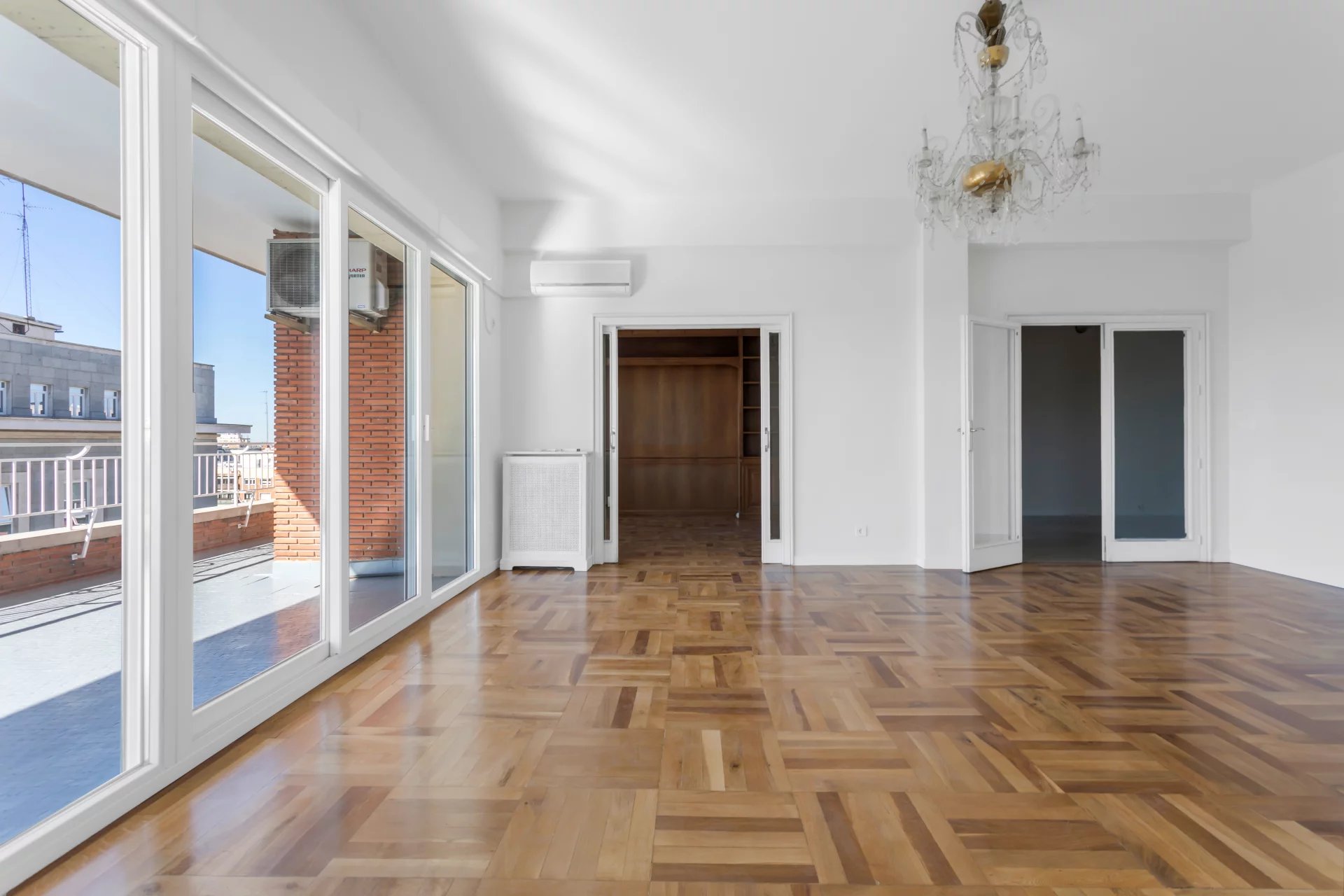 This residence stands out for its generous high ceilings, three distinguished living rooms, five bedrooms and a spectacular south-facing terrace offering unobstructed views over the city.