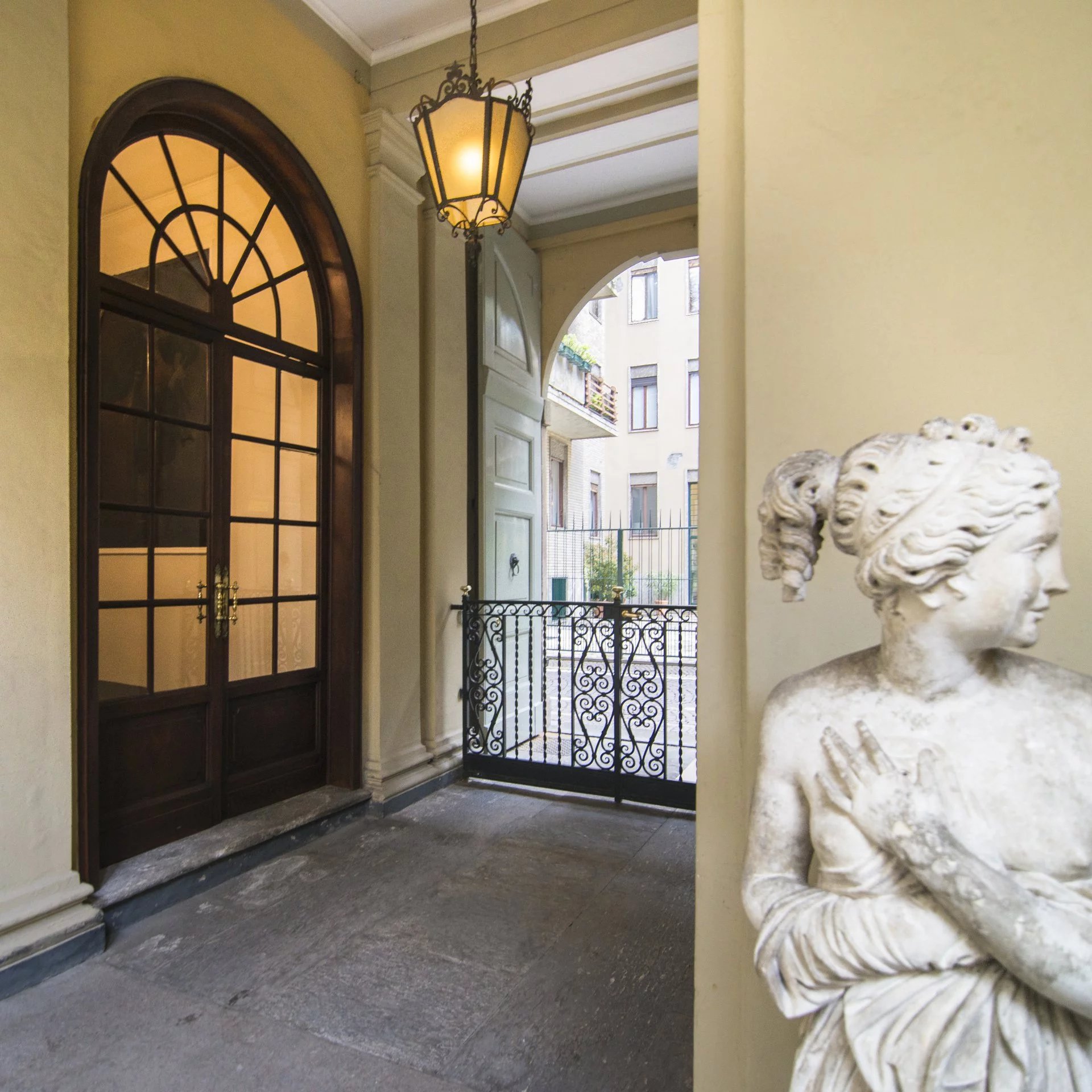 In historical setting, refined and period building, charming and elegant property of approx 115 sqm comprising living room, dining room, kitchen, bedroom with wardrobes, office, bathrooms, terrace. Precious finishings.