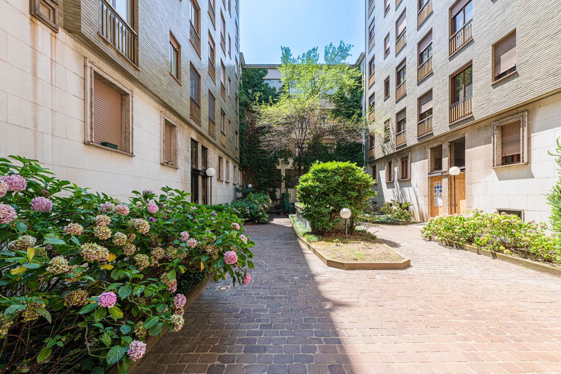 Period building in an elegant setting with all day concierge service, elegant apartment, very bright and quiet, renovated and newly furnished, comprising entrance hall, living room with open kitchen, double bedroom, single bedroom and two bathrooms. Equipped with every comfort. Monthly fee €. 2,500.00. Energy Class D