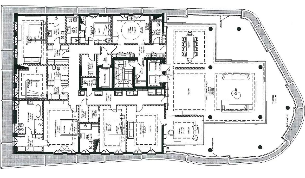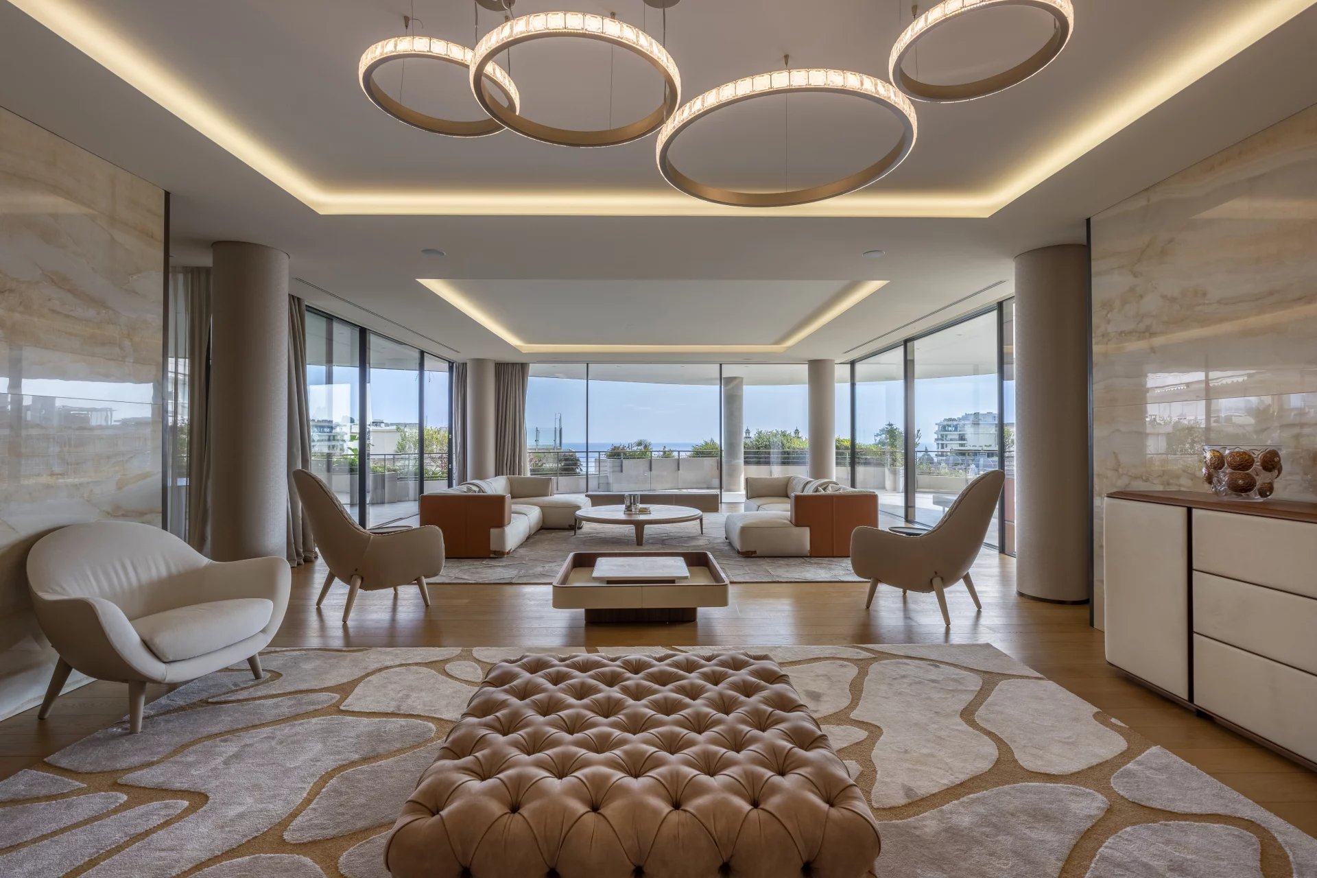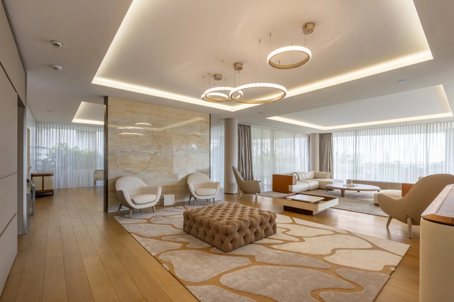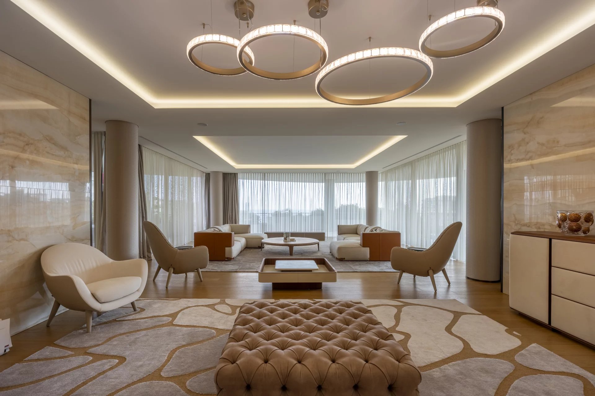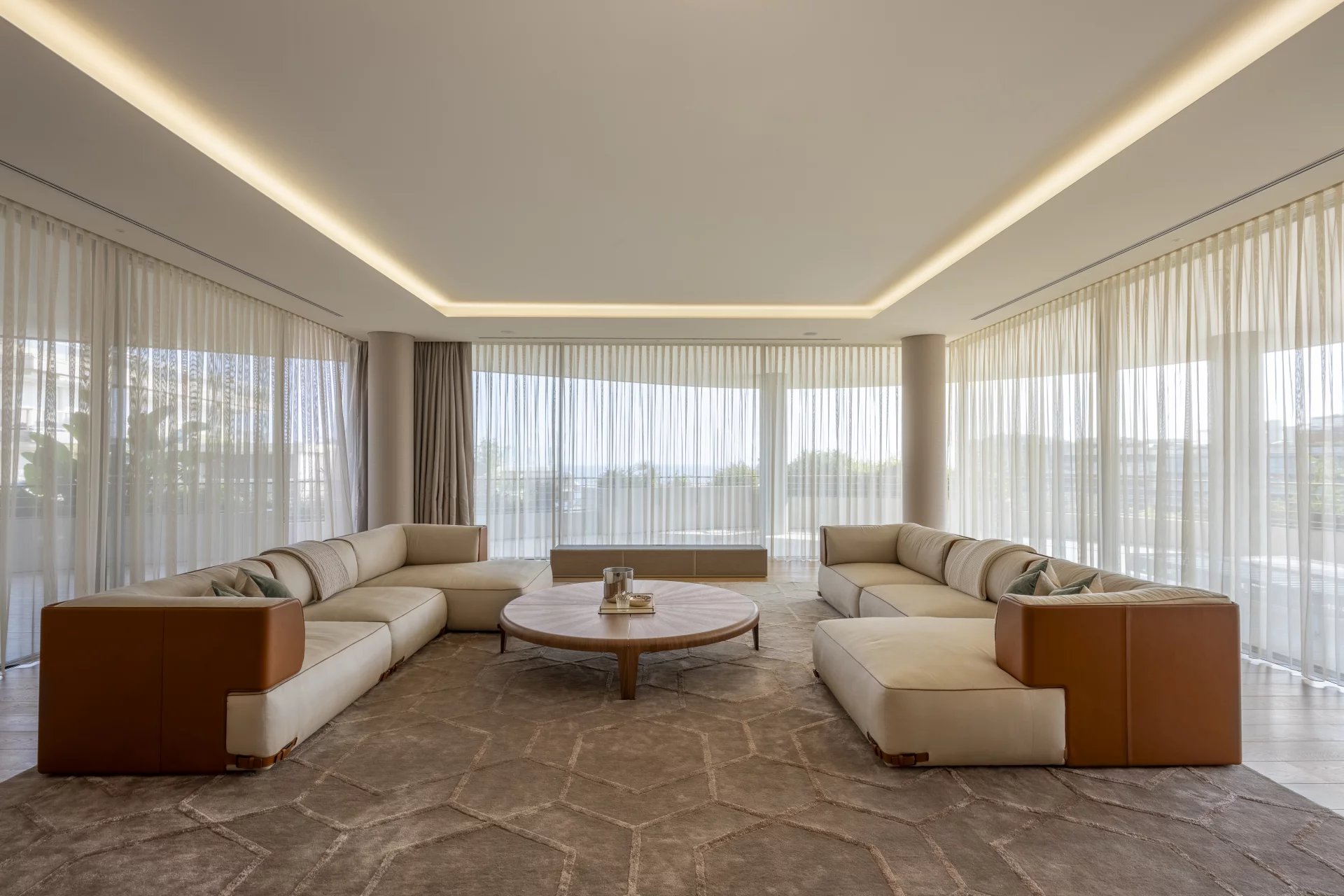 Comprising seven main rooms, the apartment stands out for its spacious terrace, which provides a spectacular perspective over the gardens and surrounding landscape. The result is a harmonious living space where prestige, comfort, and privacy blend seamlessly.