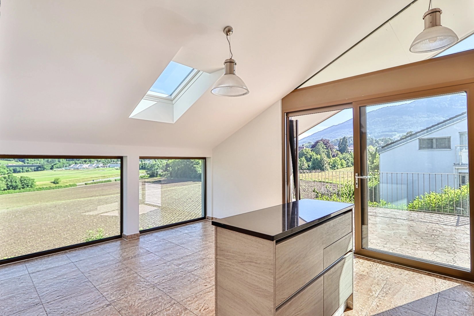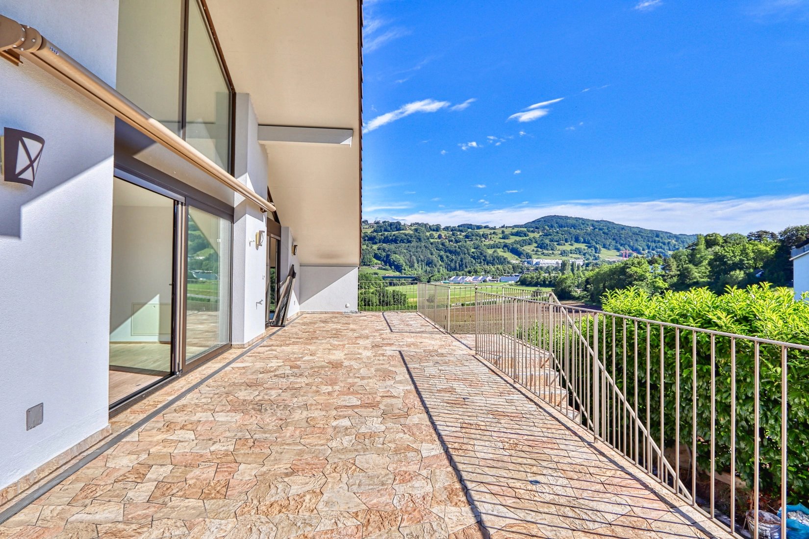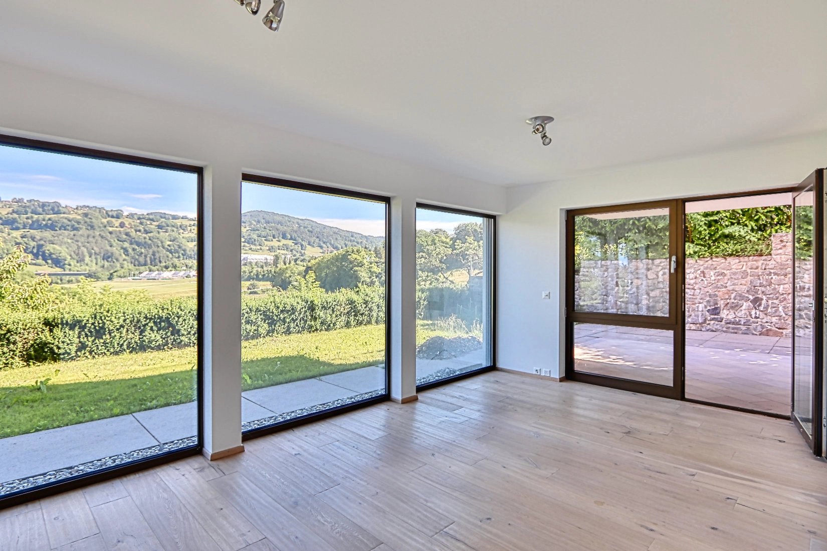 -Spacious, bright living room with large windows and terrace access.