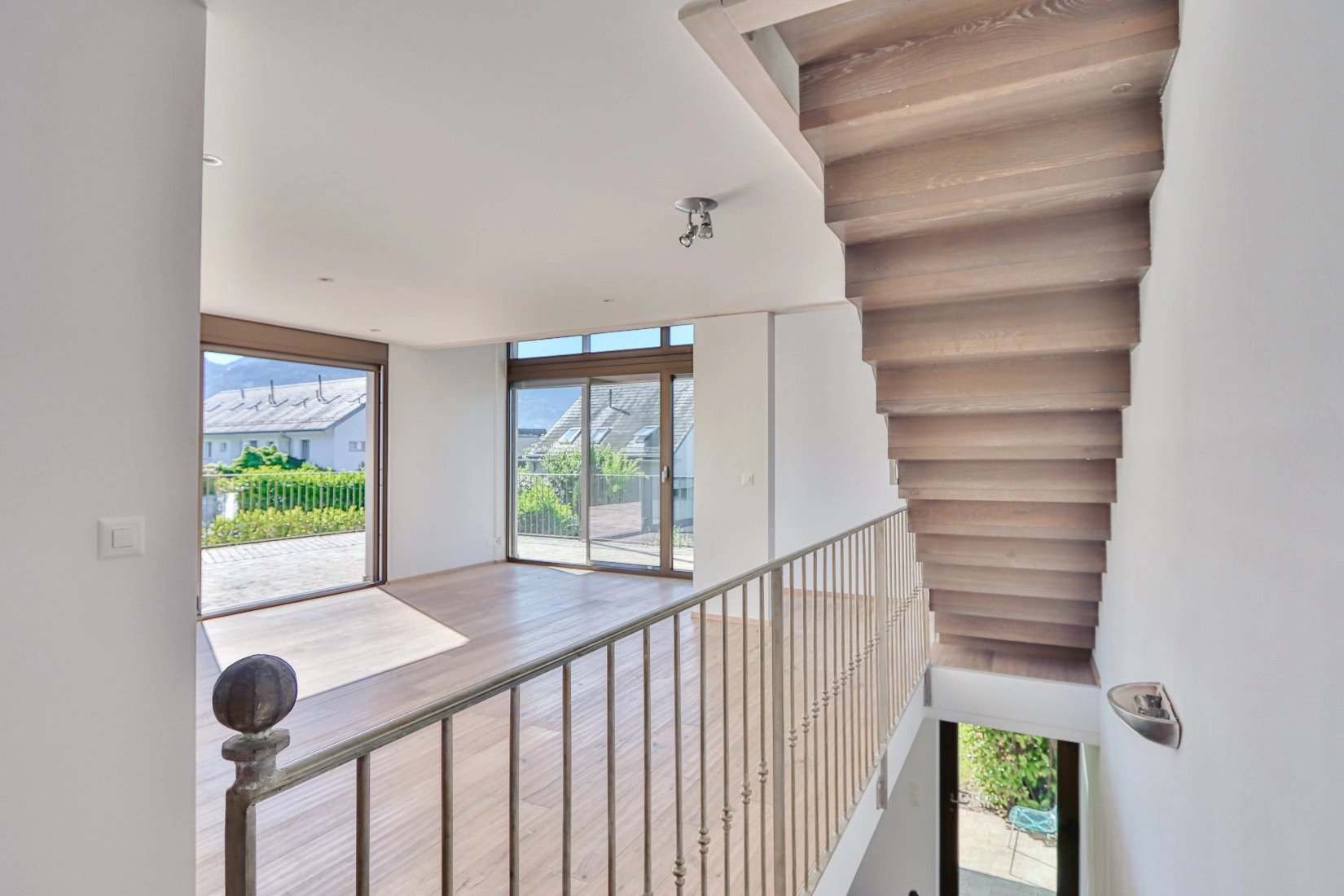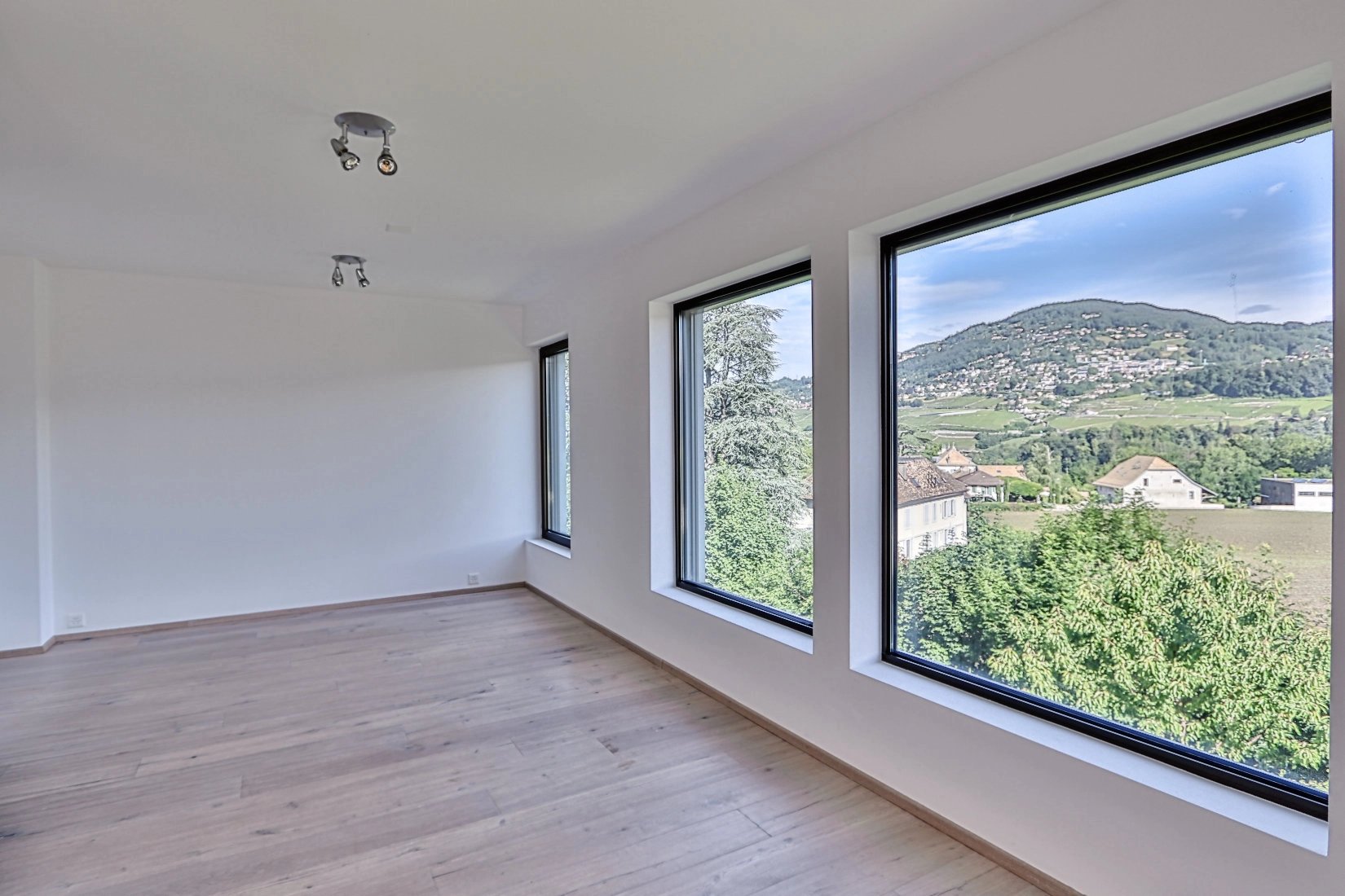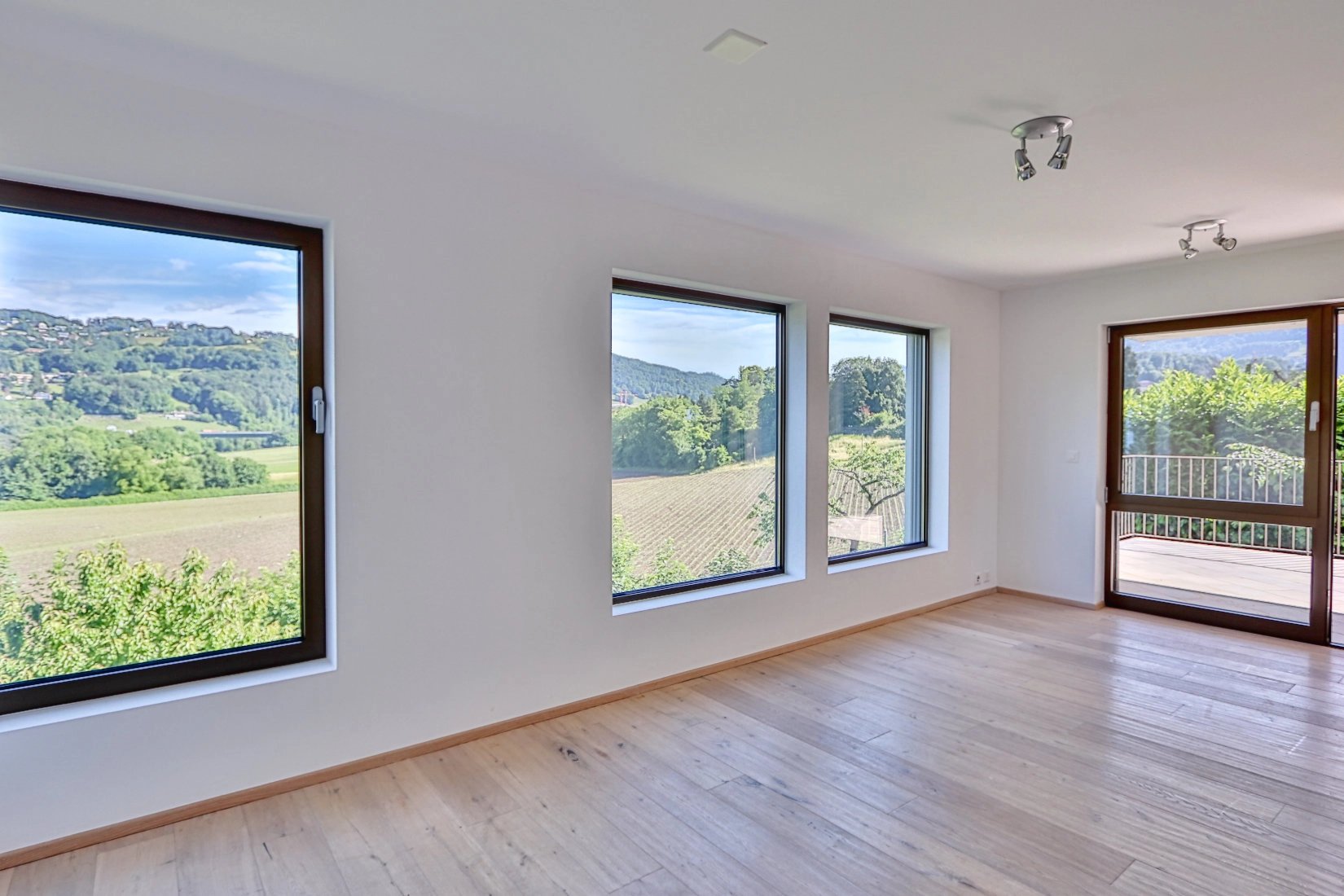 -Spacious, bright living room with large windows and terrace access.