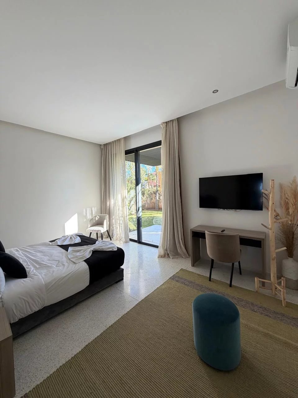 This exclusive villa is the perfect place for a long-term rental, whether to recharge or explore the wonders of the red city. Just minutes away from the lively center of Marrakech, it will meet all your expectations, whether for golfing or enjoying a luxurious living environment.