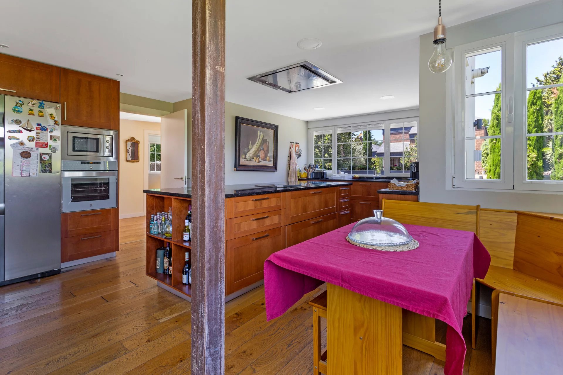 On the first floor or semi-basement, a huge space with natural light for living room or guest bedroom; another living room with Nordic type stove, and a bedroom with large windows that can be used for service area, guest accommodation, or office. Garage for one vehicle.