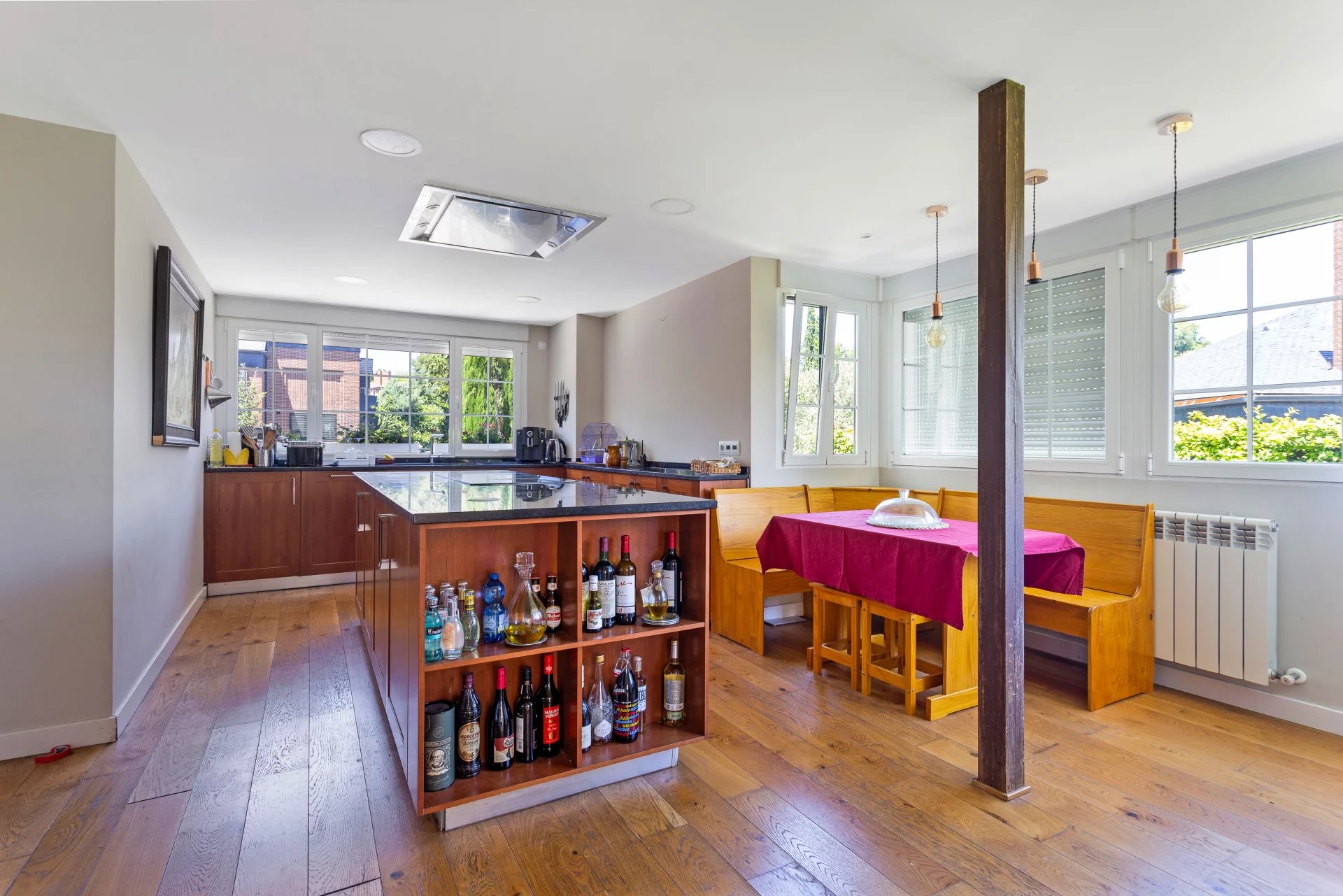 Learn moreOn the main floor there is a large entrance hall with opening to the living room and dining room that has access to the beautiful and spacious garden through the porch. In addition, office, kitchen with office area and toilet. Living room with fireplace and dining room connected to the modern and renovated kitchen.