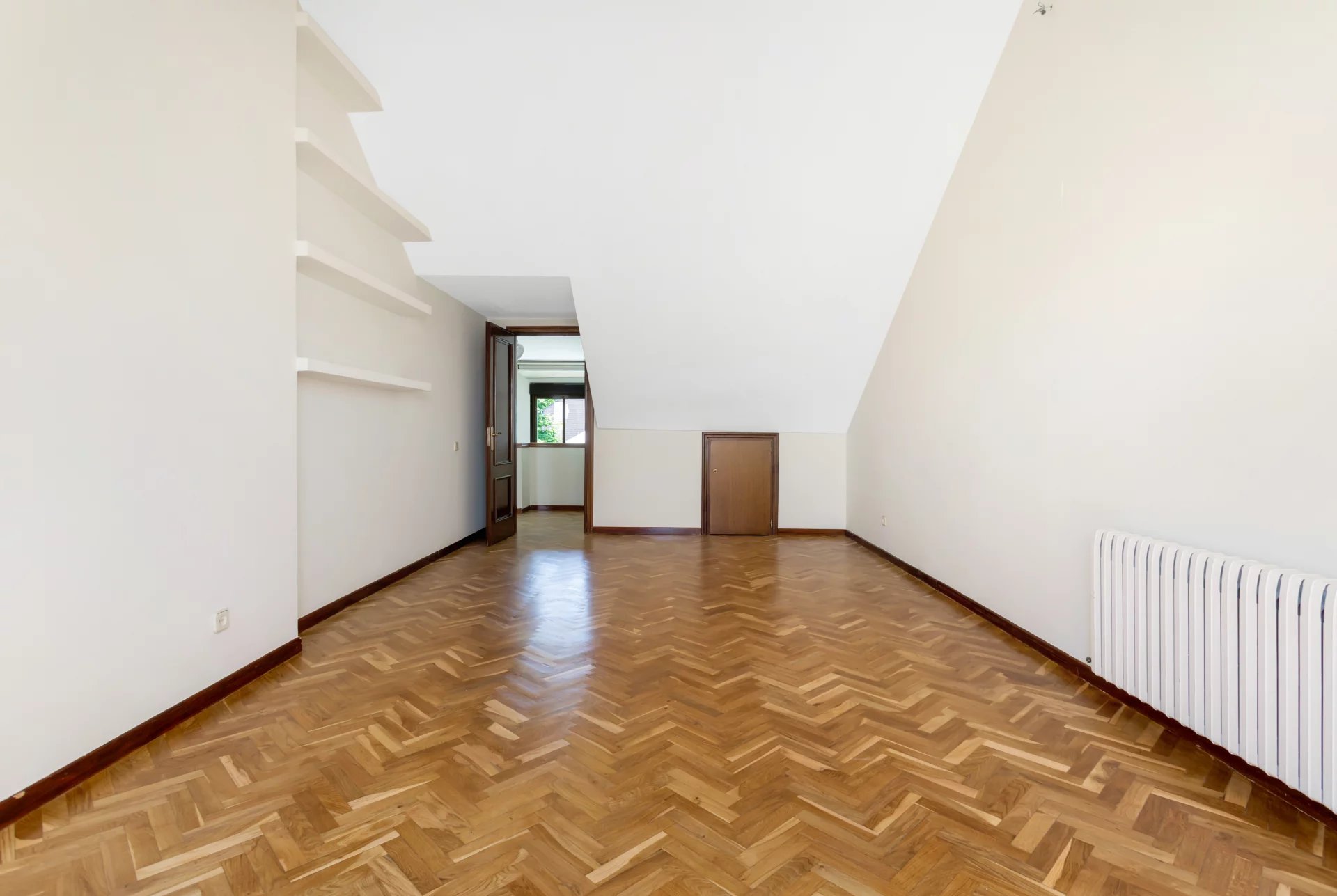 On the second floor, a large master bedroom with dressing room and bathroom en suite, three bedrooms and two bathrooms. The master bedroom has a terrace with nice views to the garden. On the second floor, two huge spaces that can function as bedrooms or living rooms. Finally, on the semi-basement floor, a living room or bedroom, a laundry room, utility room and parking for two cars.