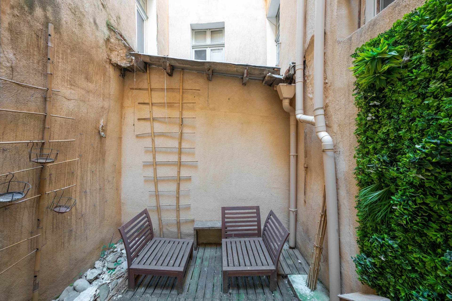 The interior consists of two large, bright rooms, one of which is a fully equipped kitchen, ideal for socializing, and the other, which can be used as a comfortable living and reception area. The bedroom, a true haven of peace, opens onto a peaceful patio, guaranteeing you peaceful nights in the heart of the city.