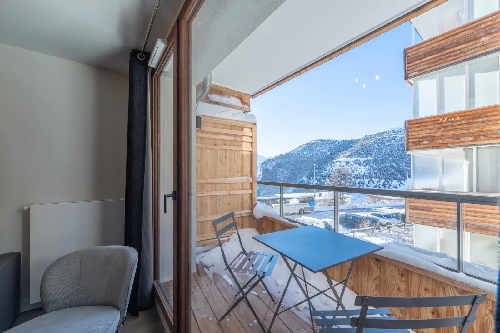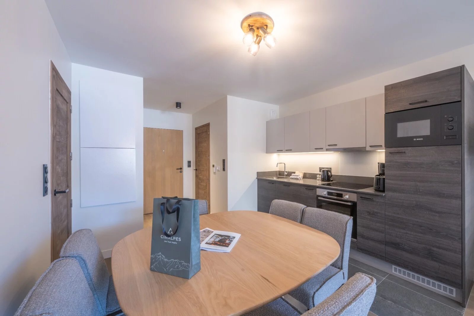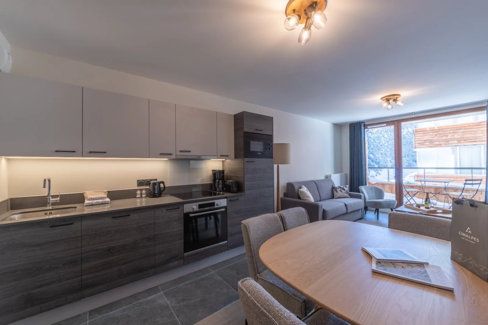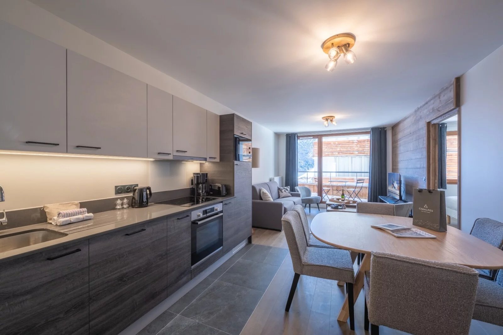 In a cosy-chic style, this apartement will win you over with its bright 23.25 sq.m living room, modern bathroom, open-plan kitchen and south-west-facing balcony for sunny moments. With 1 double bedroom and a mountain area, it can sleep up to 4 people, perfect for holidays with family or friends.