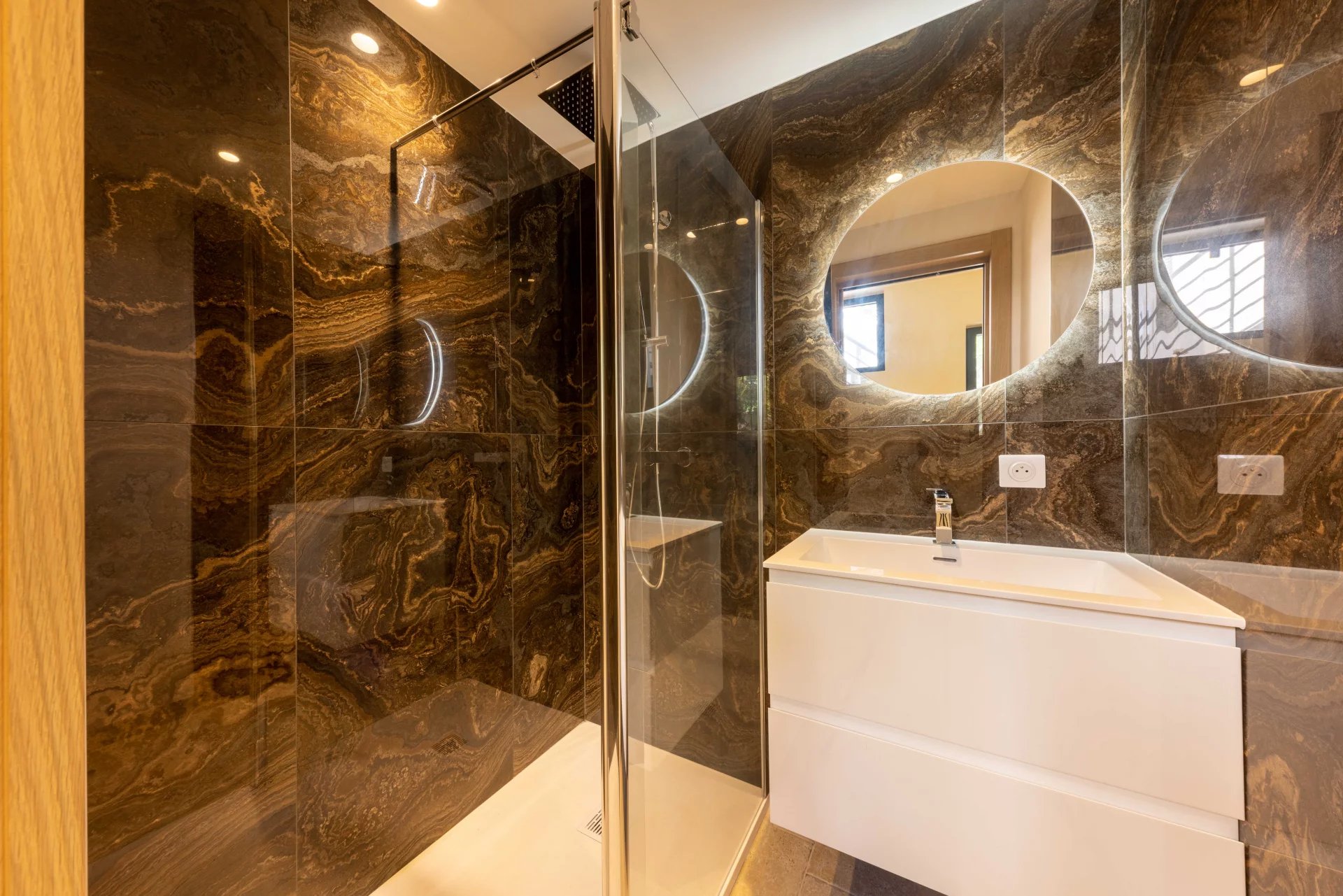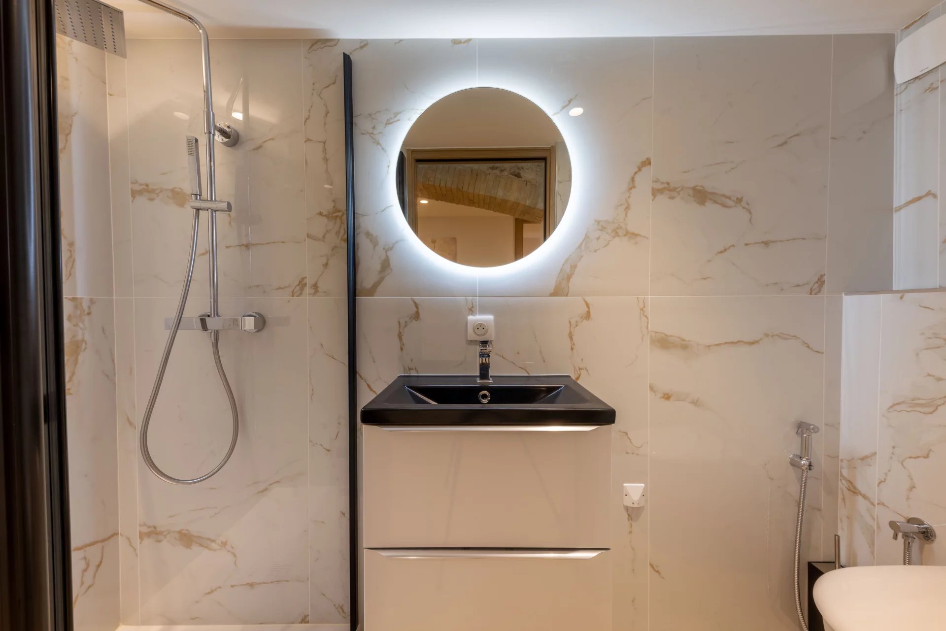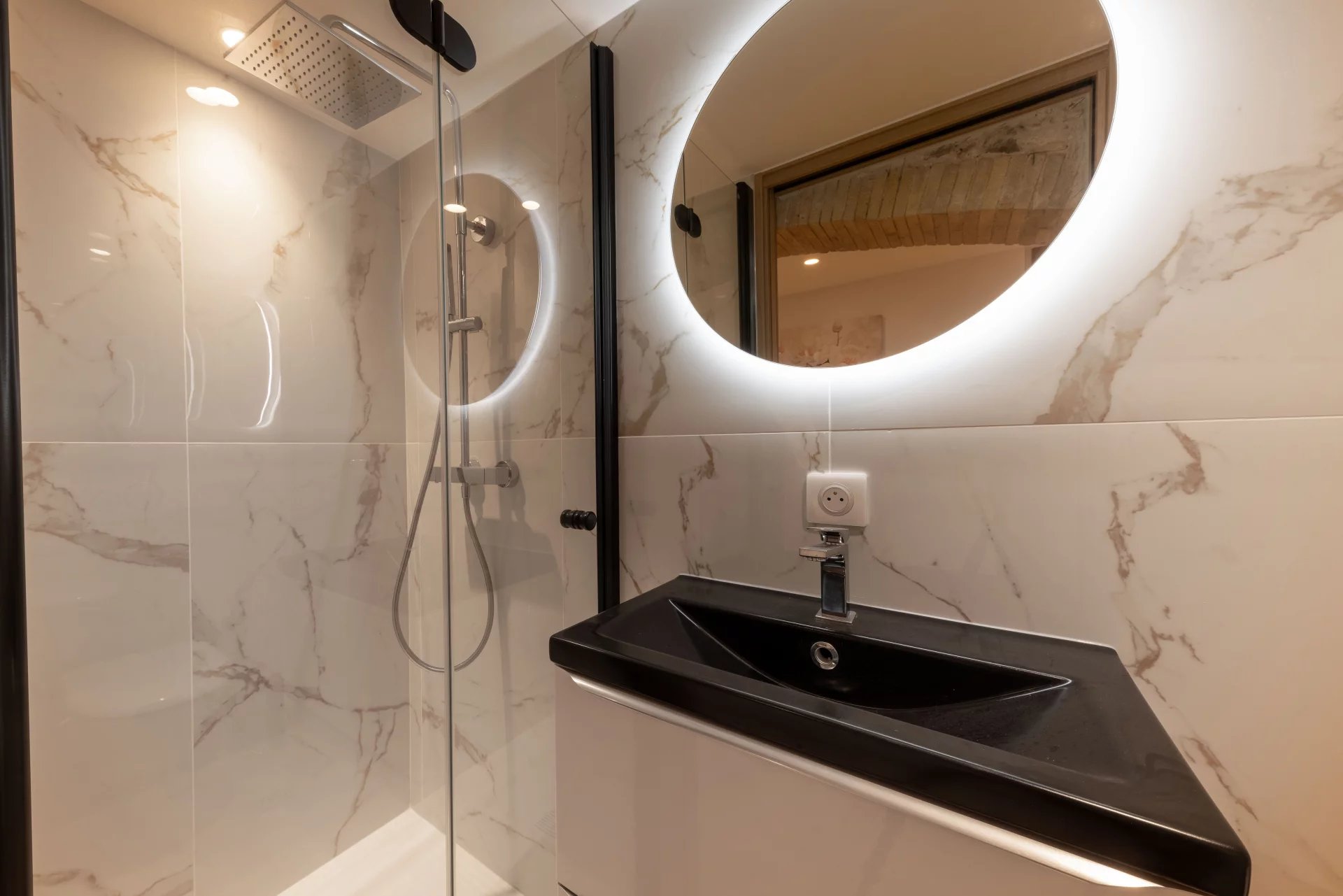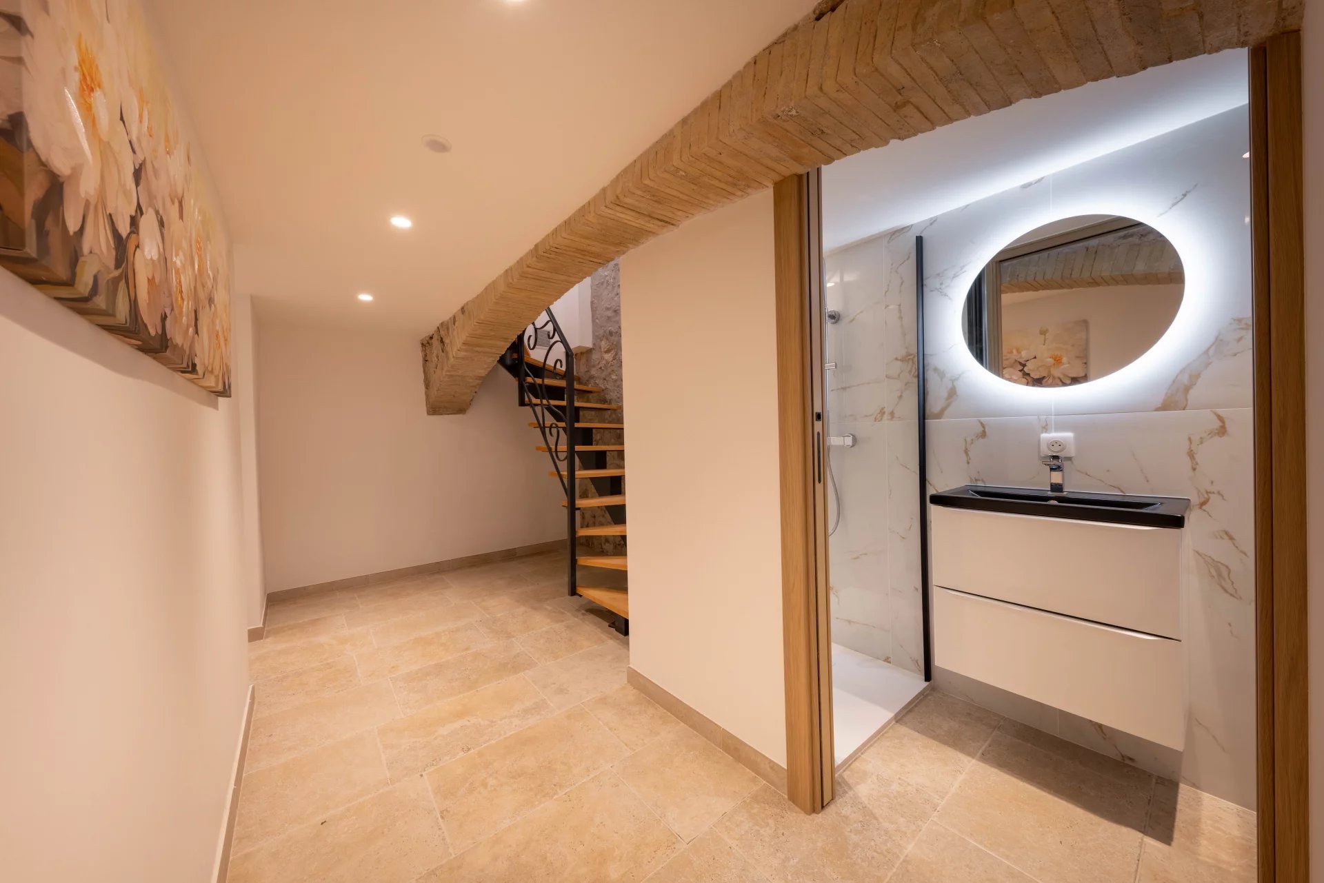 hallway, two bedrooms with en-suite shower rooms opening onto the inner garden