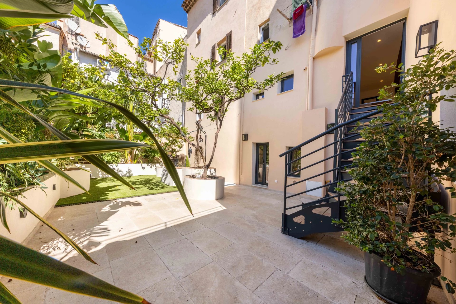 In a very quiet street, magnificent 107 sqm duplex apartment with 80 sqm private garden. Ideally located close to shops, the Provencal market and beaches.