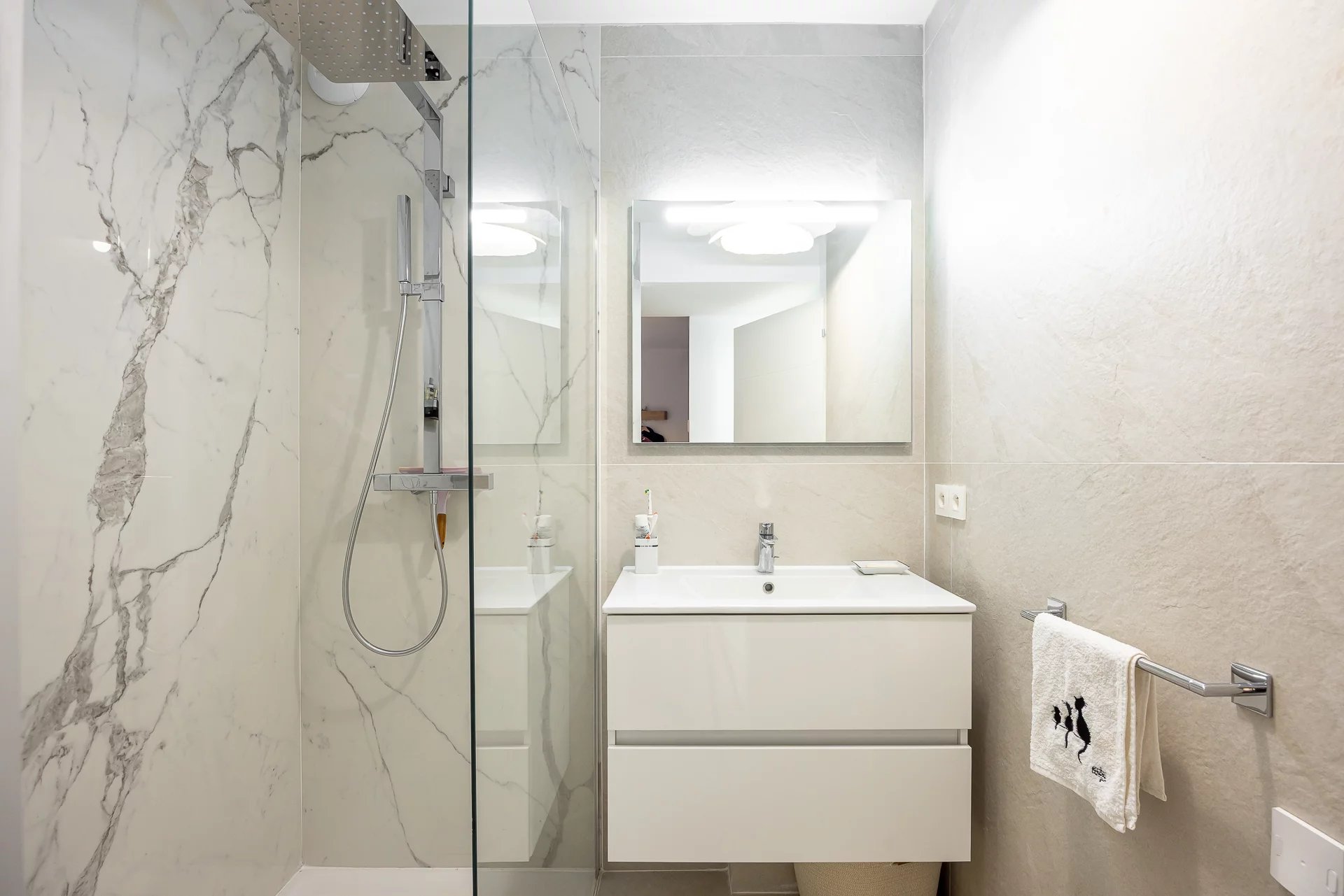 The night area consists of two bedrooms, including a superb master suite with its private shower room and walk-in closet. The second bedroom also benefits from generous space as well as a large adjoining bathroom. Numerous storage solutions complete the ensemble for optimal comfort.